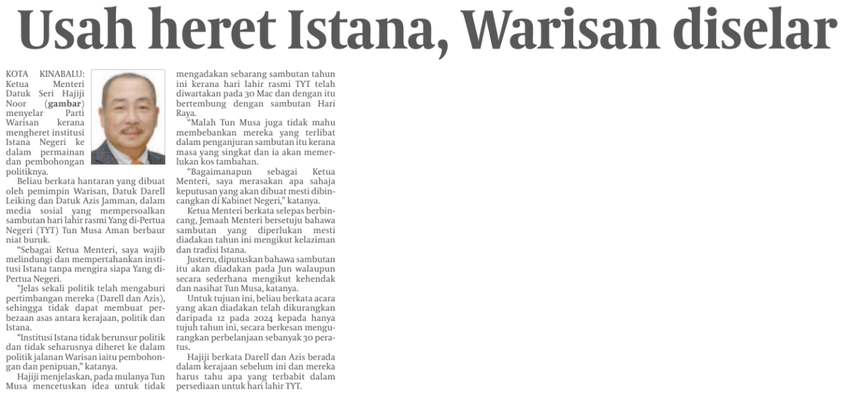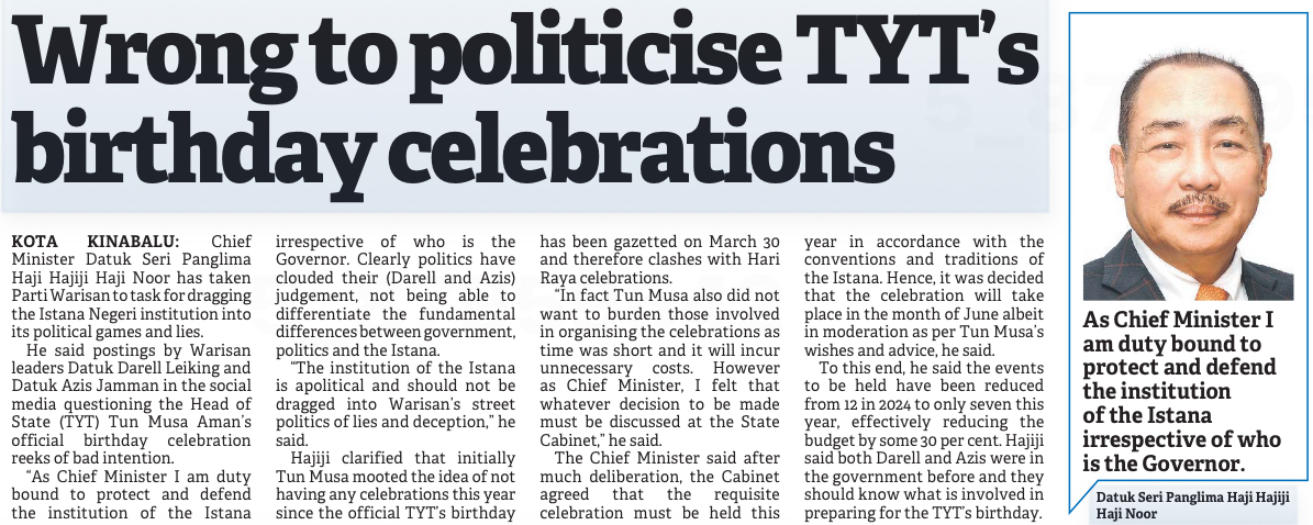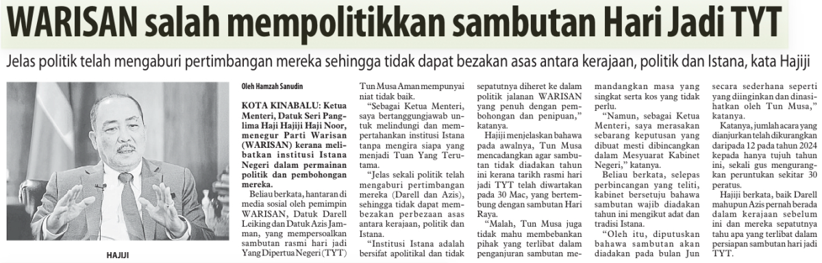 WARISAN salah mempolitikkan sambutan Hari Jadi TYT