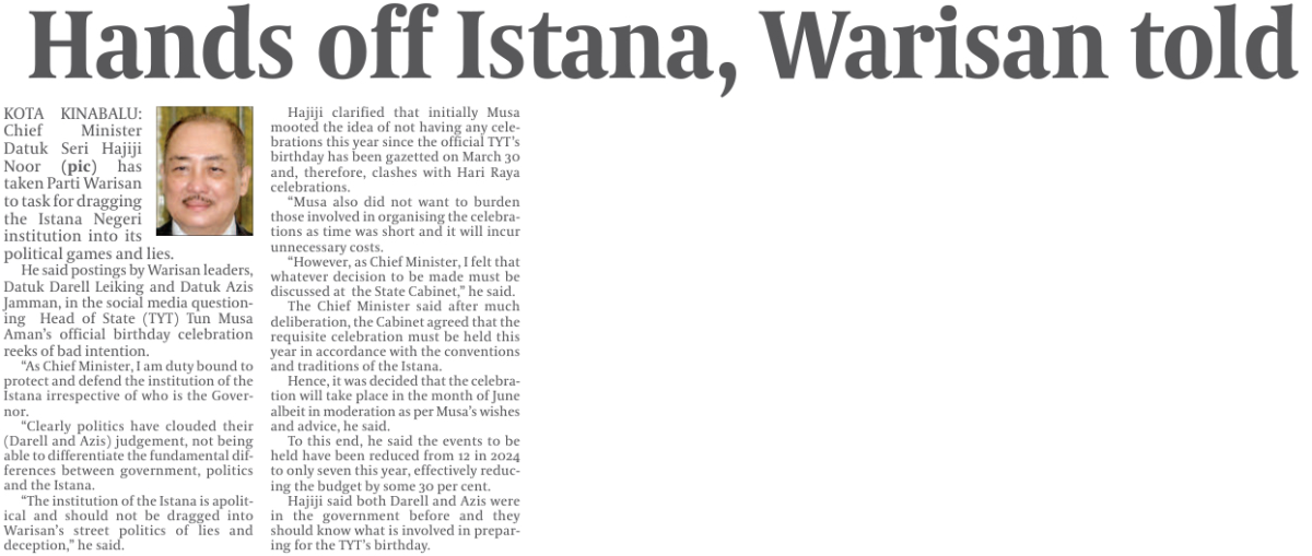 Hands off Istana, Warisan told