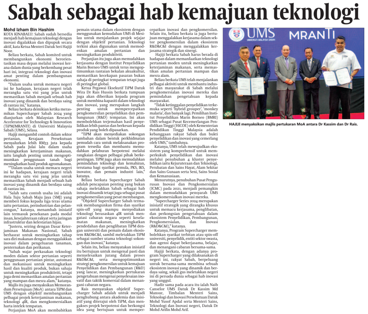 Sabah sebagai hab kemajuan teknologi