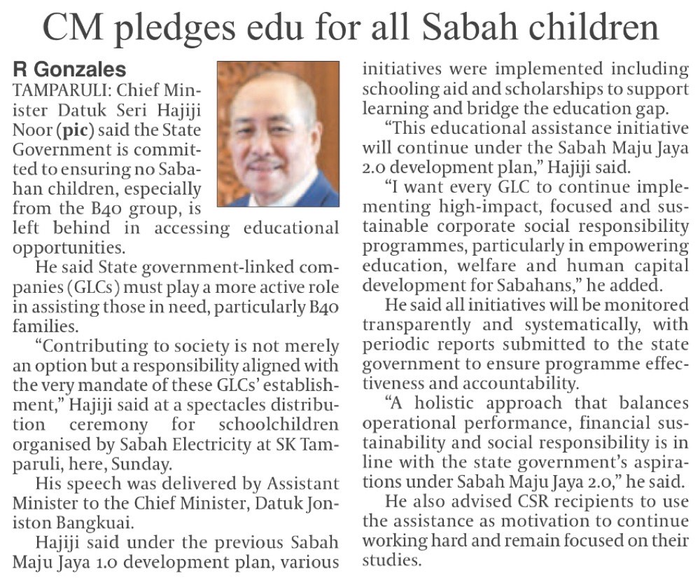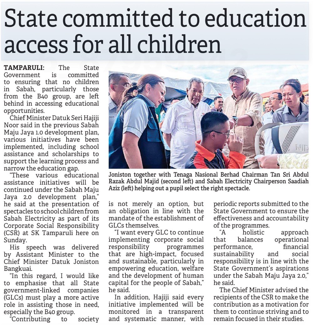 Akses pendidikan dijamin untuk semua anak Sabah (MS 1)