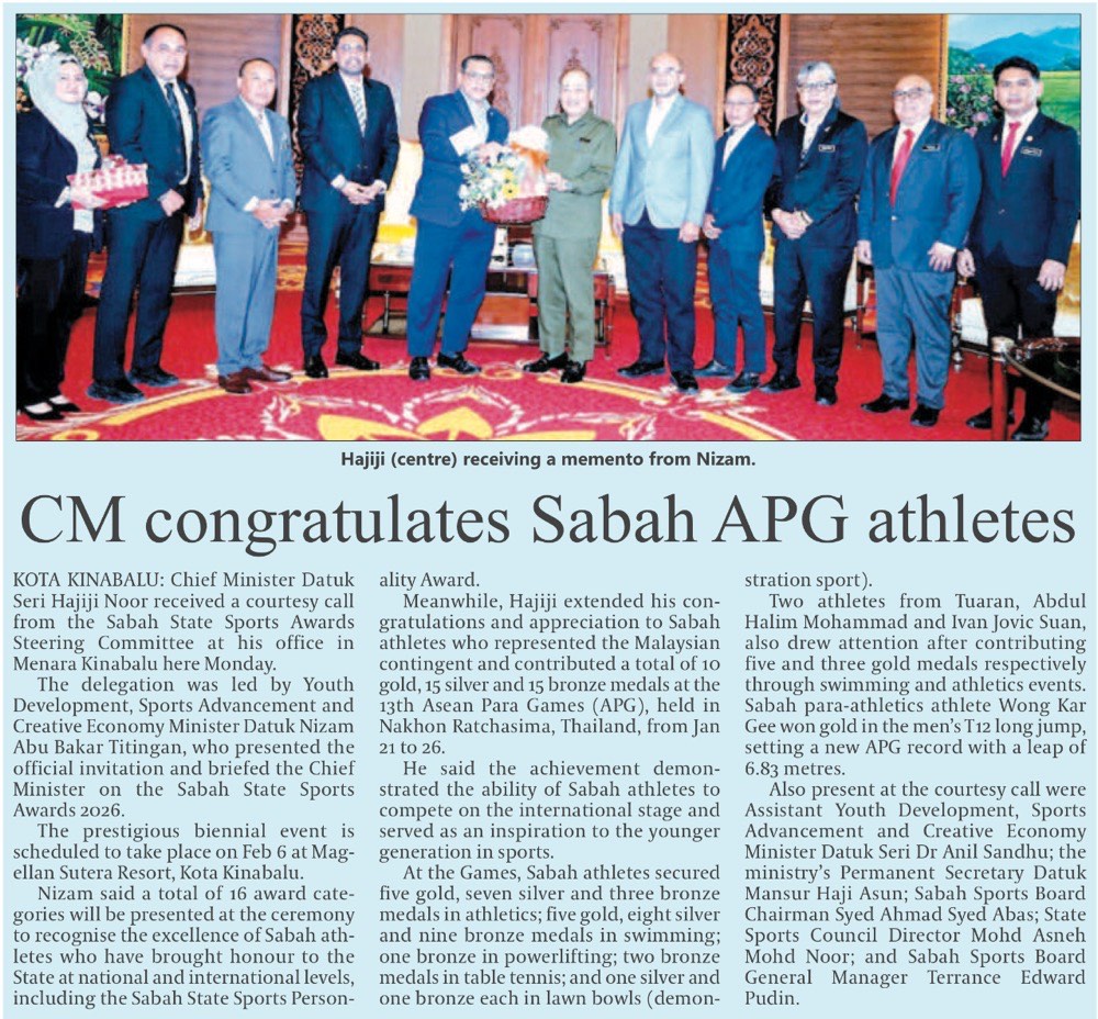 Sabah Sports Awards to be held on Feb 6 (Page 1)