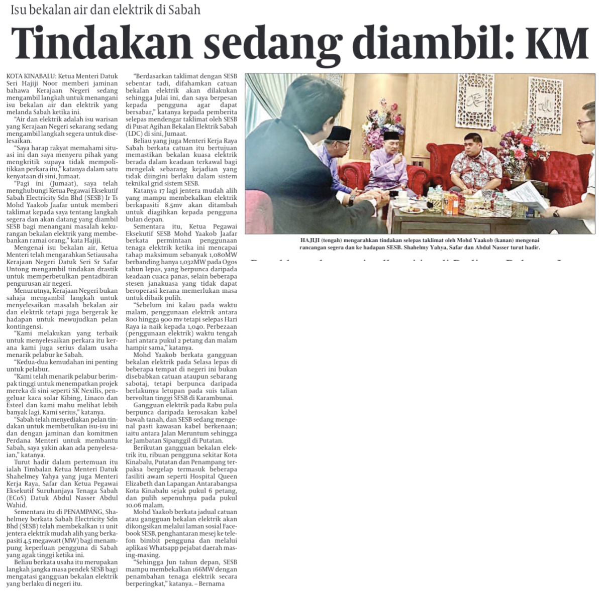 Sabah urus elektrik mulai januari