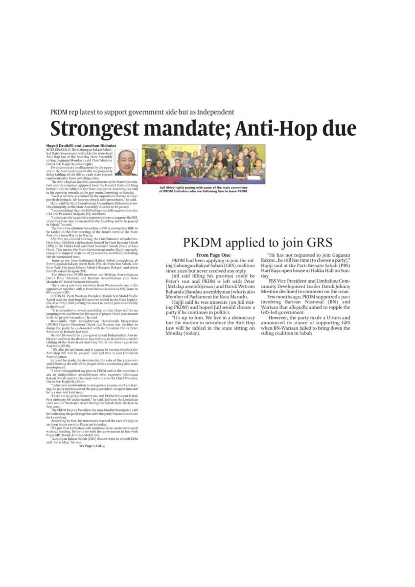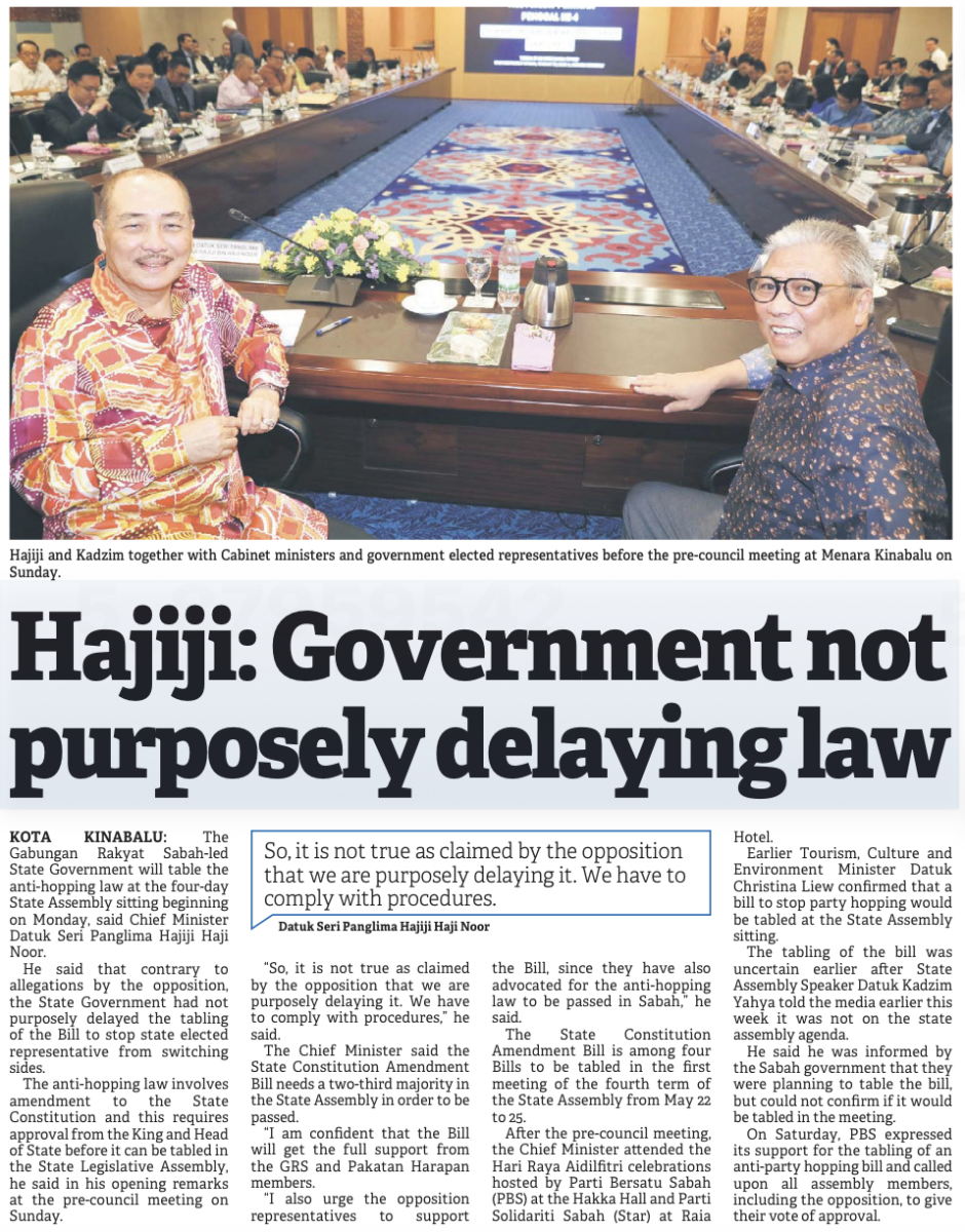 Sabah akan bentang RUU anti lompat parti: Hajiji