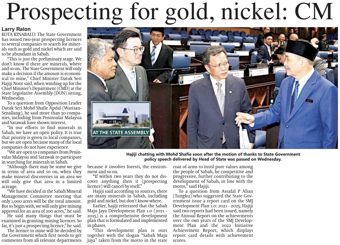 Prospecting for gold, nickel: CM