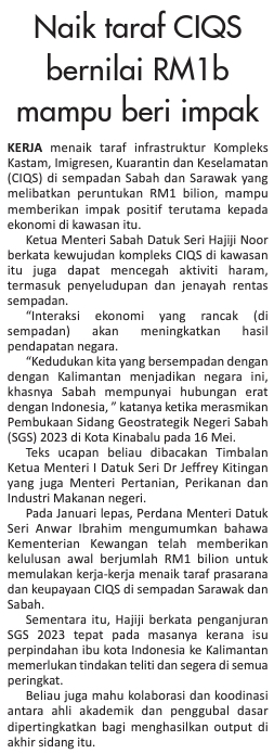 Naik taraf CIQS bernilai RM1b mampu beri impak