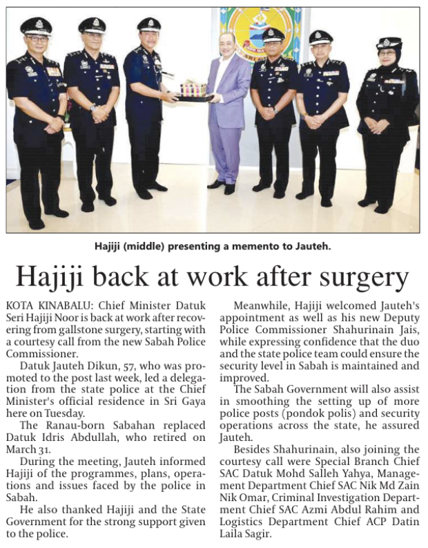 Hajiji mula bertugas, terima kunjungan hormat Pesuruhjaya Polis Sabah