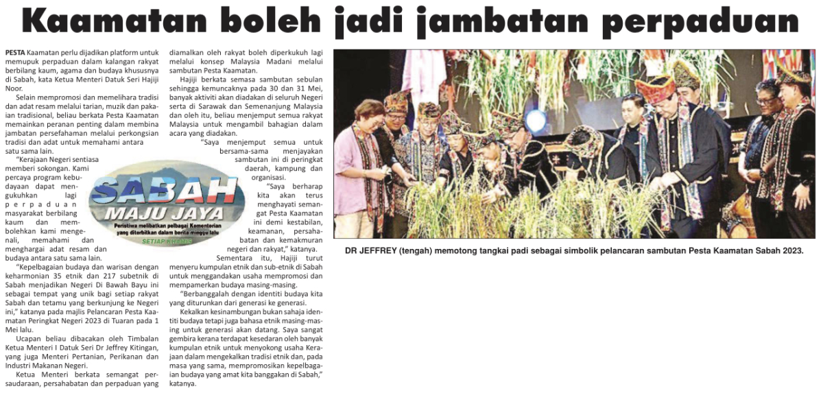 Use Kaamatan to foster unity - Hajiji