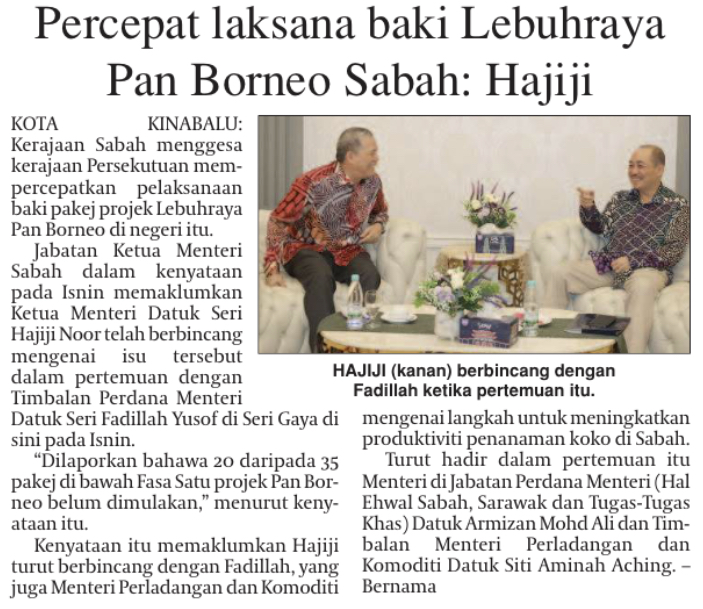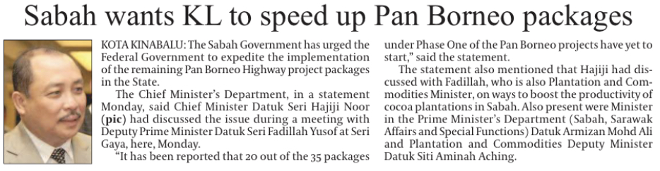 Sabah wants KL to speed up Pan Borneo packages