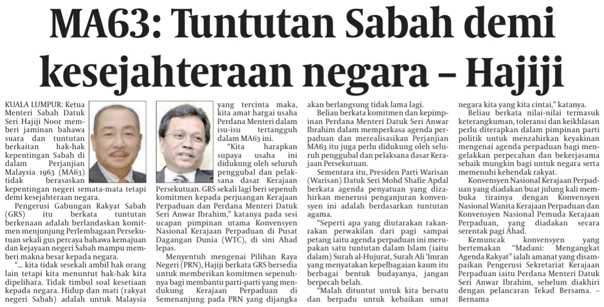 MA63: Tuntutan Sabah demi kesejahteraan negara - Hajiji