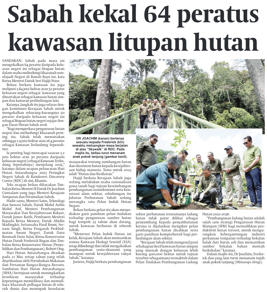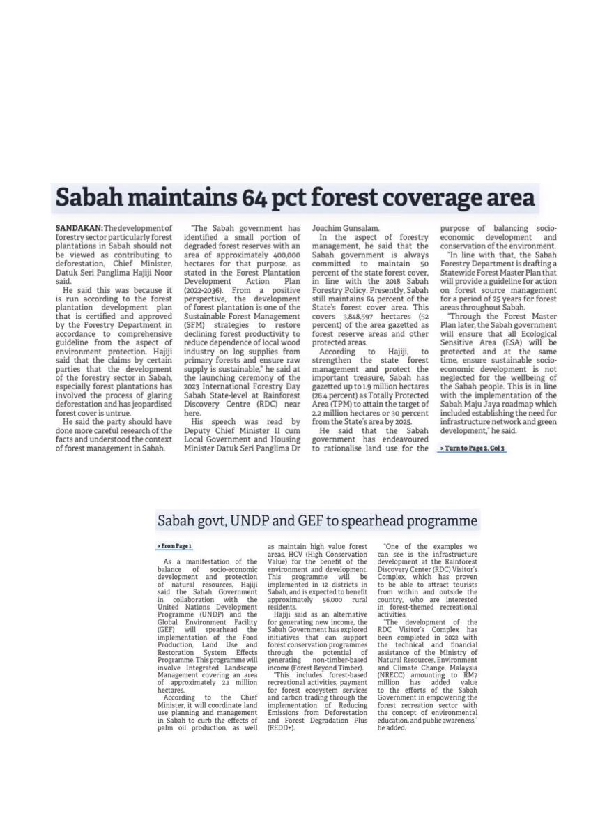 Sabah maintains 64 pct forest coverage area