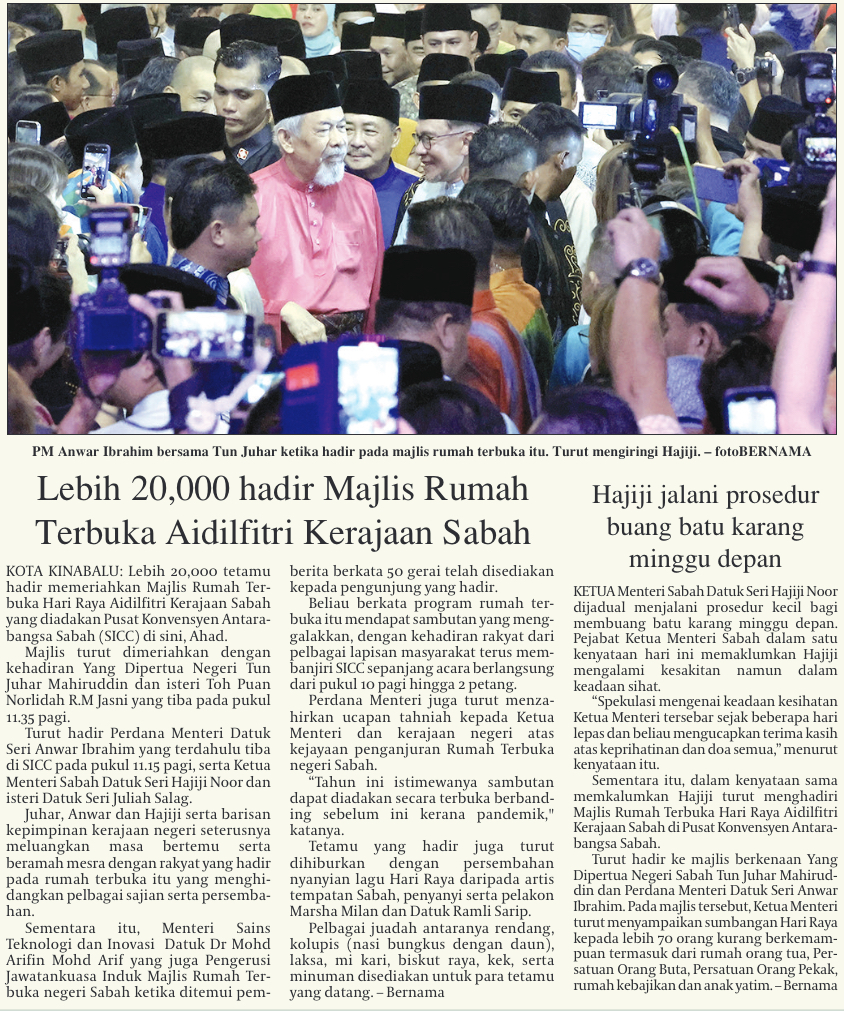 Lebih 20,000 hadir Majlis Rumah Terbuka Aidilfitri Kerajaan Sabah