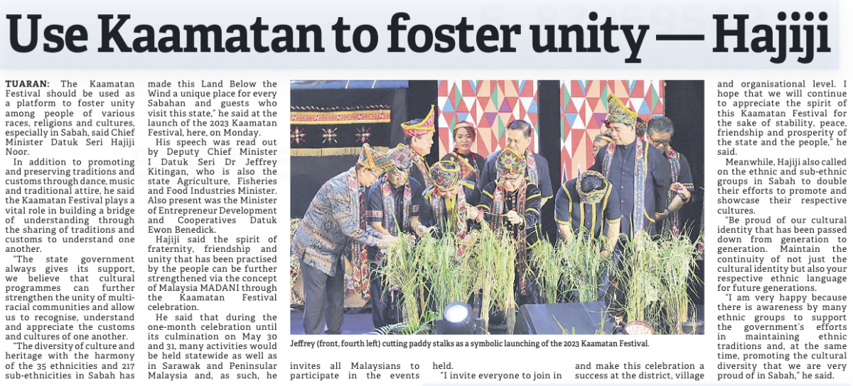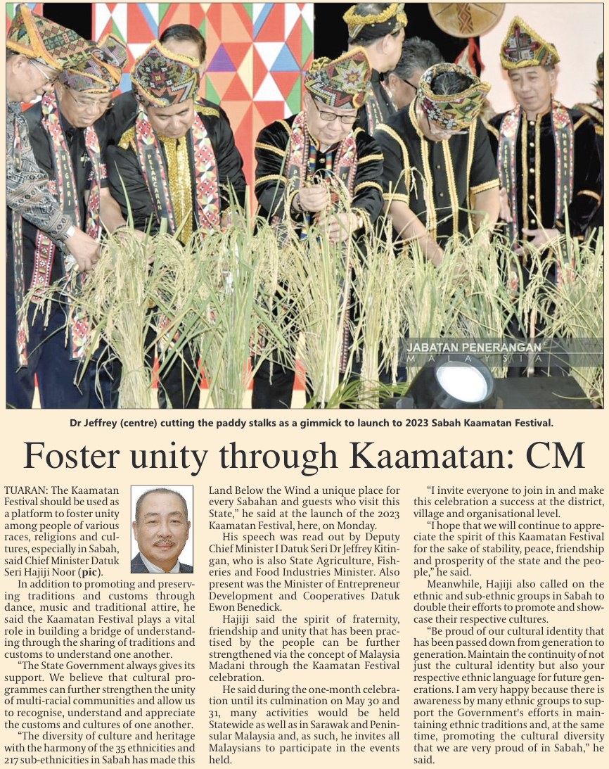 Use Kaamatan to foster unity - Hajiji