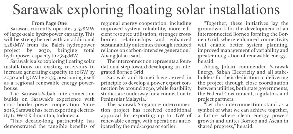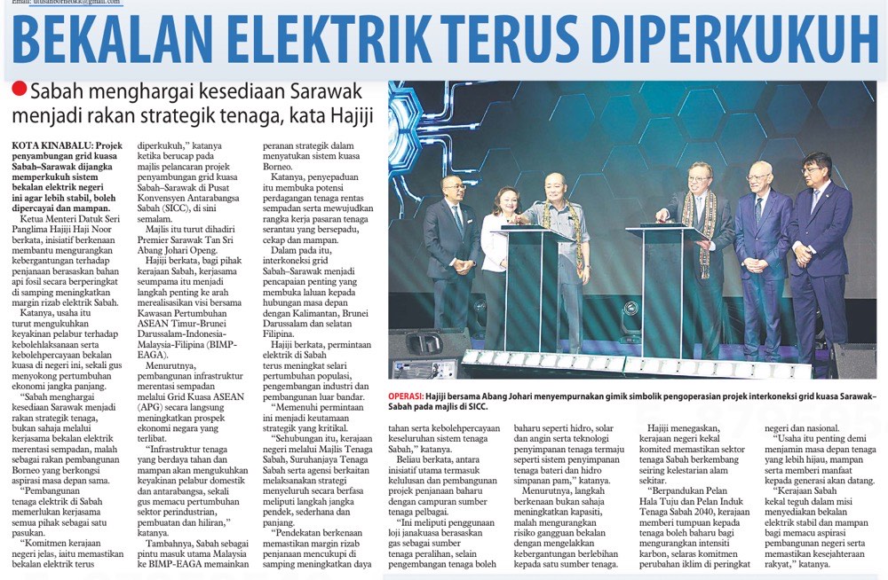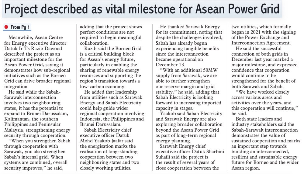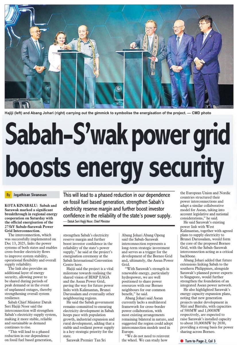 Sabah-S'wak power grid boosts energy security (Page 1)