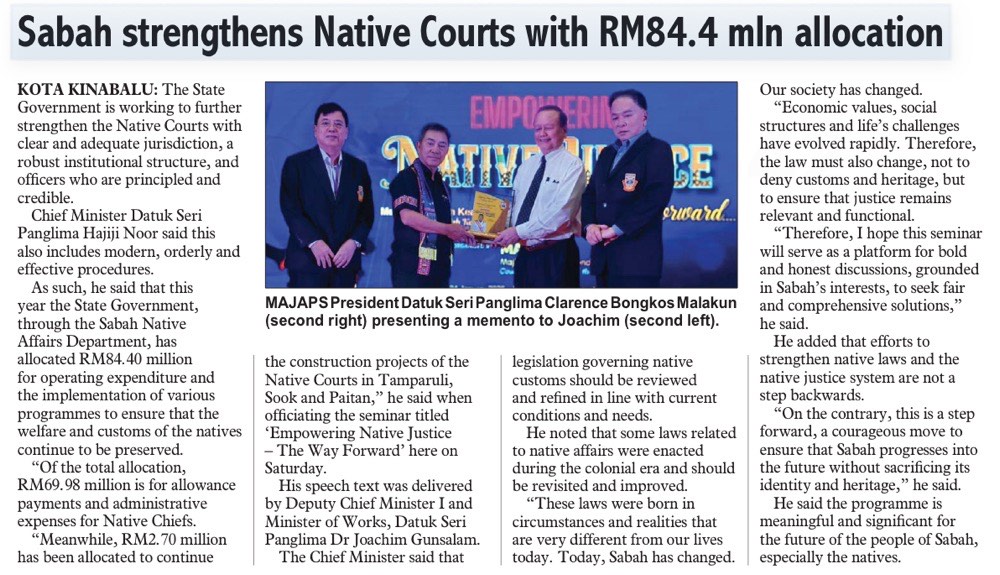 Sabah strengthens Native Courts with RM84.4 mln allocation