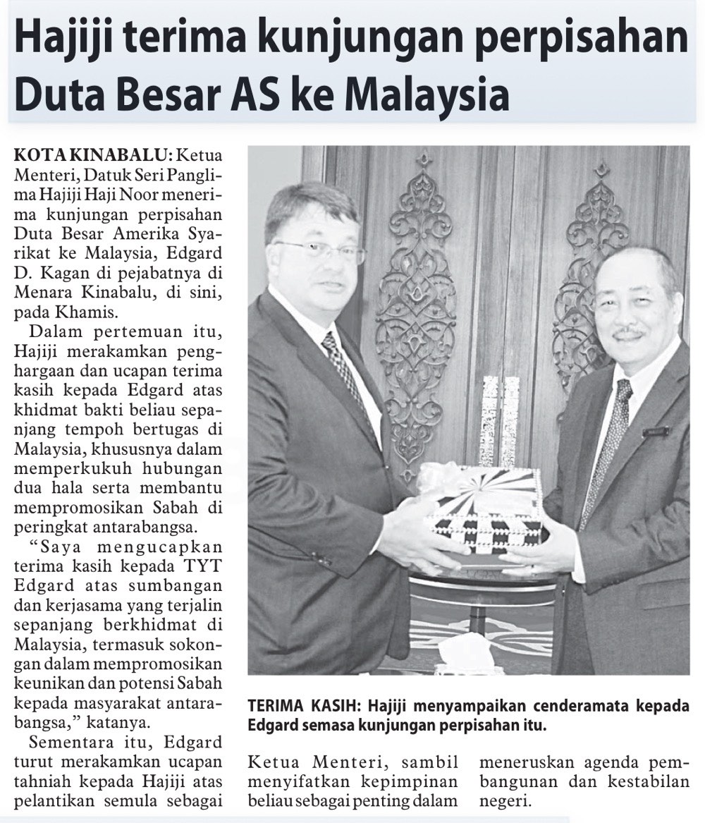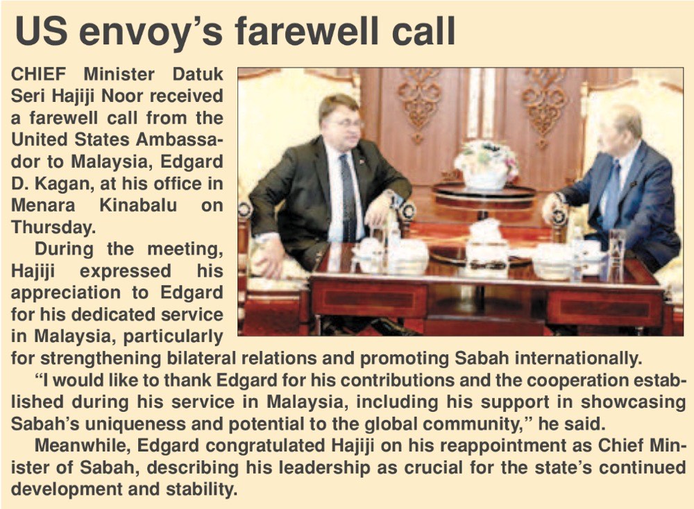 Hajiji terima kunjungan perpisahan Duta Besar AS ke Malaysia