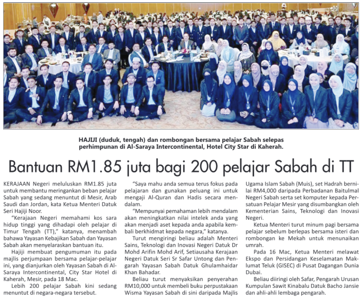 Bantuan RM1.85 juta bagi i 200 pelajar Sabah di TT