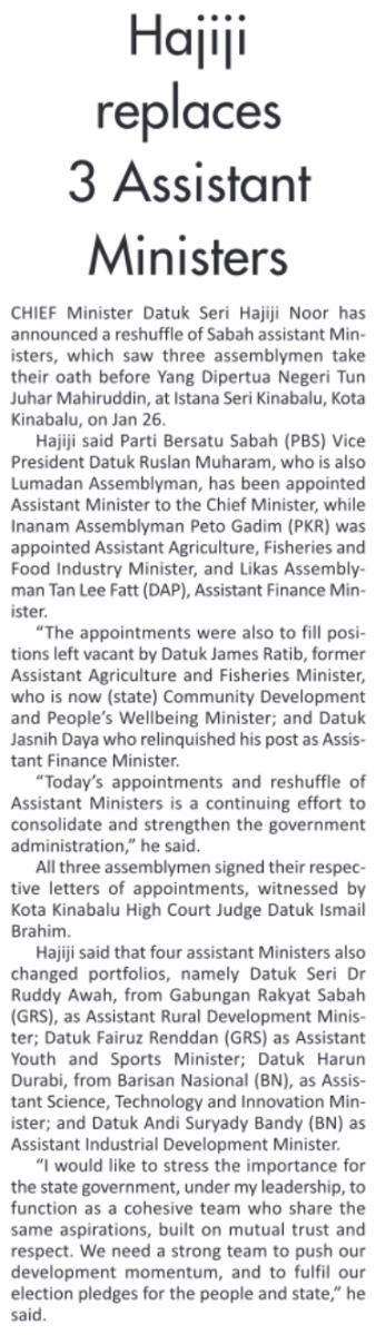 Hajiji replaces 3 Assistant Ministers