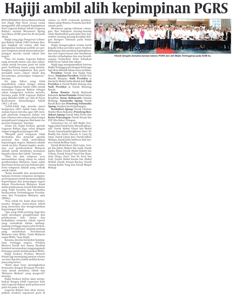 Hajiji ambil alih kepimpinan PGRS