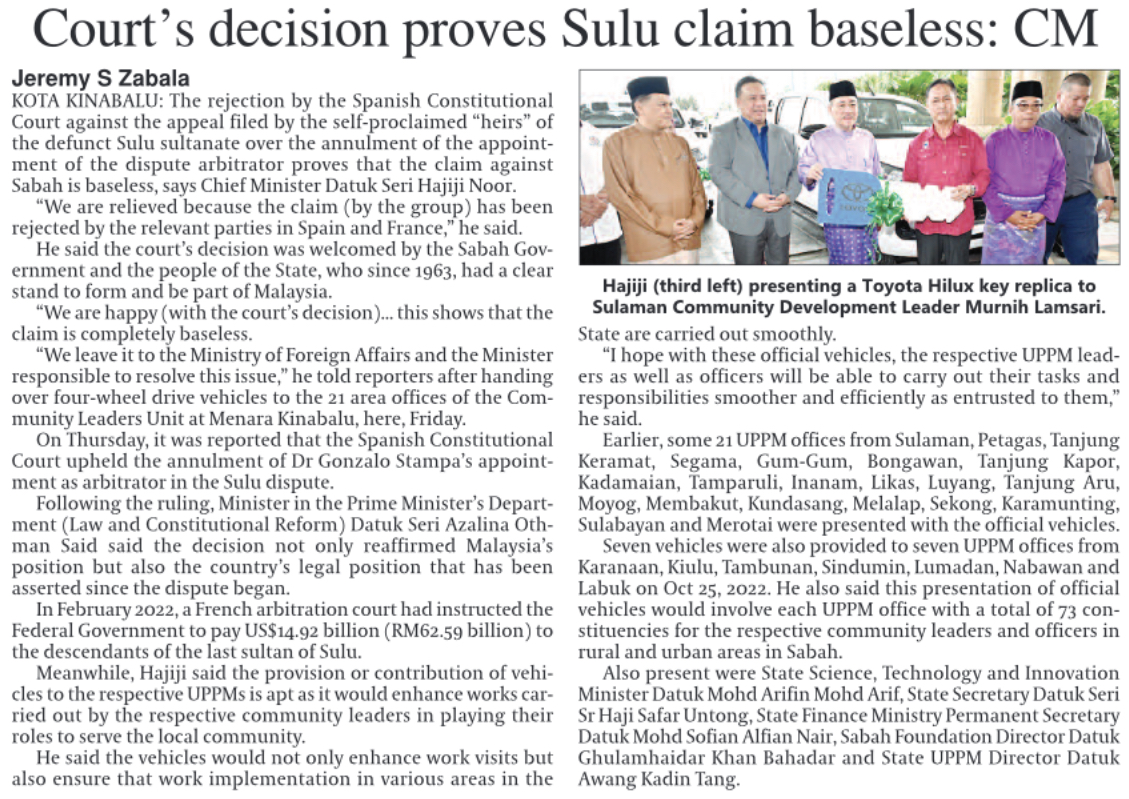 Spanish Court's decision proves Sulu 'heirs' claims are baseless