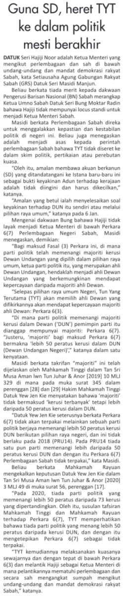 Guna SD, heret TYT ke dalam politik mesti berakhir