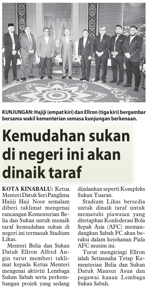 CM briefed on plans to upgrade Sabah_s sports facilities