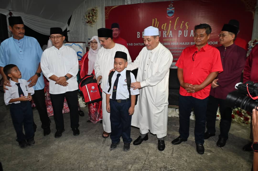 Pada majlis itu, Hajiji menyampaikan sumbangan kepada golongan asnaf, bag sekolah kepada pelajar, kerusi roda Jabatan Kebajikan kepada para penerima dan kunci rumah SMJ kepada penerima yang layak.