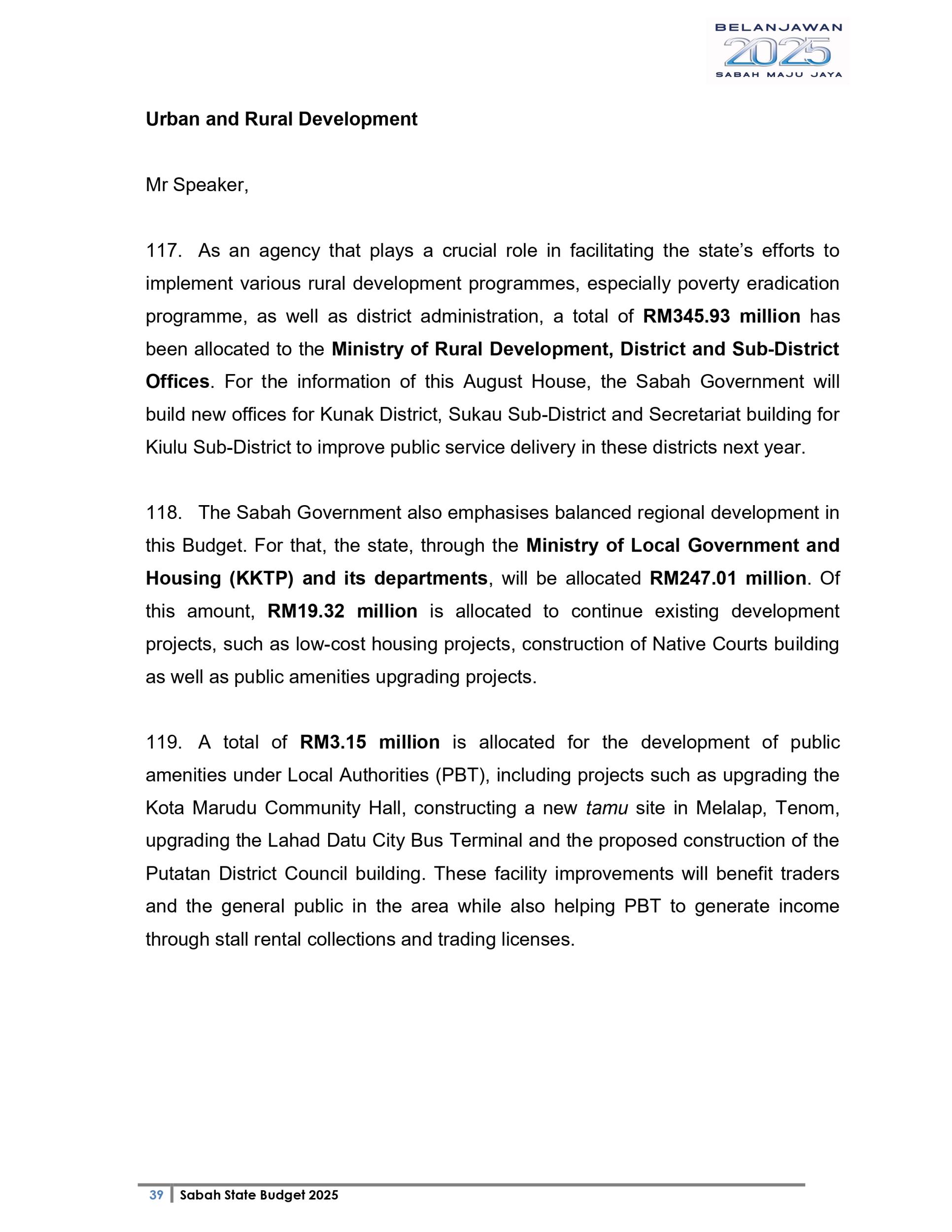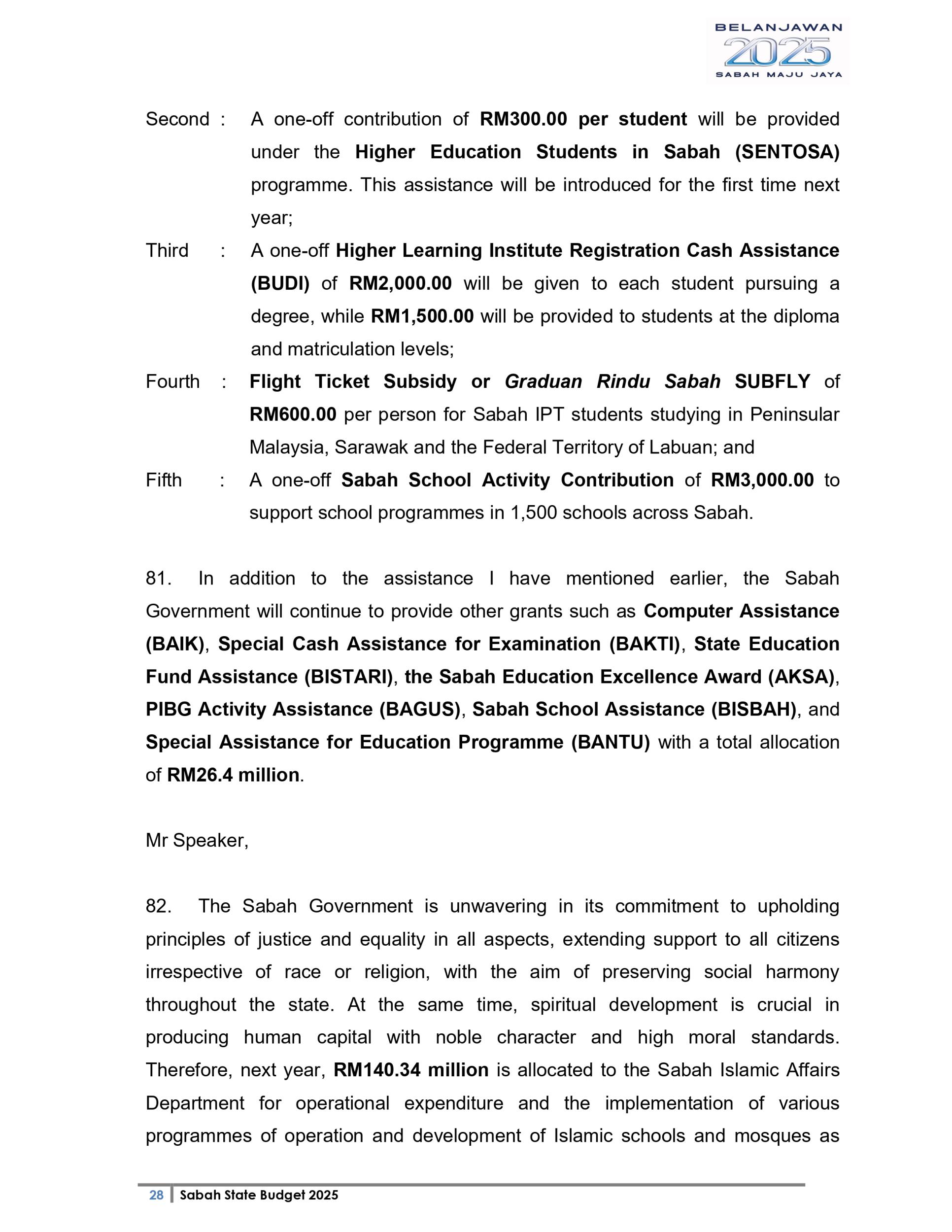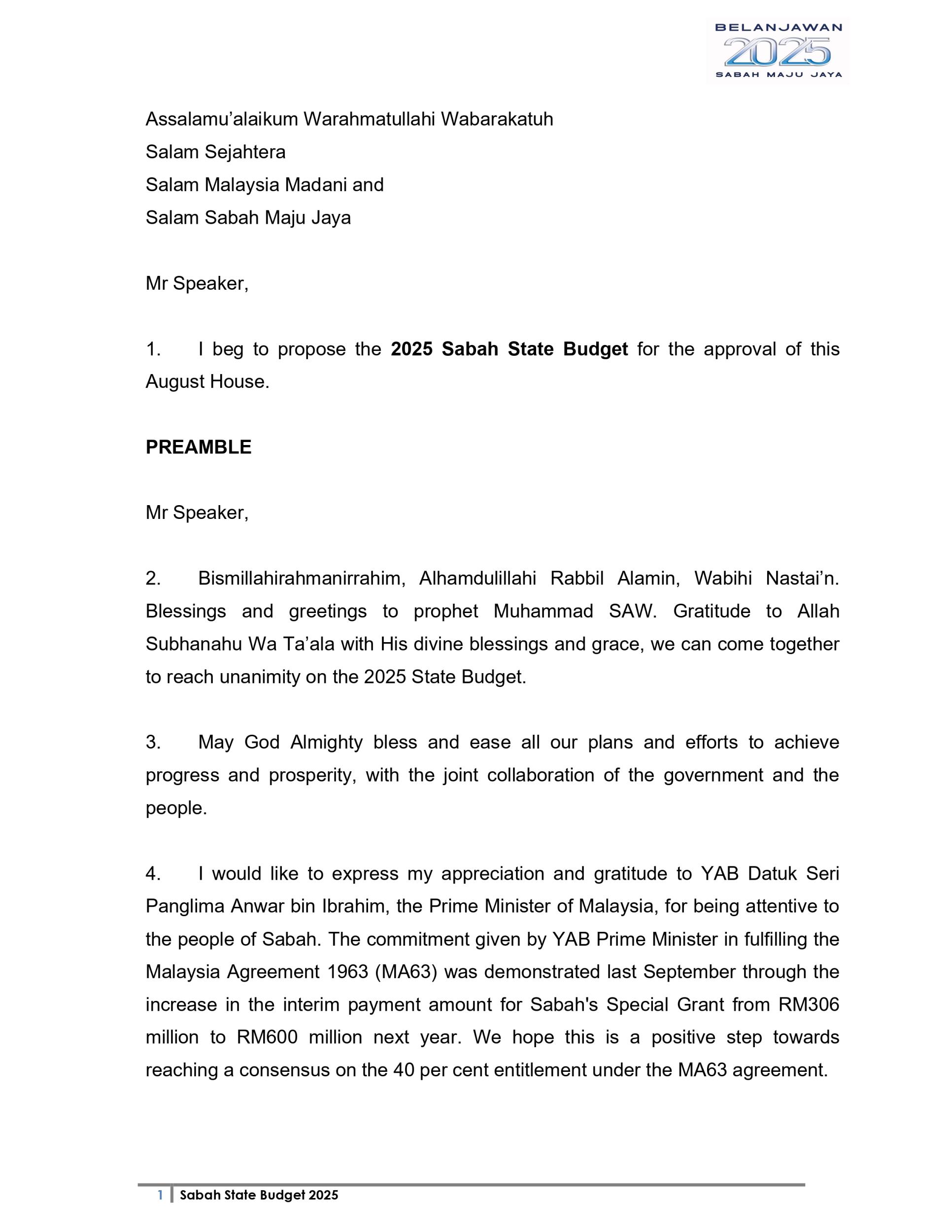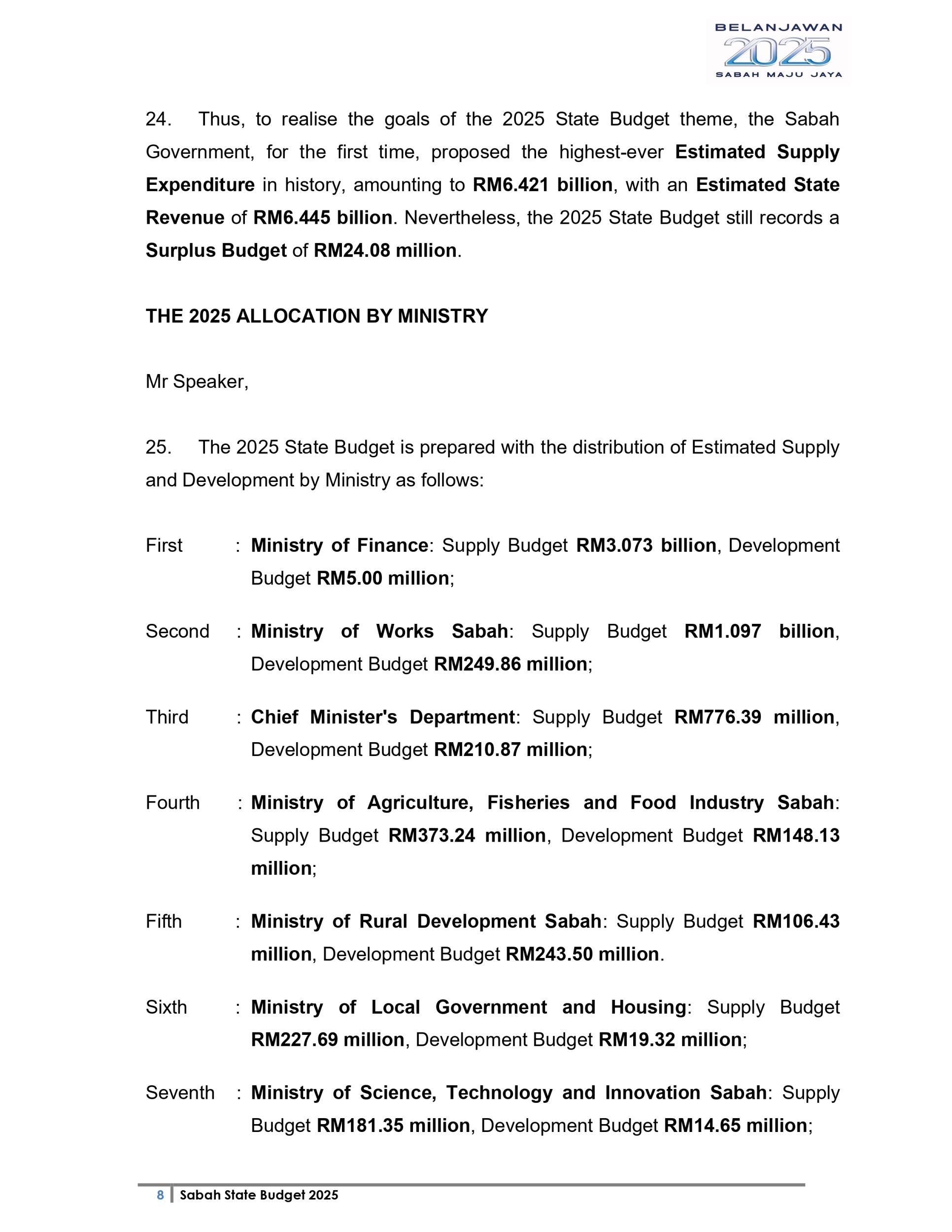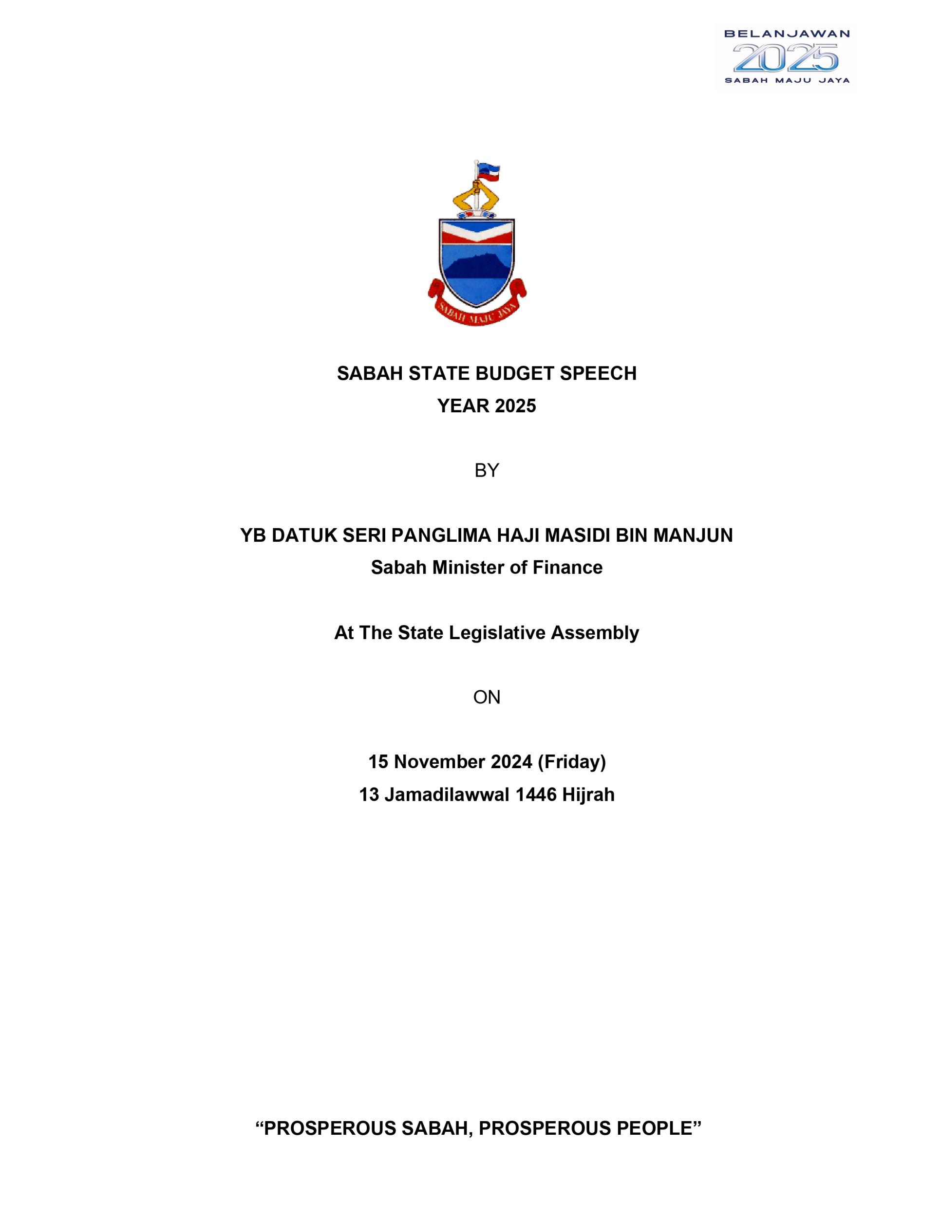 Ucapan Belanjawan Negeri Sabah 2025 (Bahasa English)