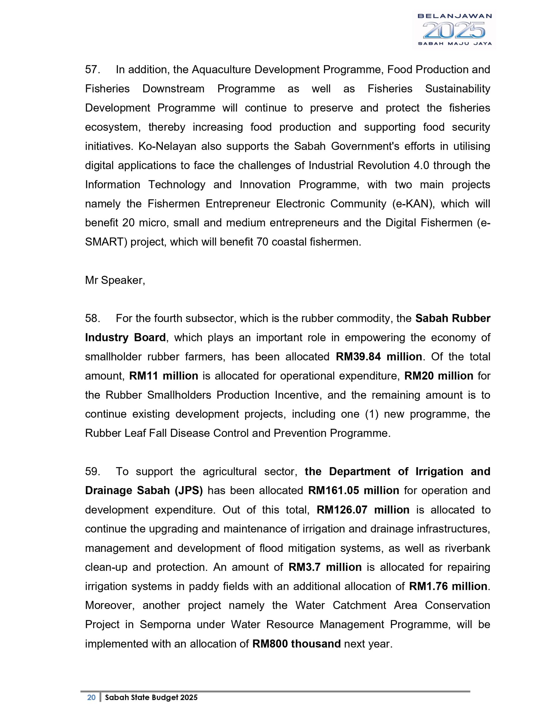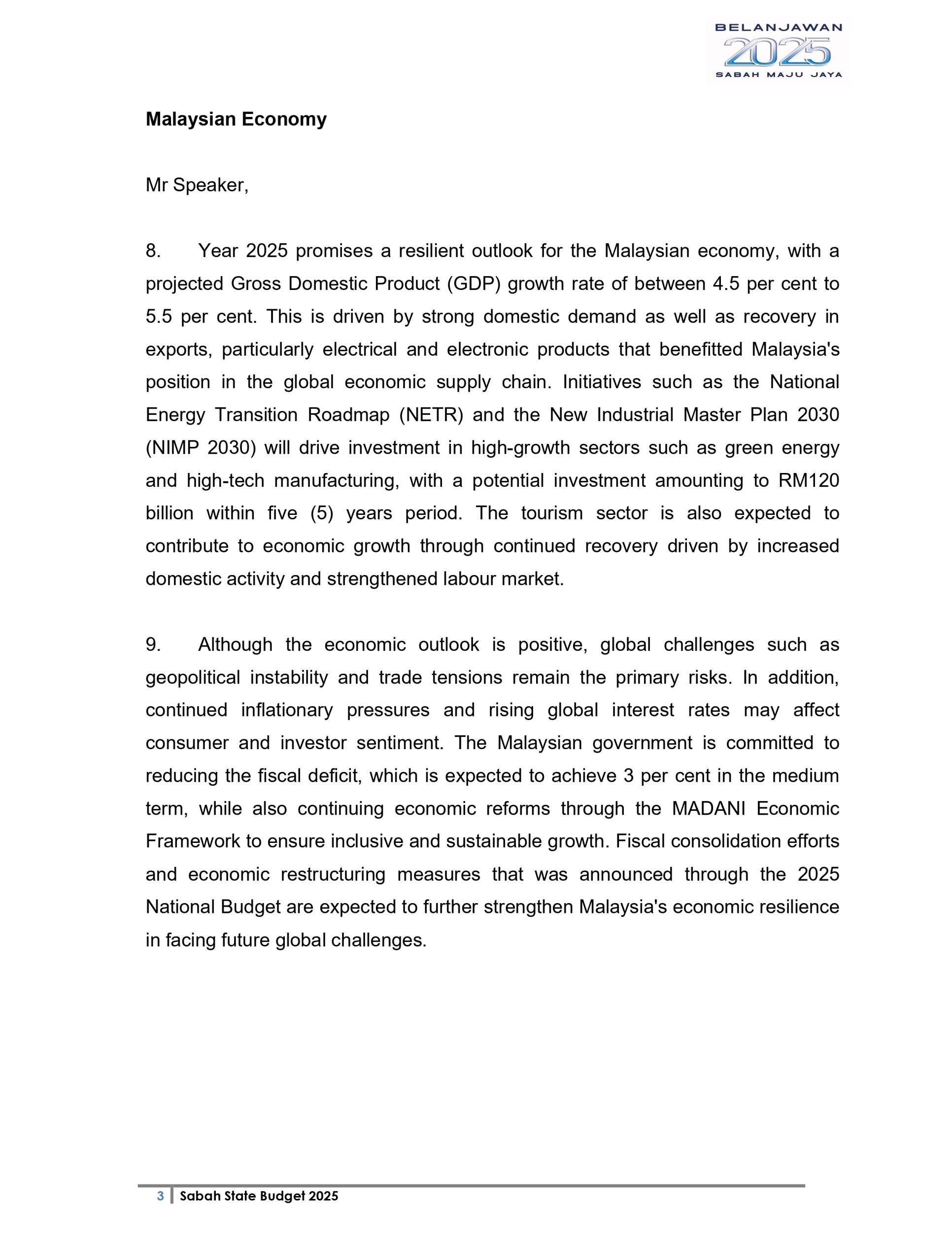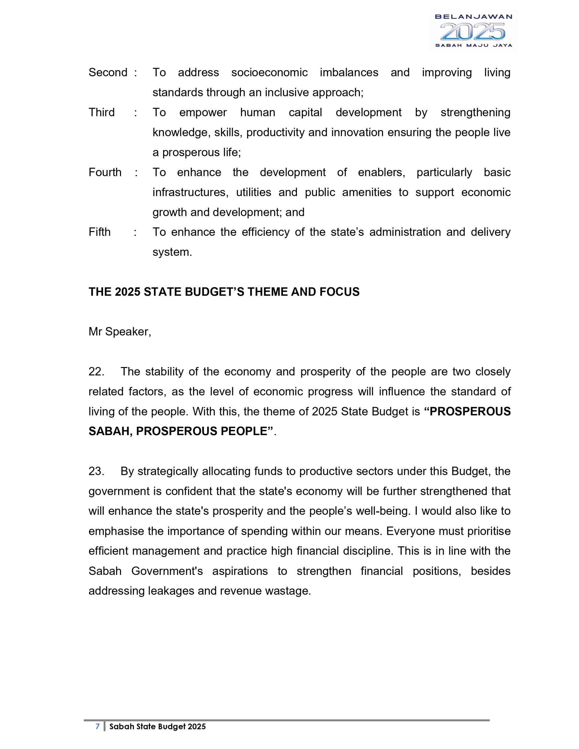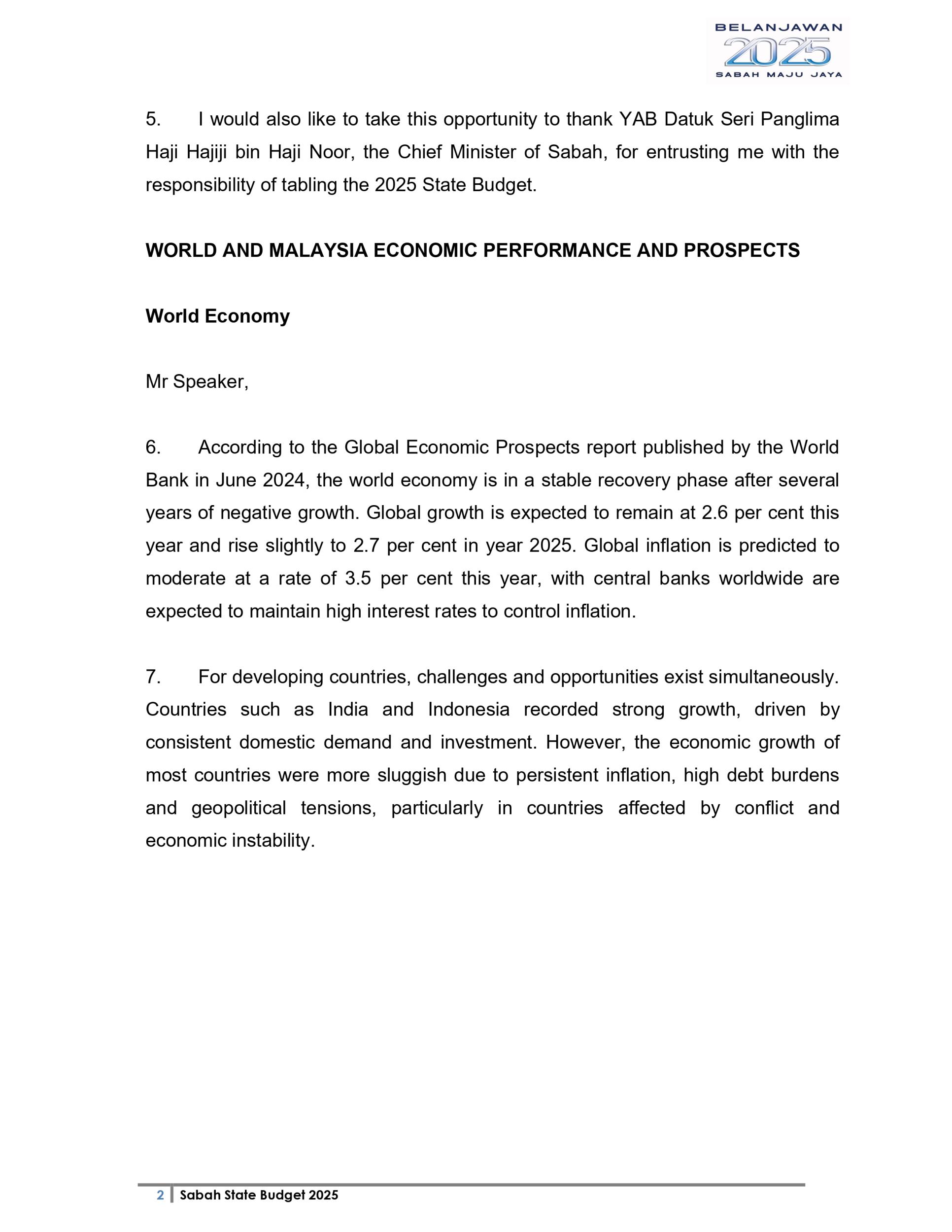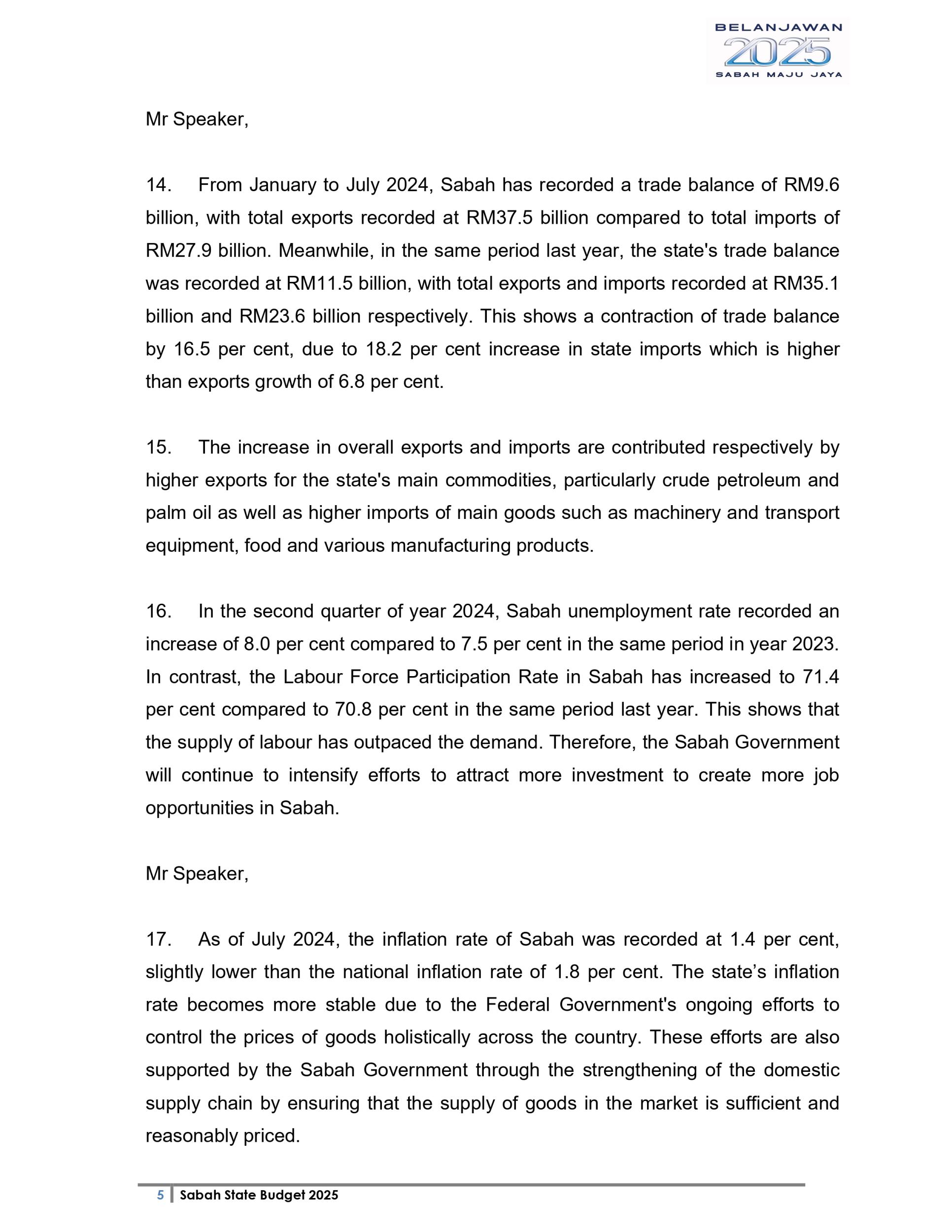 Ucapan Belanjawan Negeri Sabah 2025 (Bahasa English)