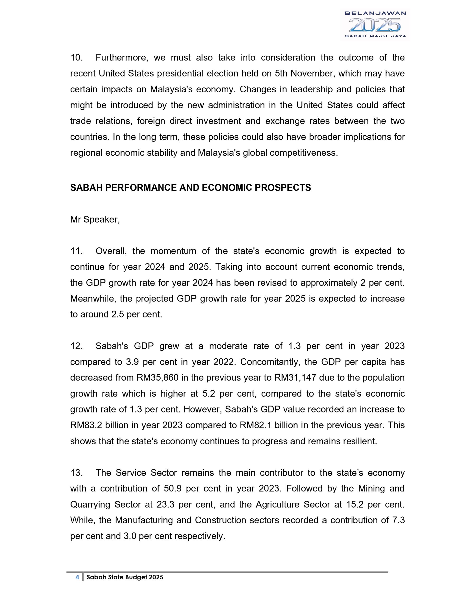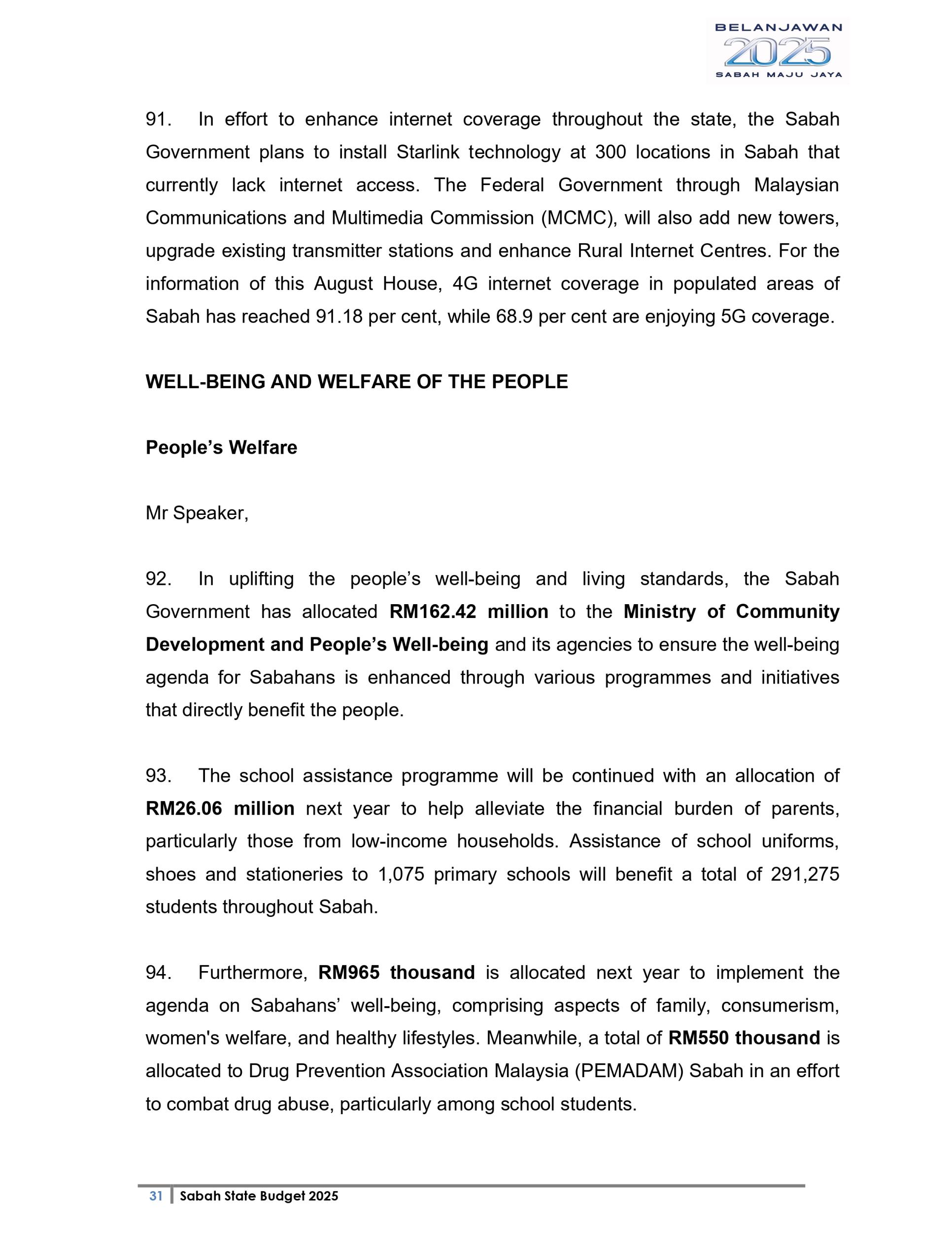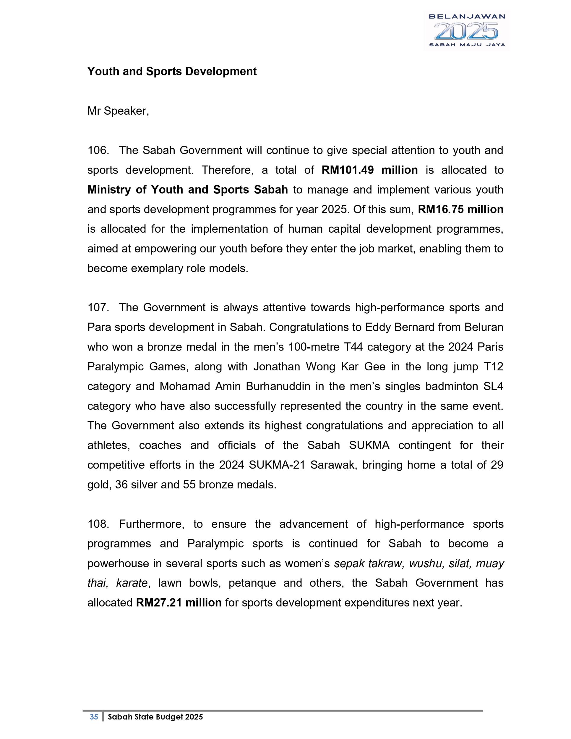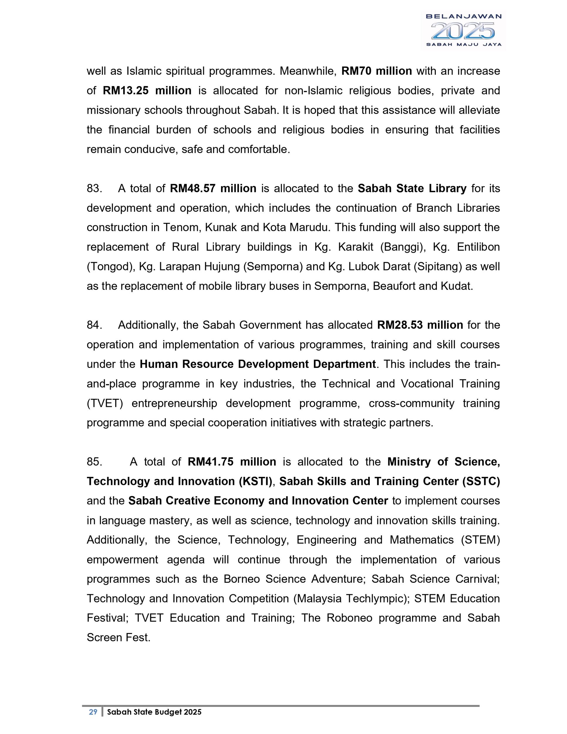 Ucapan Belanjawan Negeri Sabah 2025 (Bahasa English)