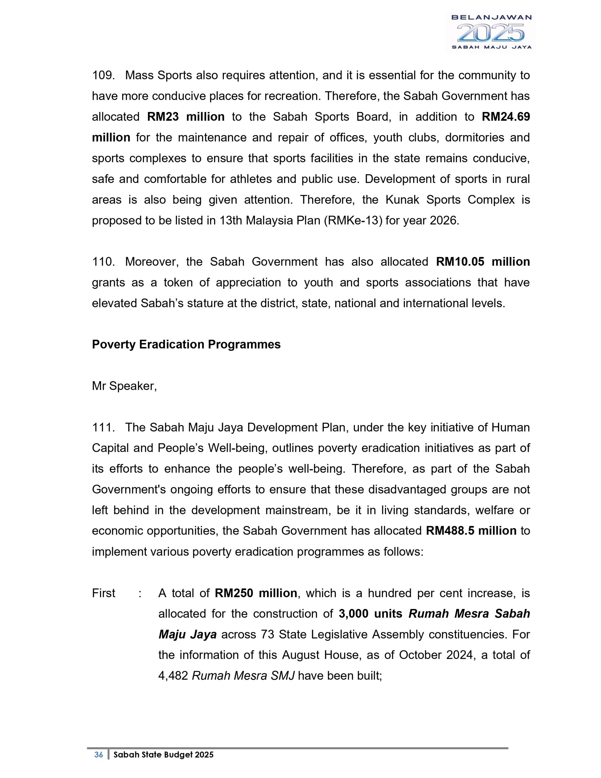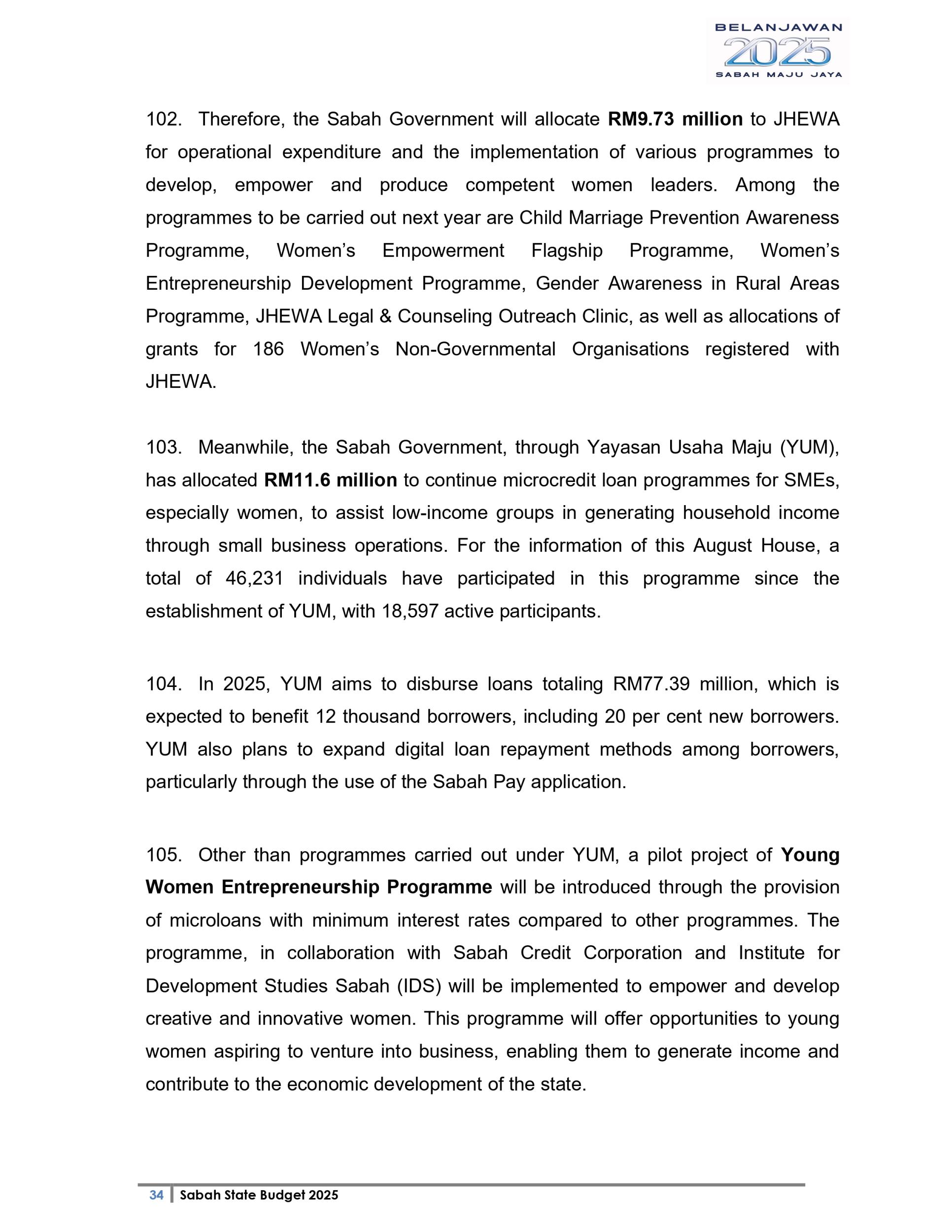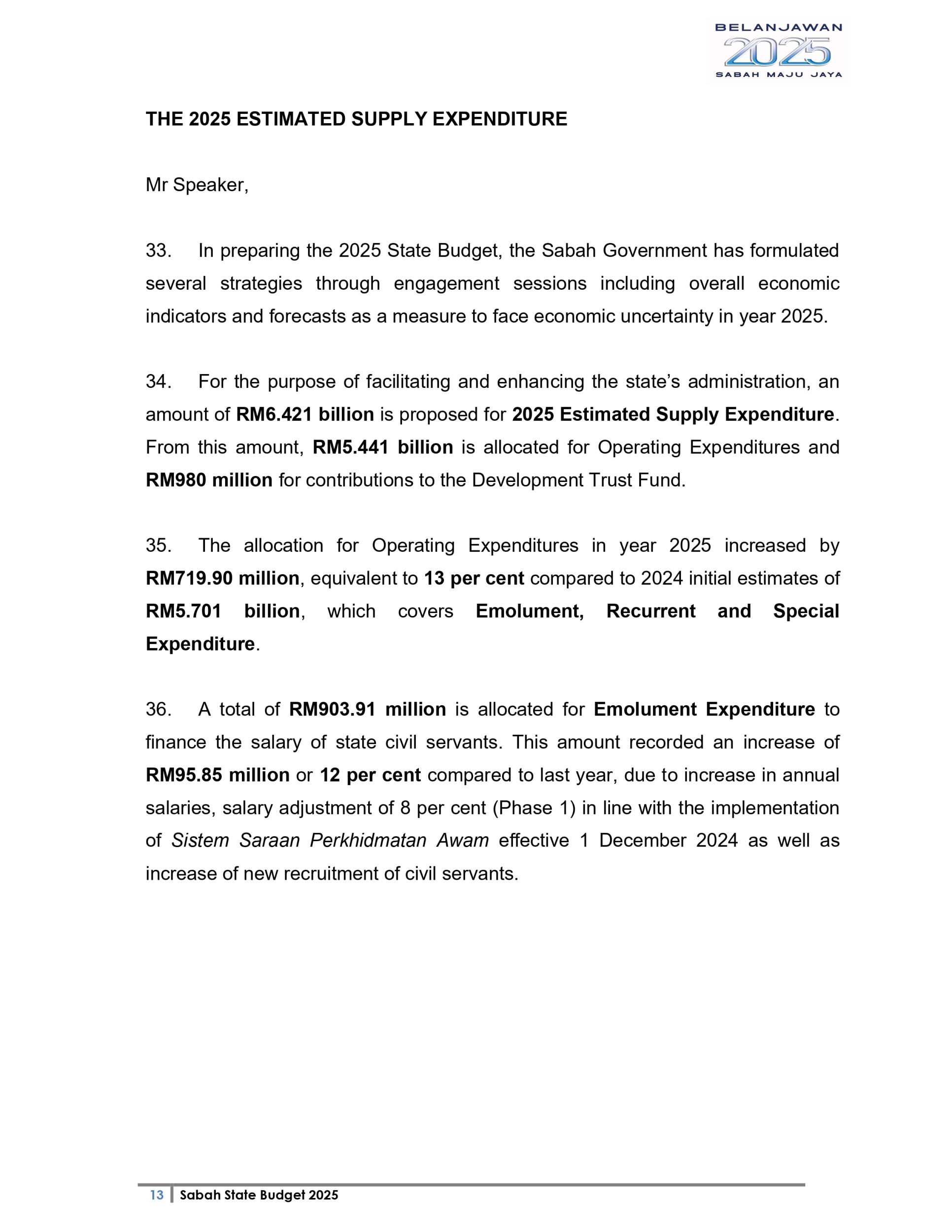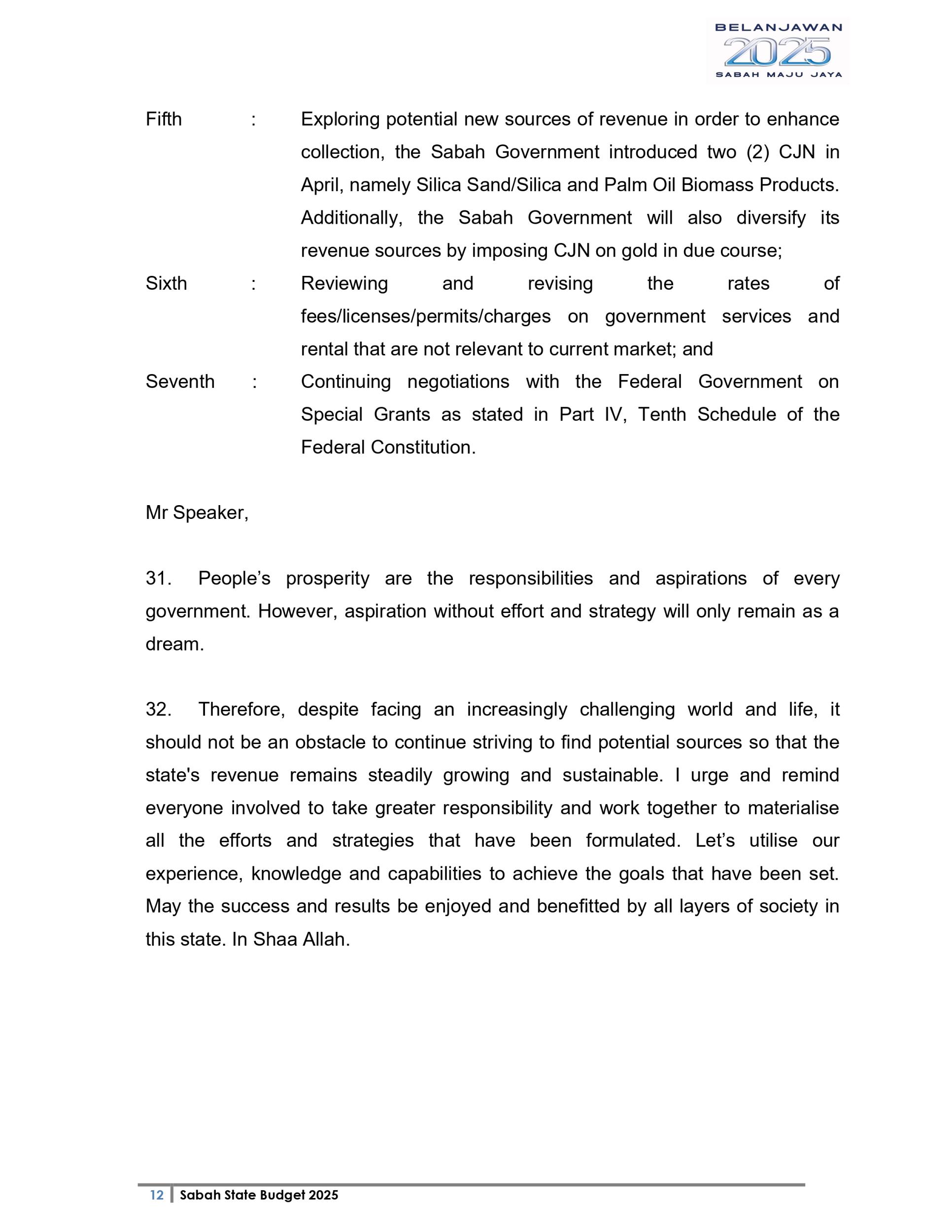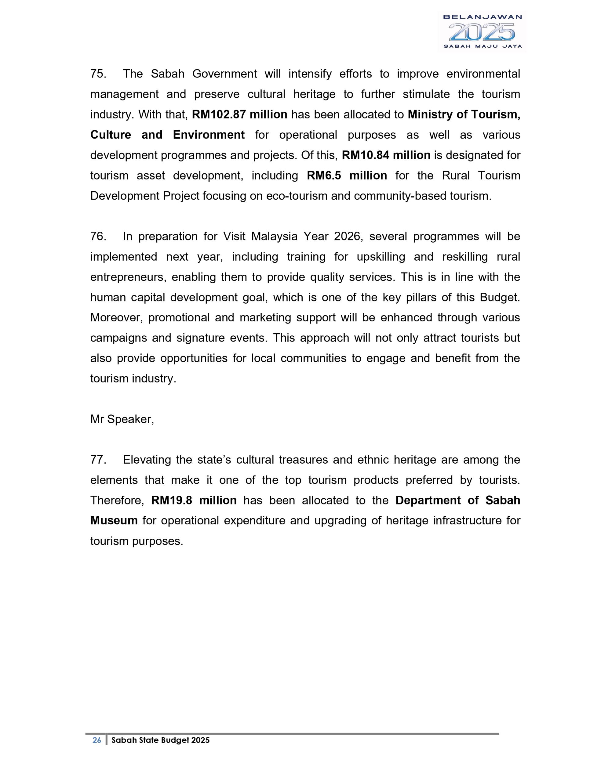 Ucapan Belanjawan Negeri Sabah 2025 (Bahasa English)