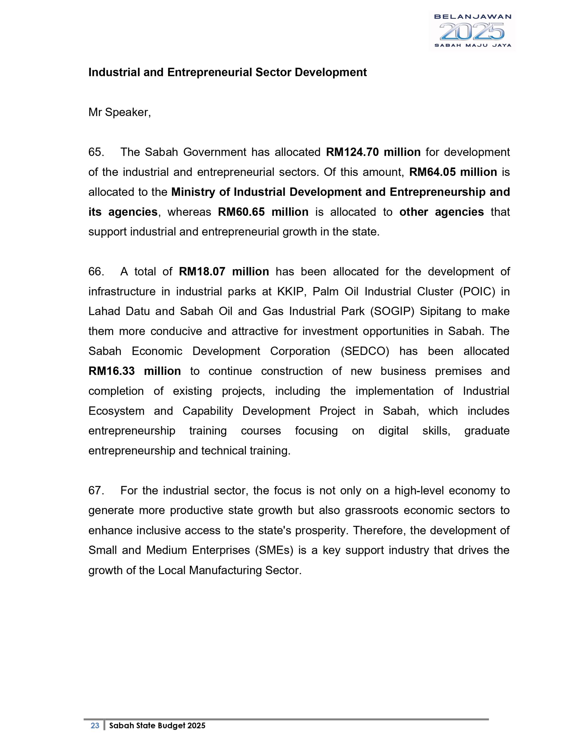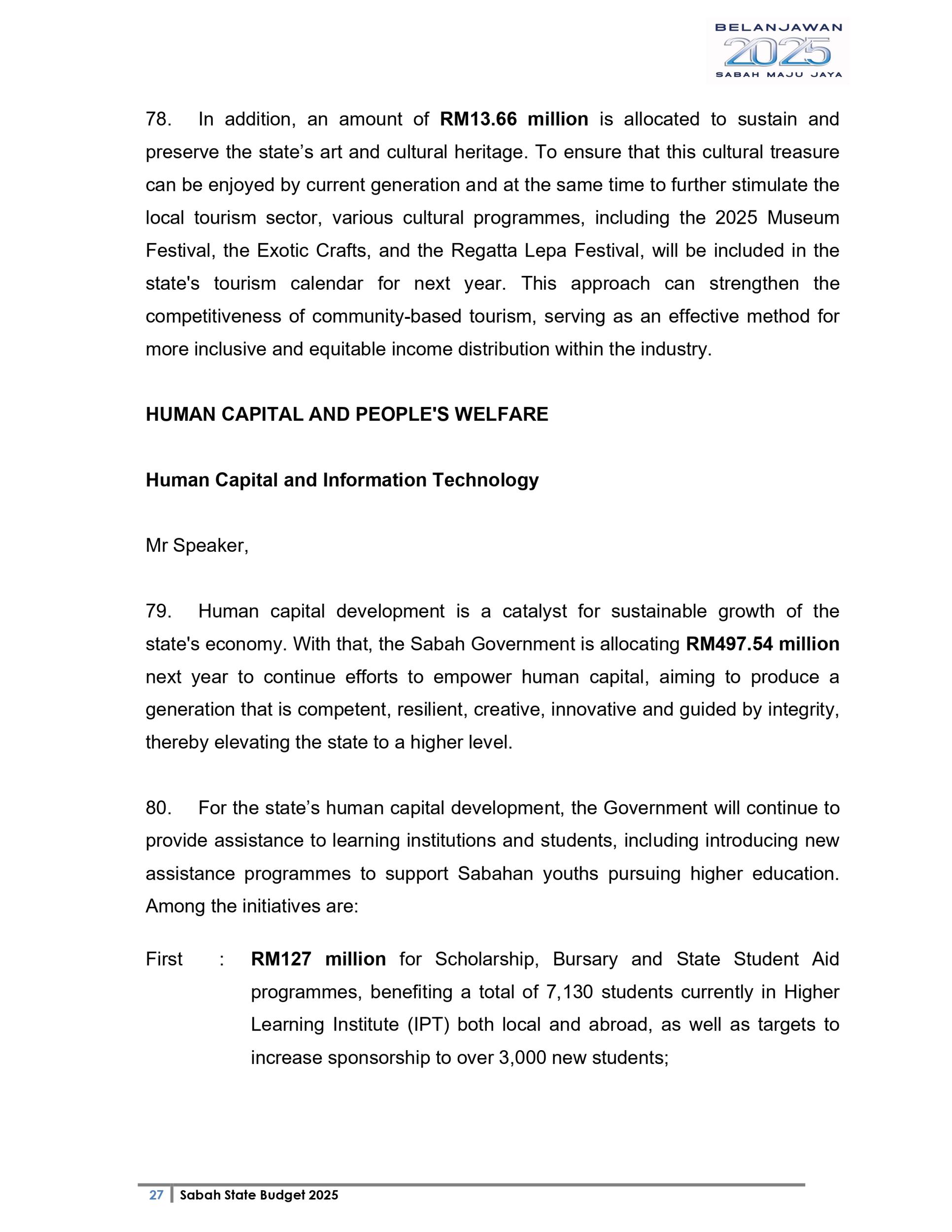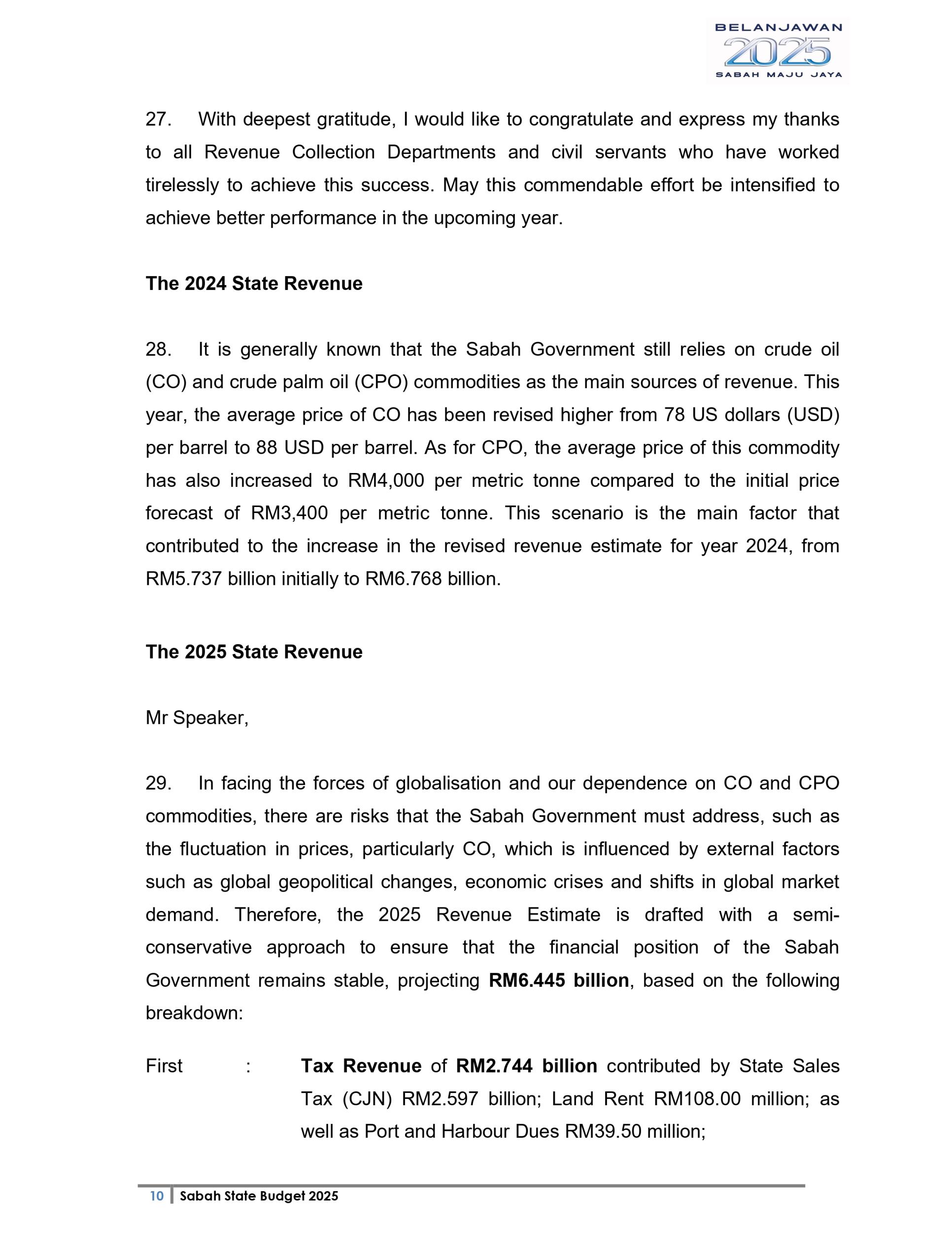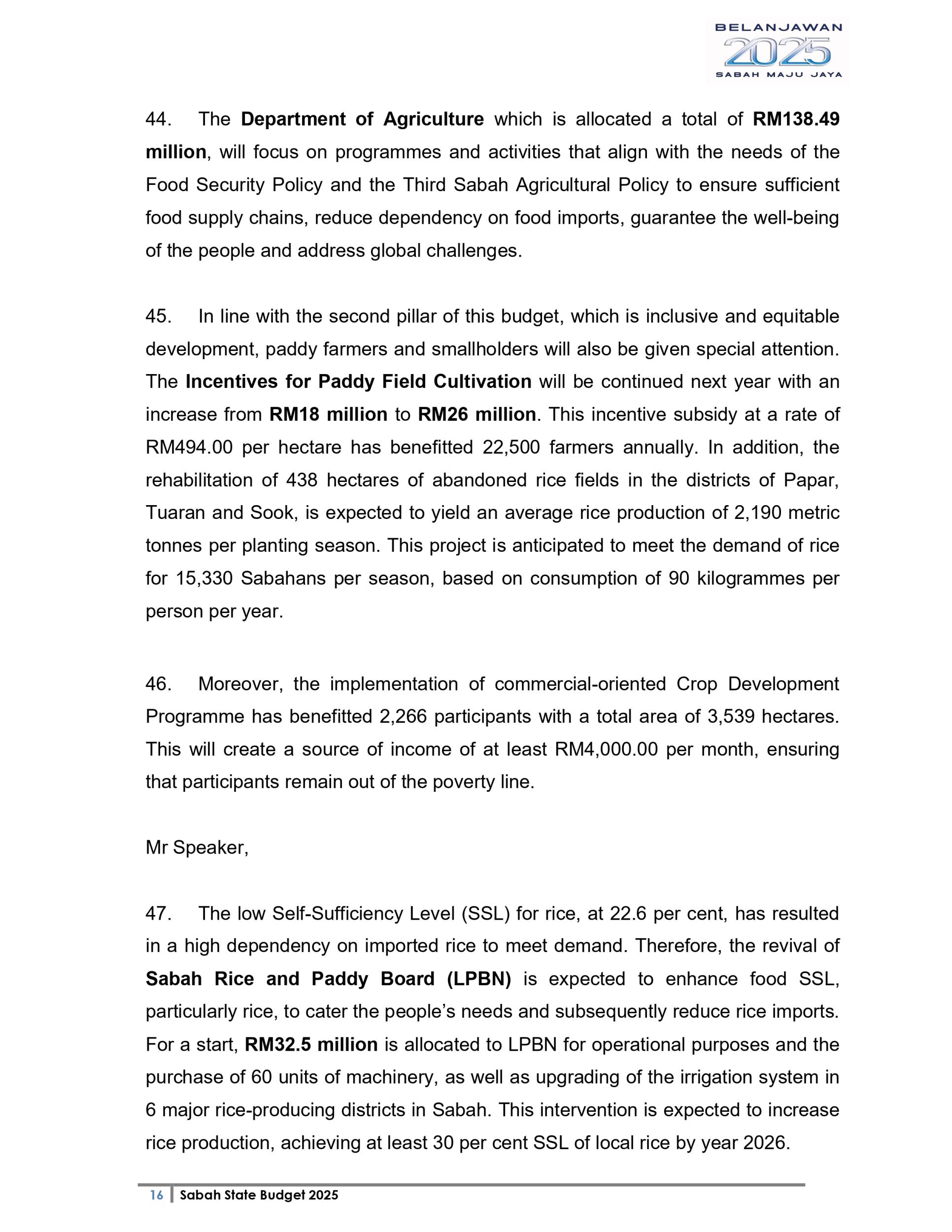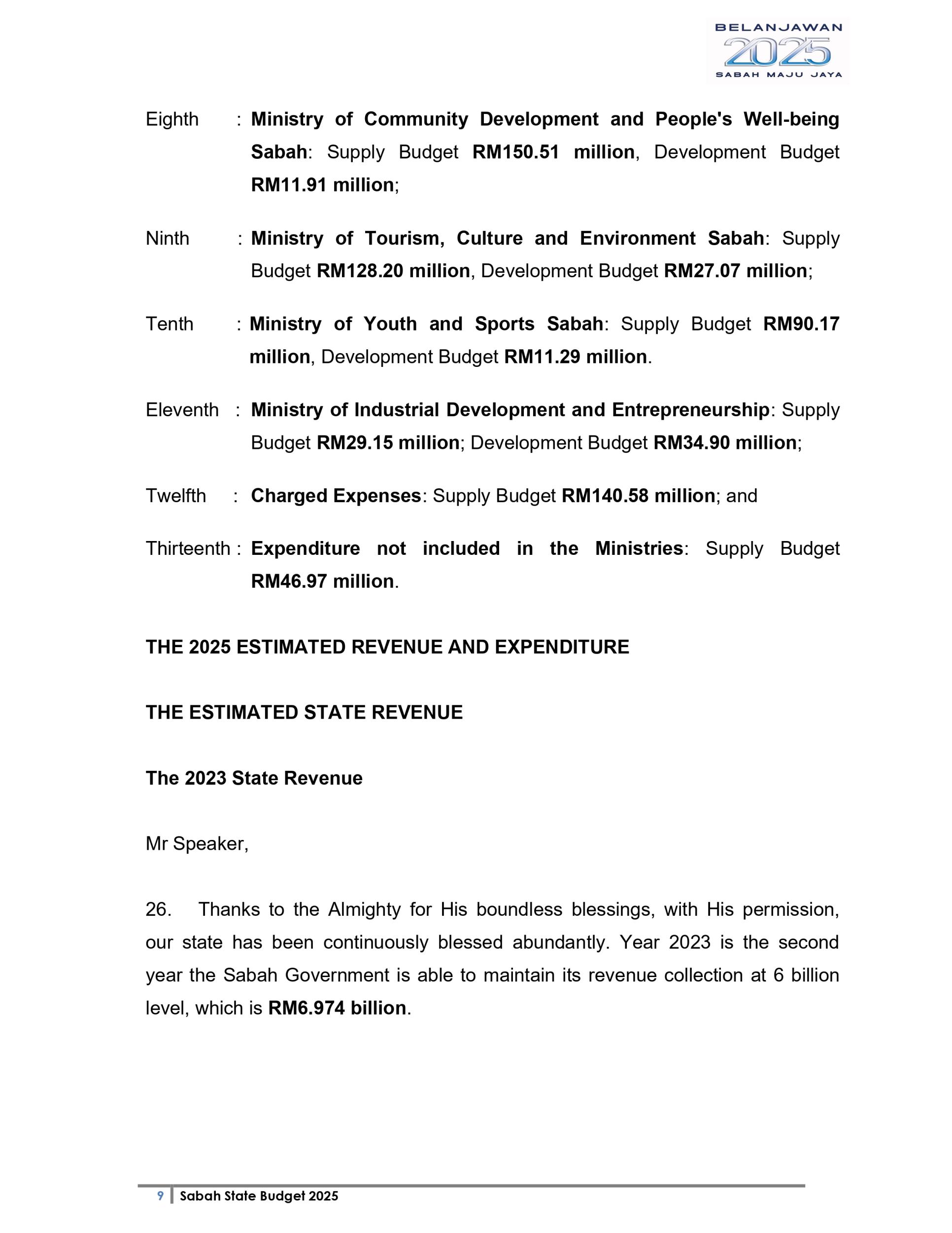 Ucapan Belanjawan Negeri Sabah 2025 (Bahasa English)