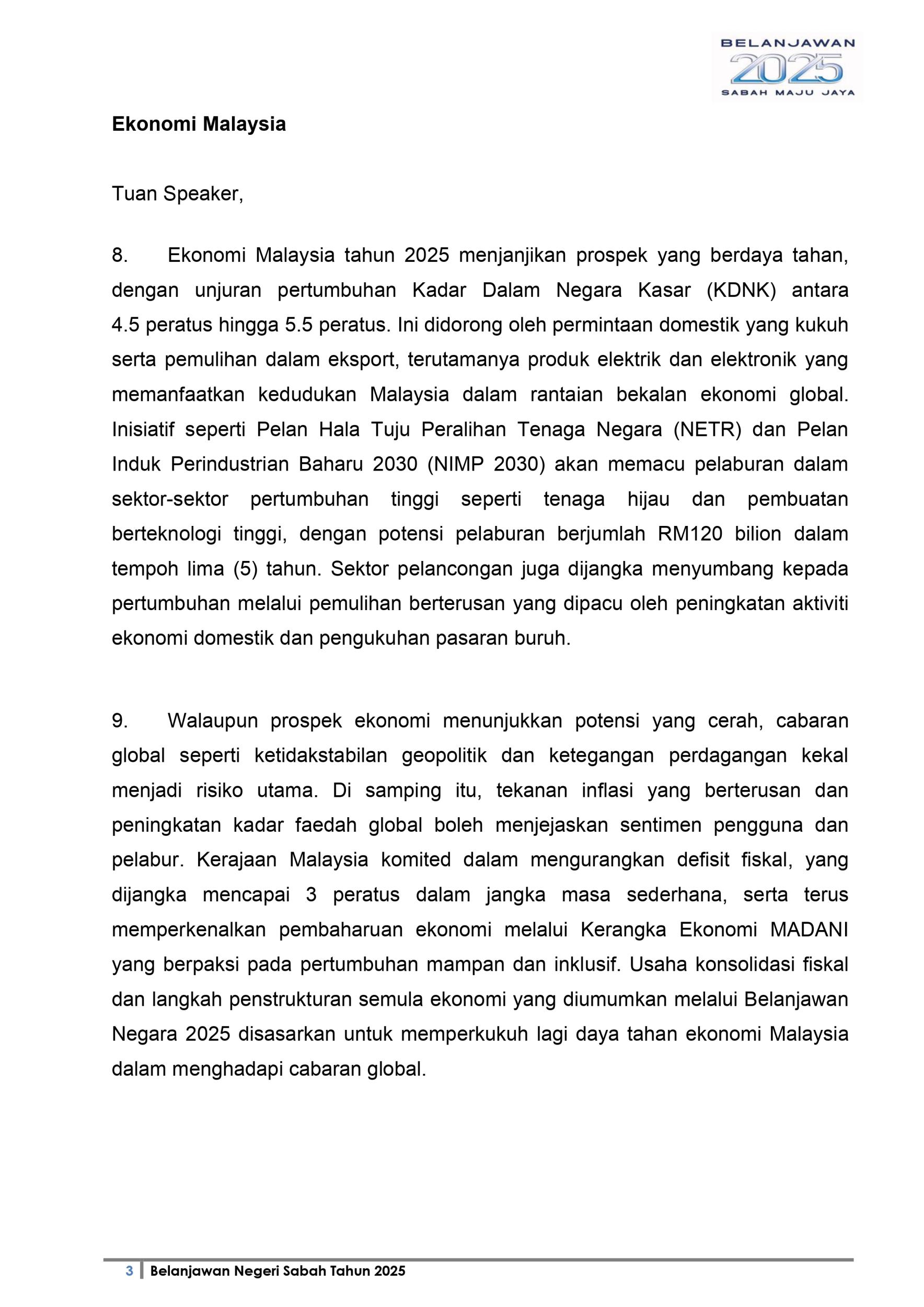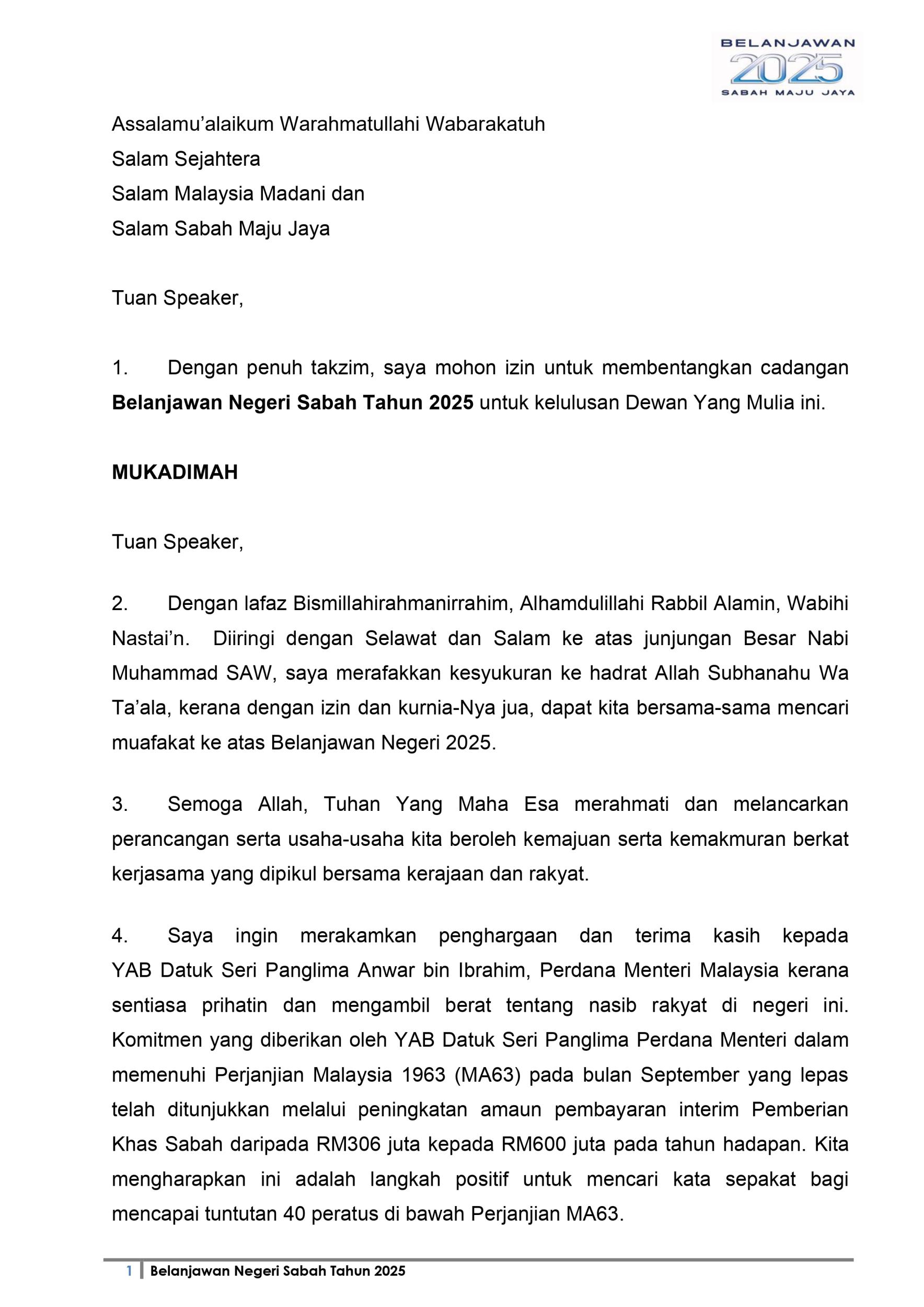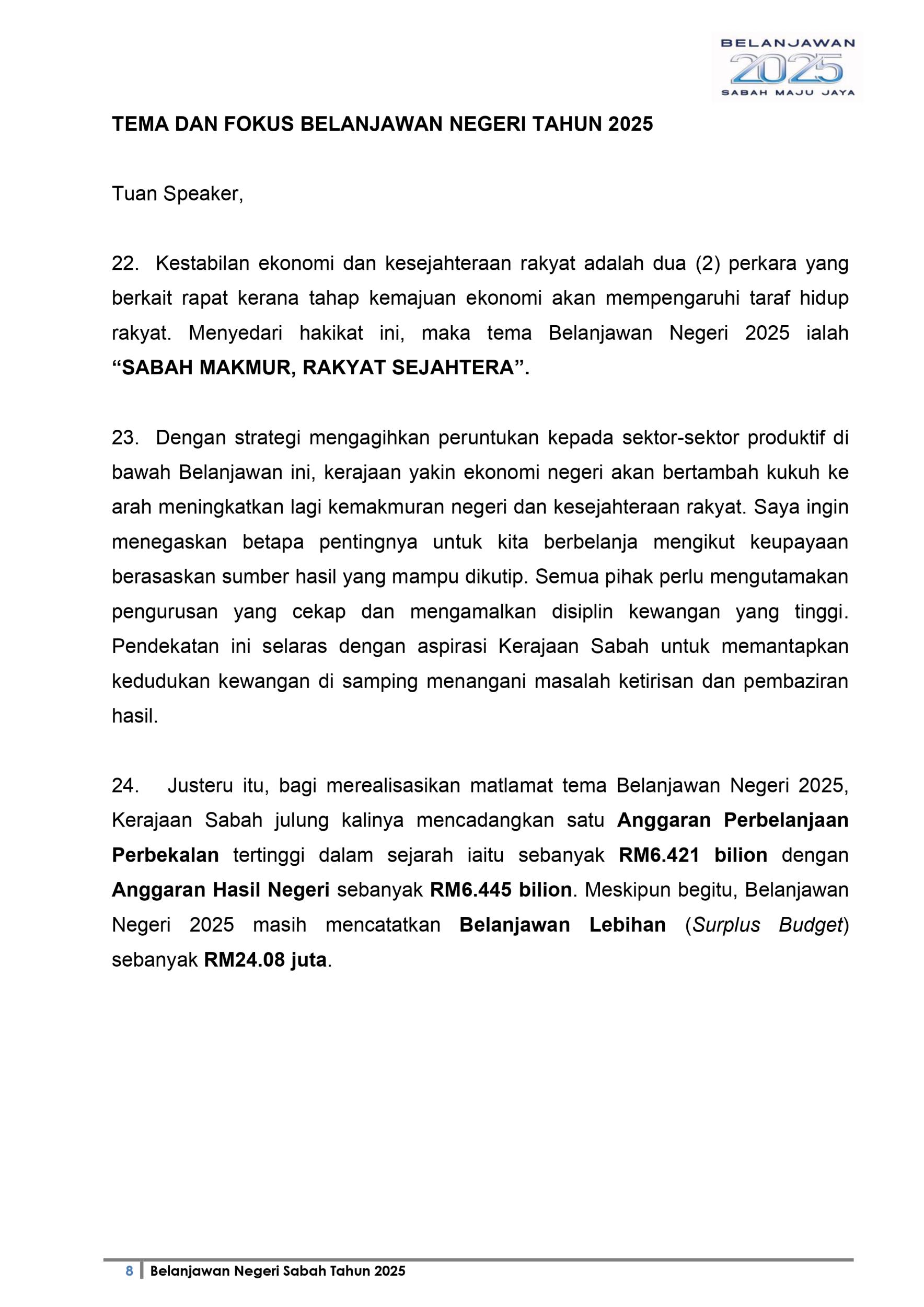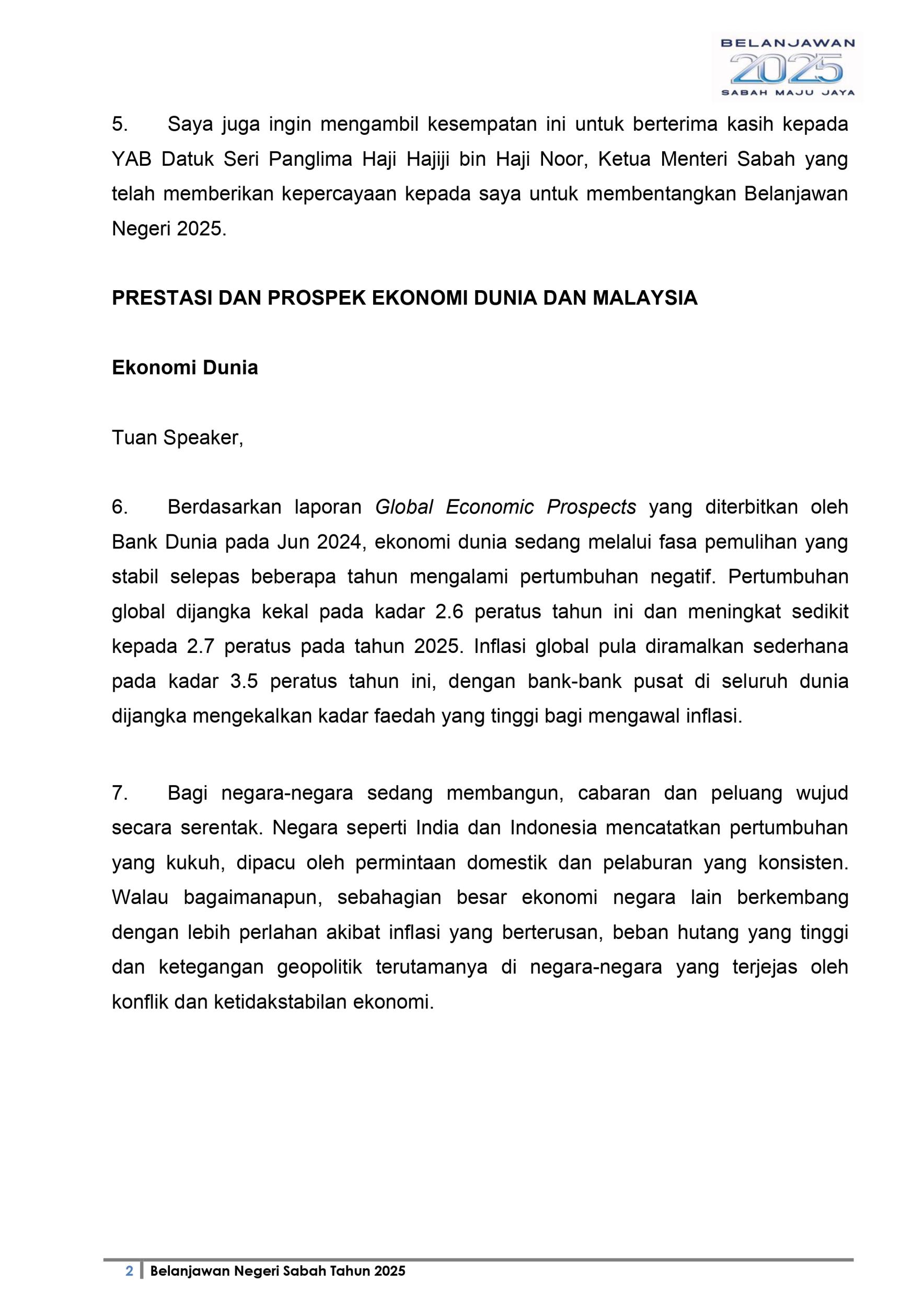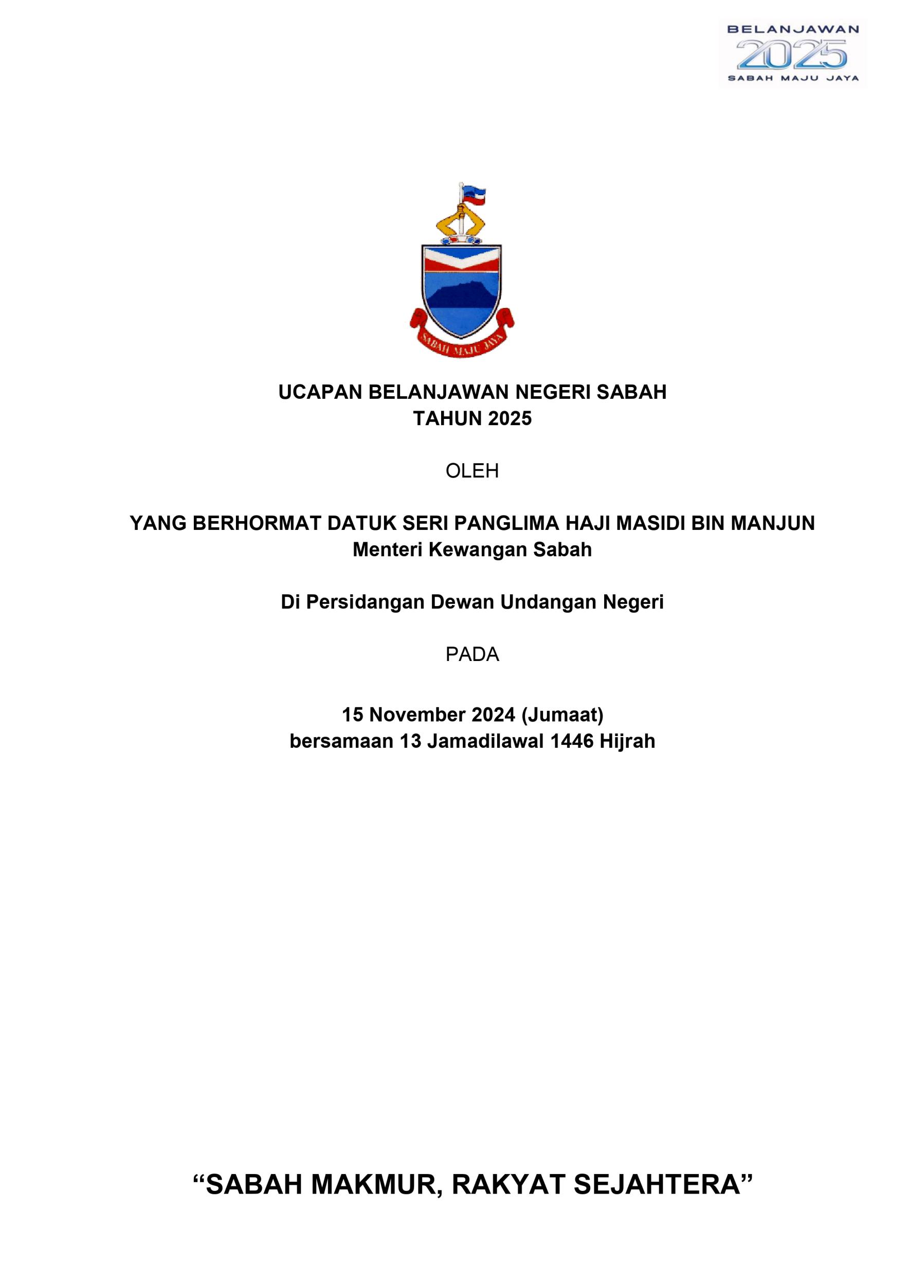 Ucapan Belanjawan Negeri Sabah 2025 (Bahasa Melayu)