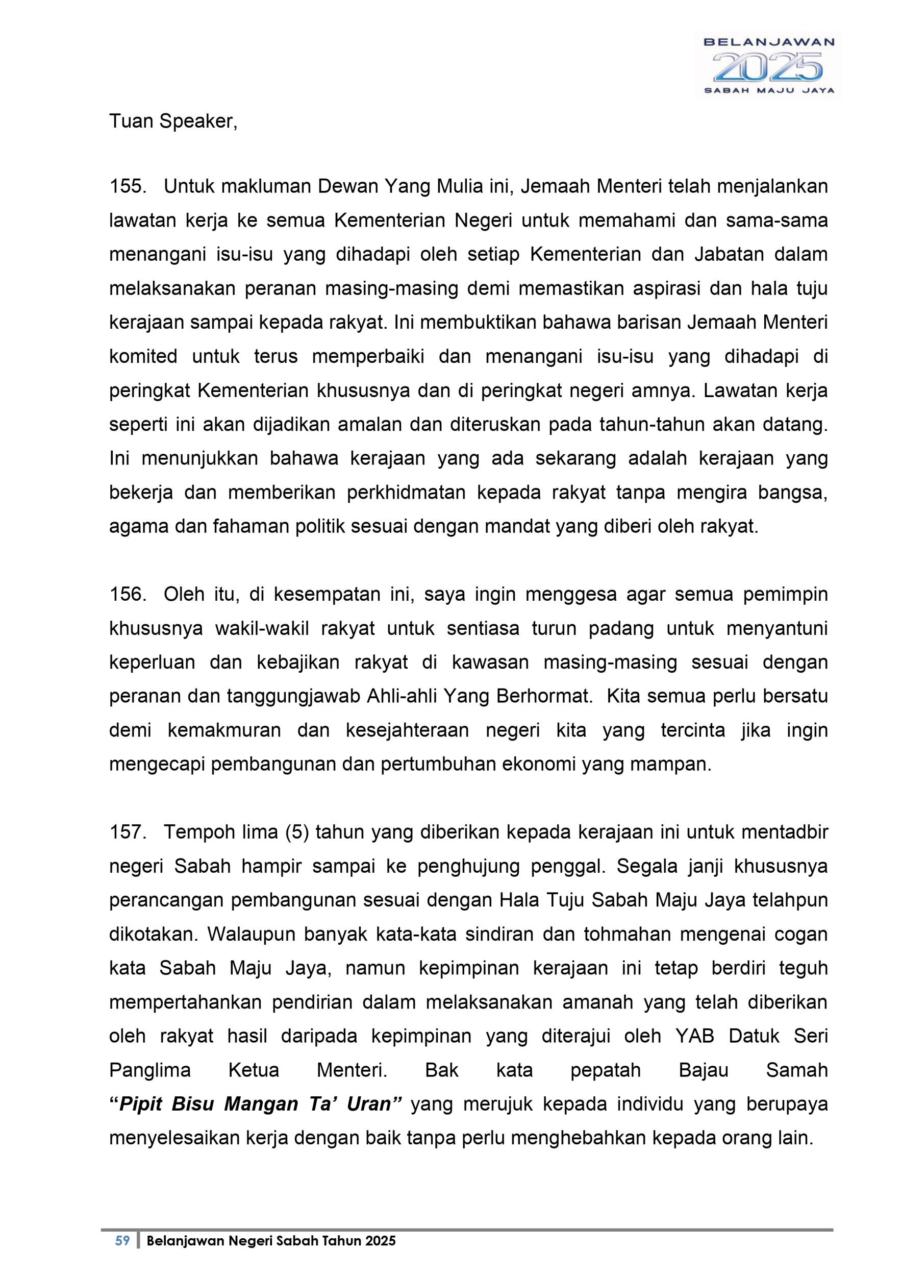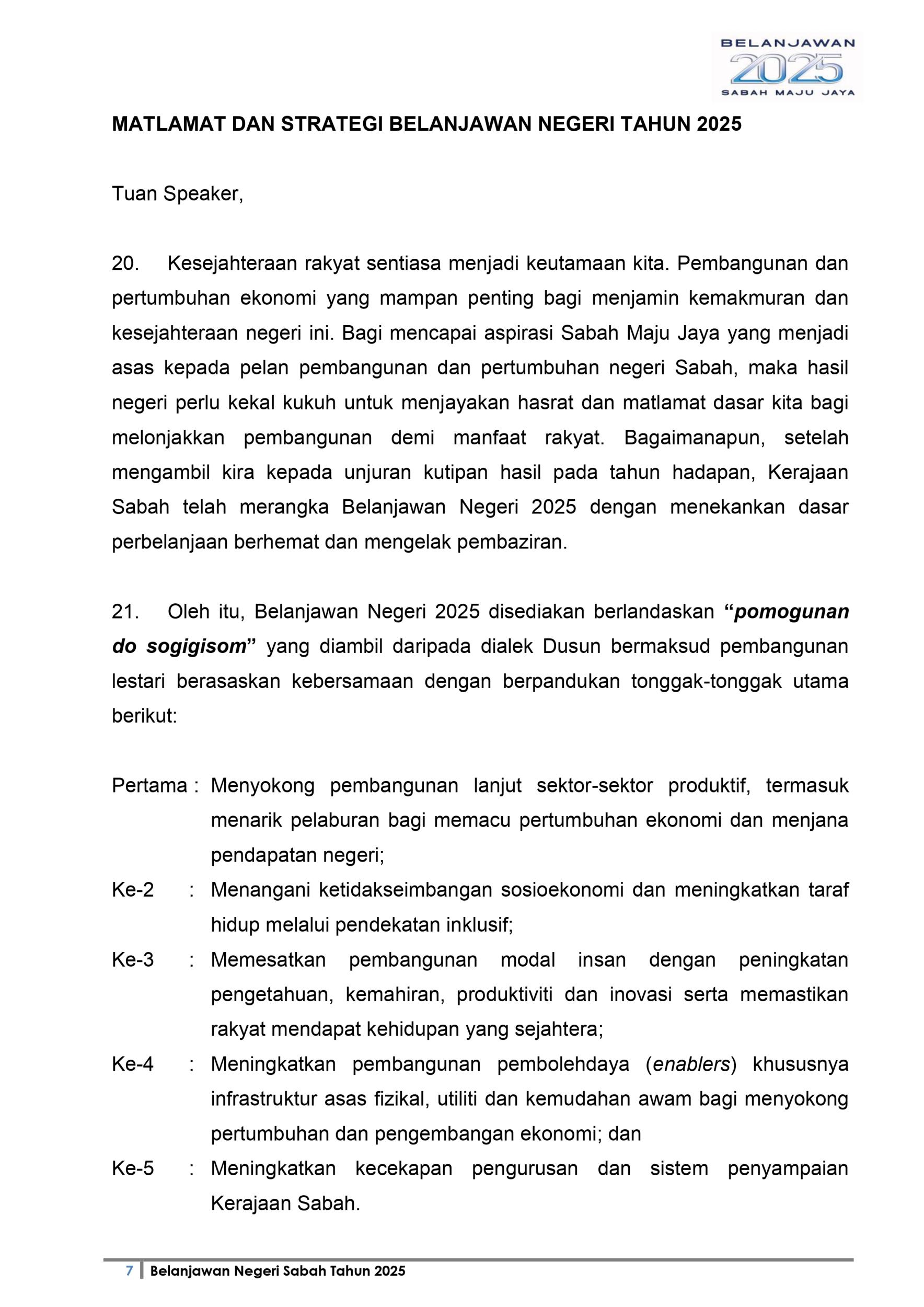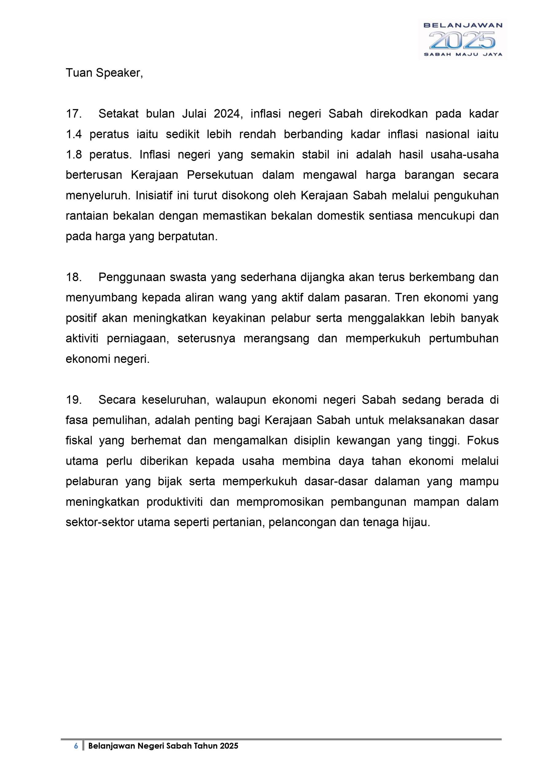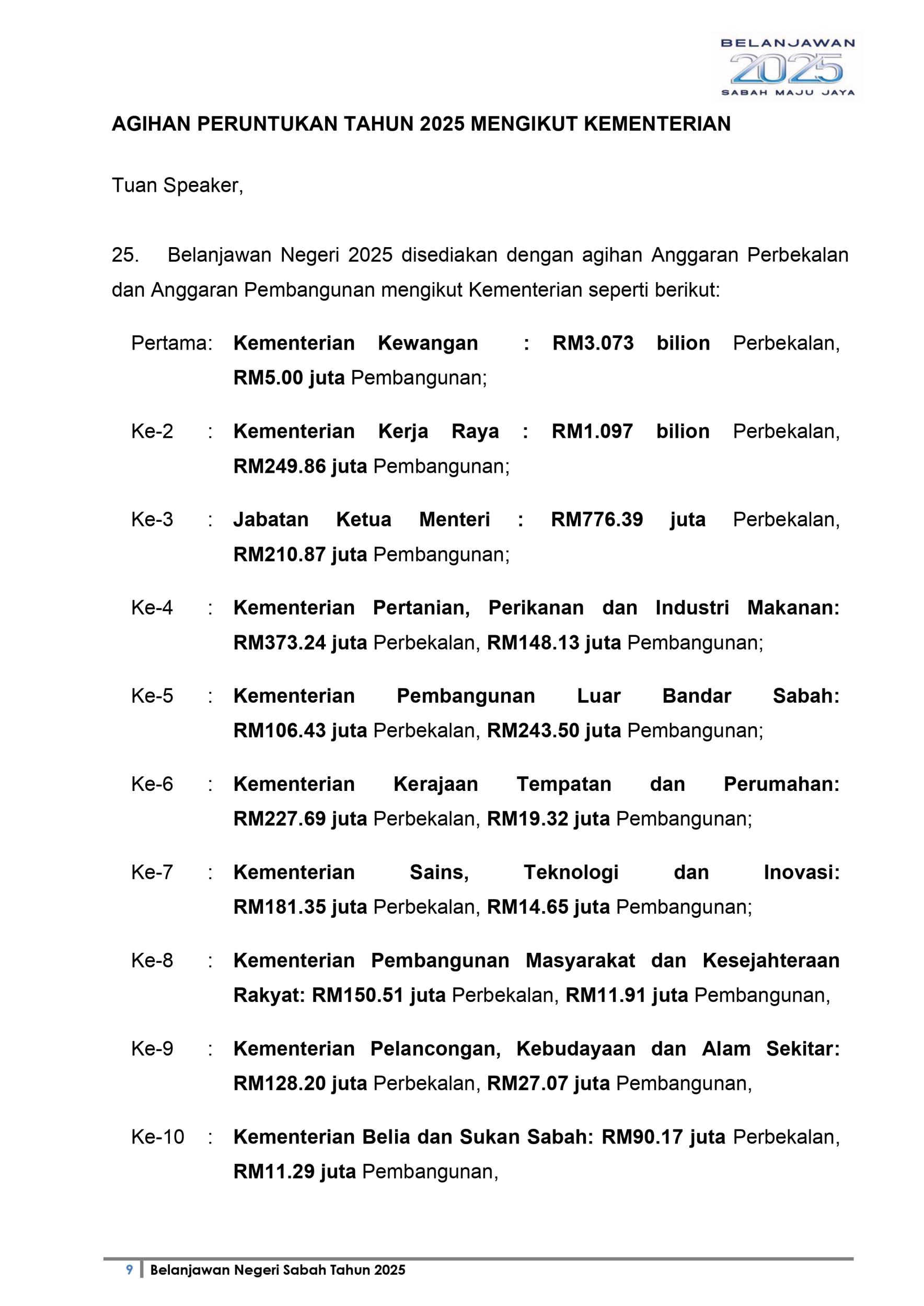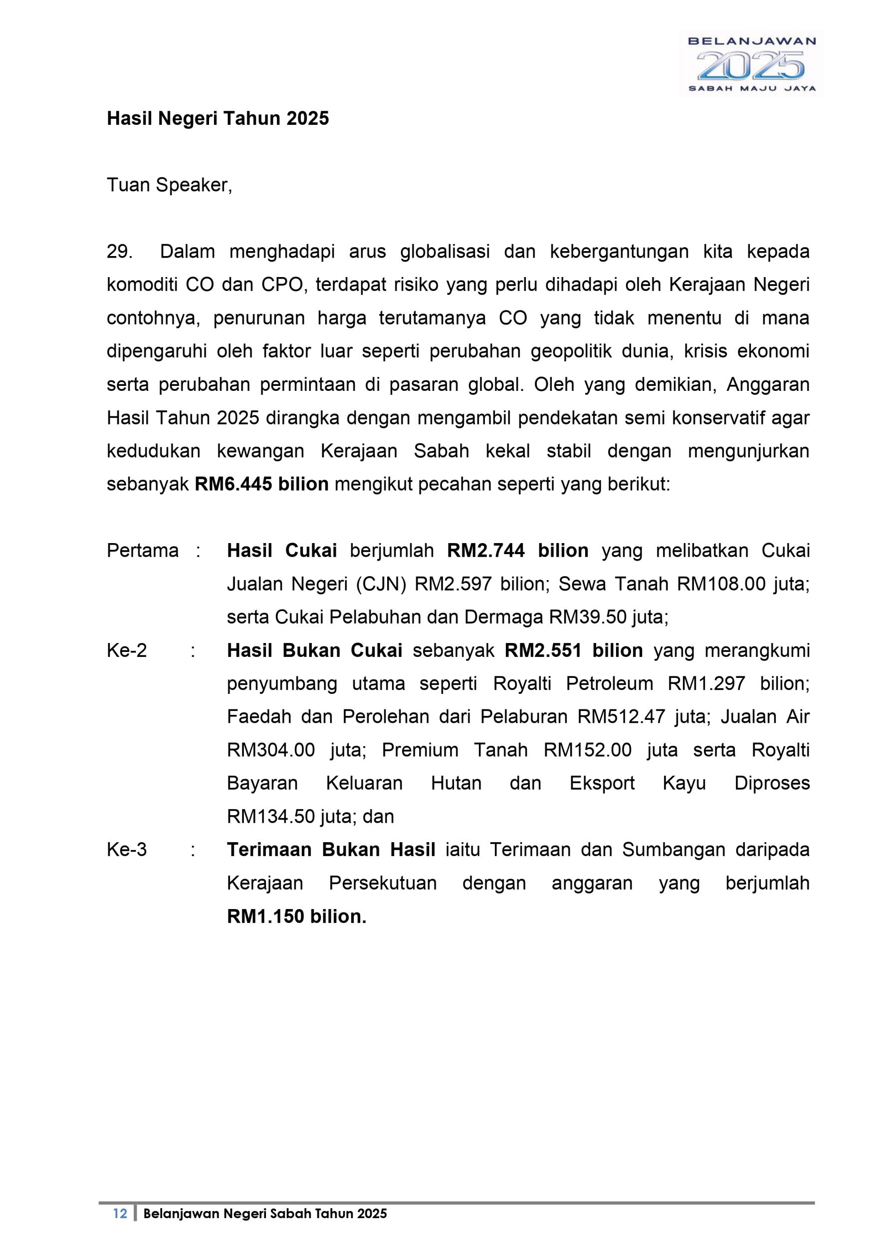 Ucapan Belanjawan Negeri Sabah 2025 (Bahasa Melayu)
