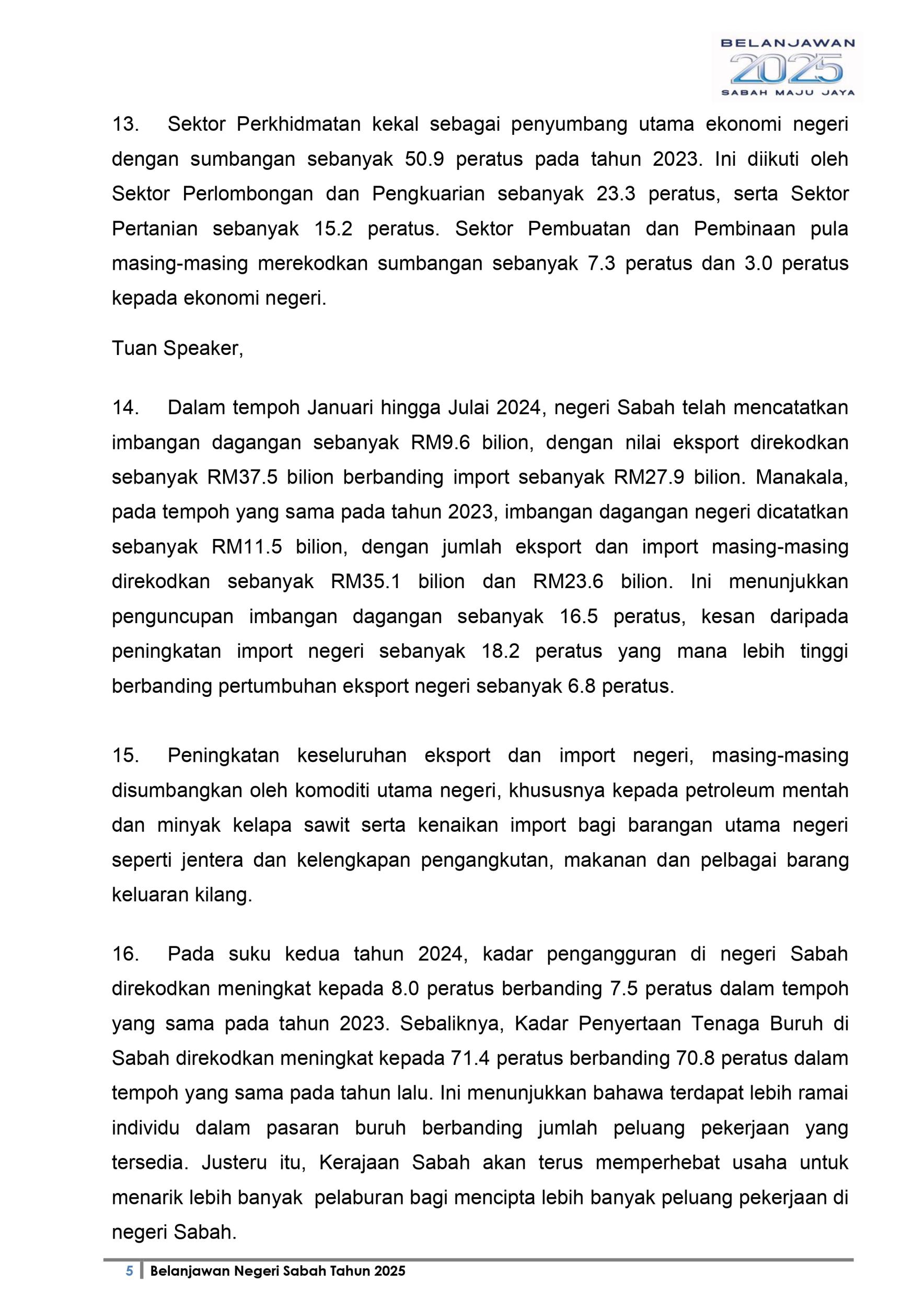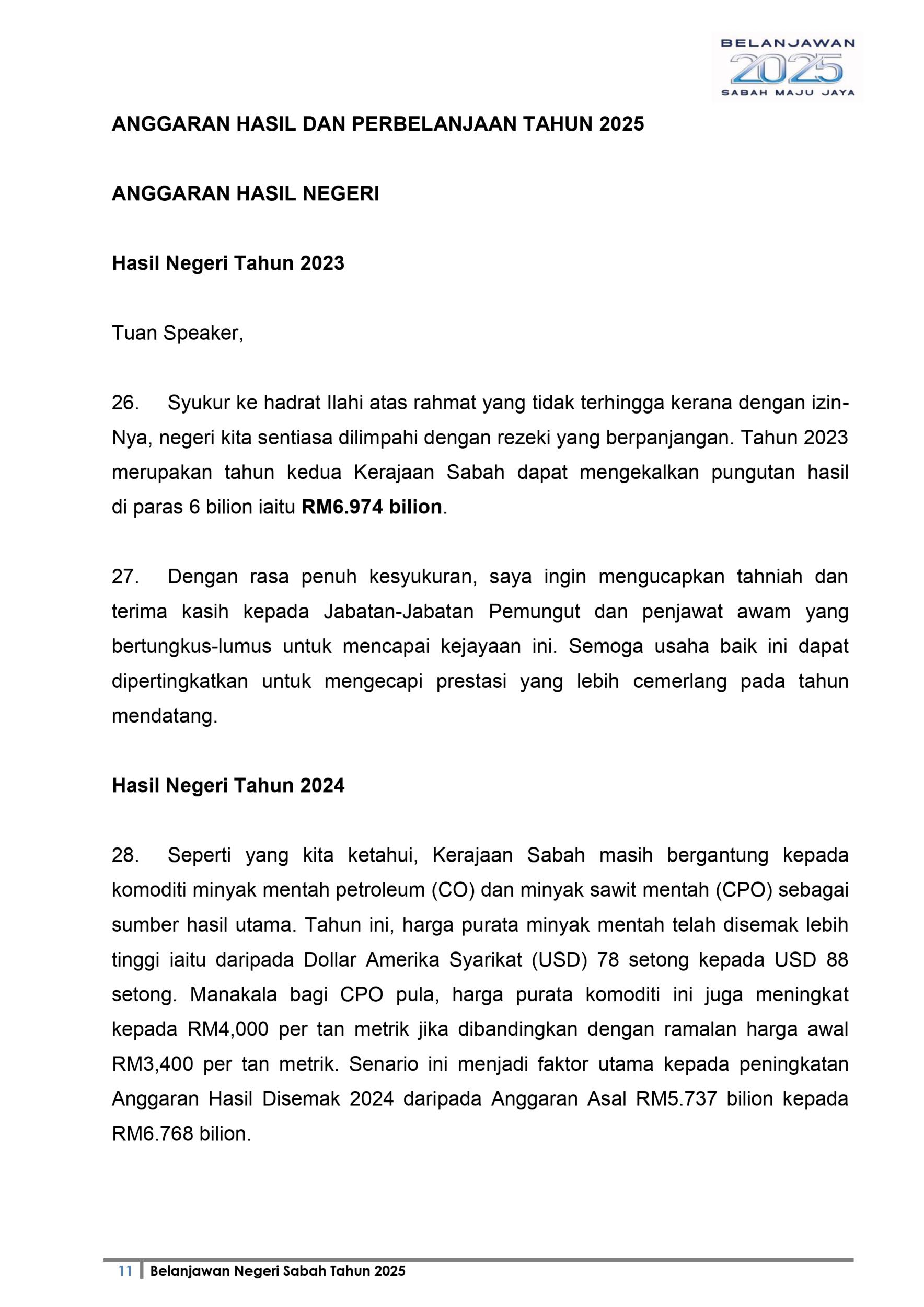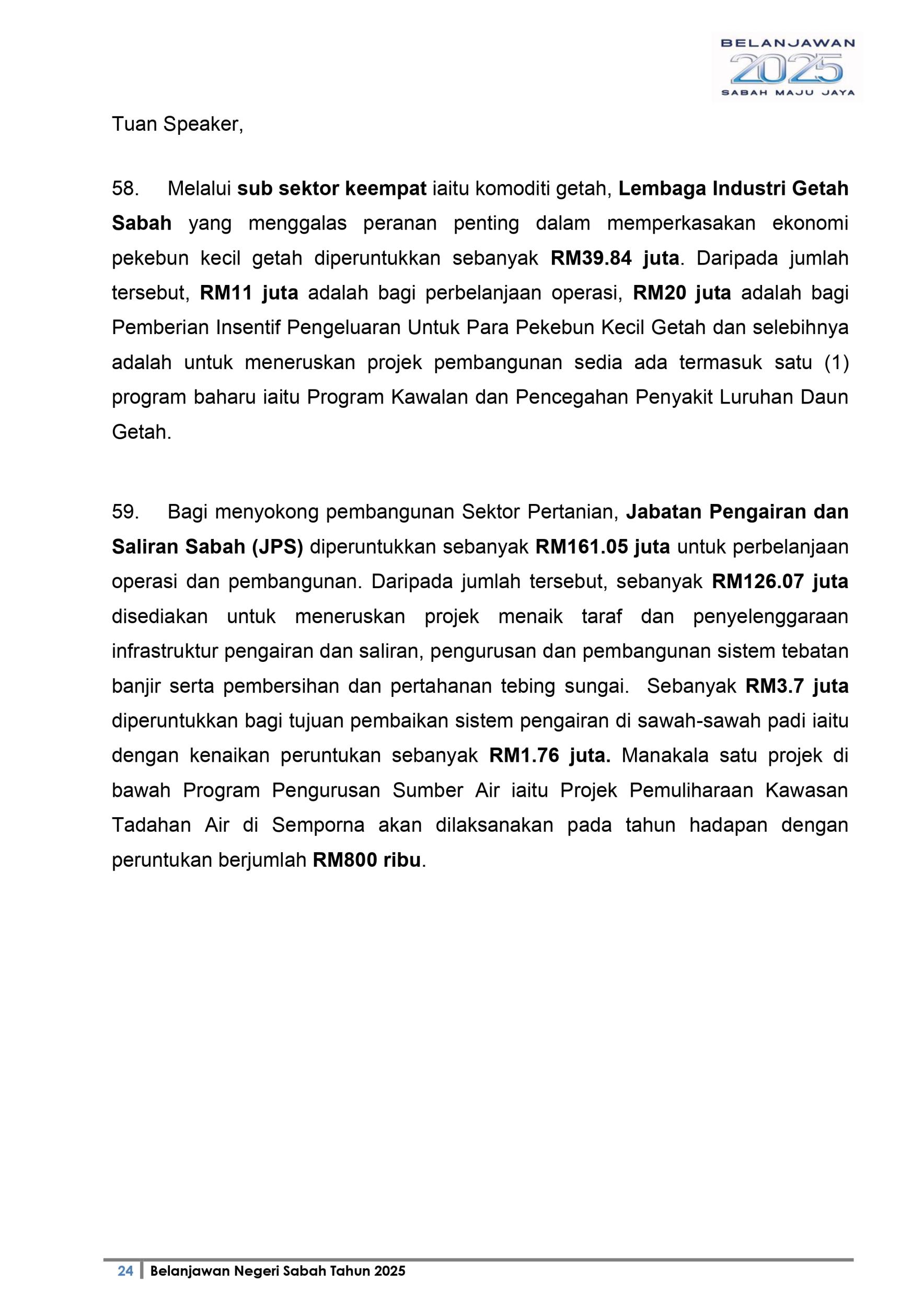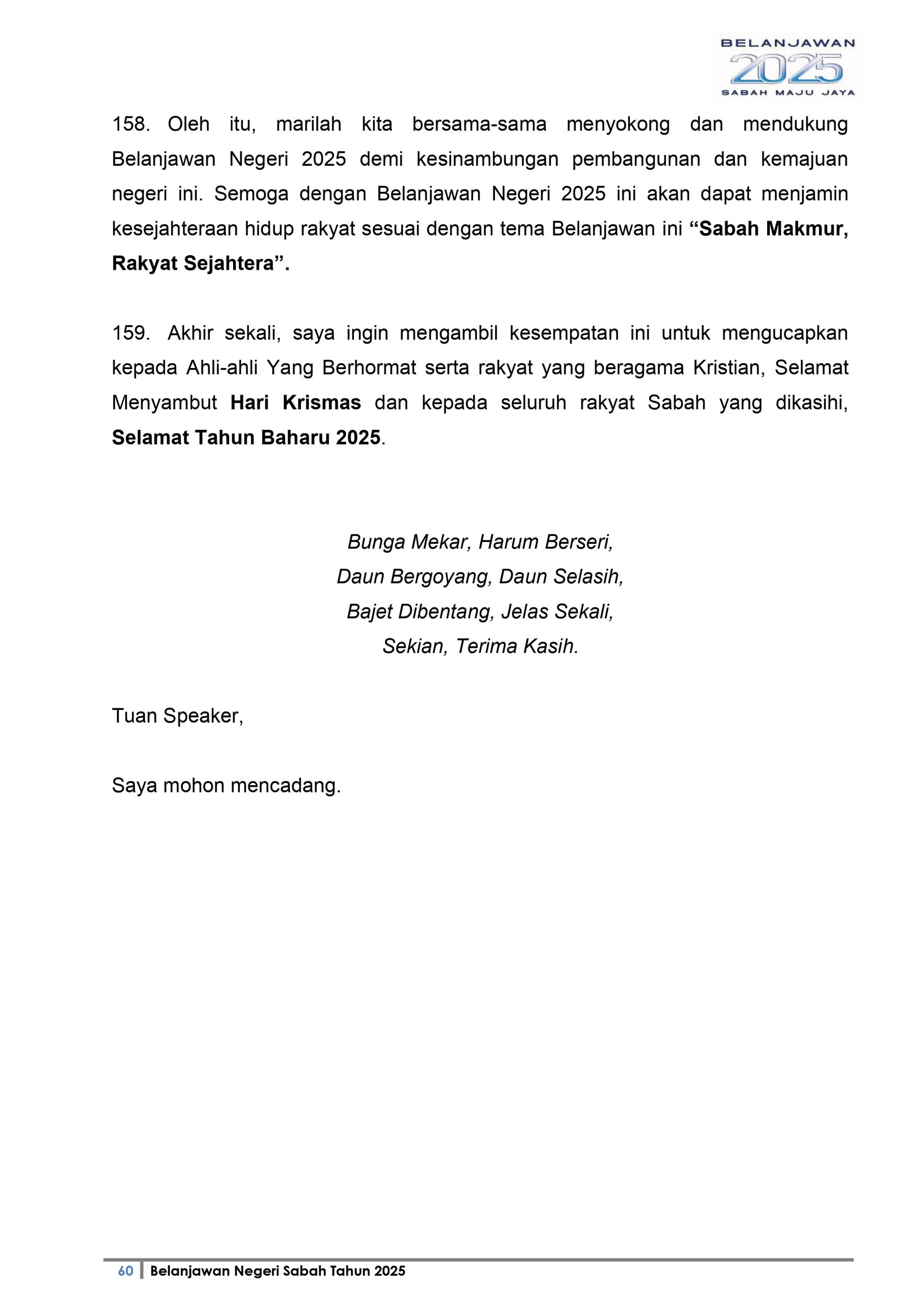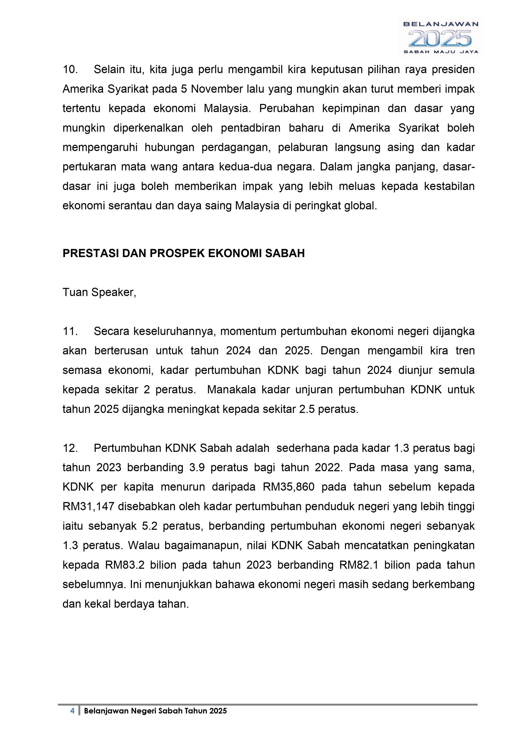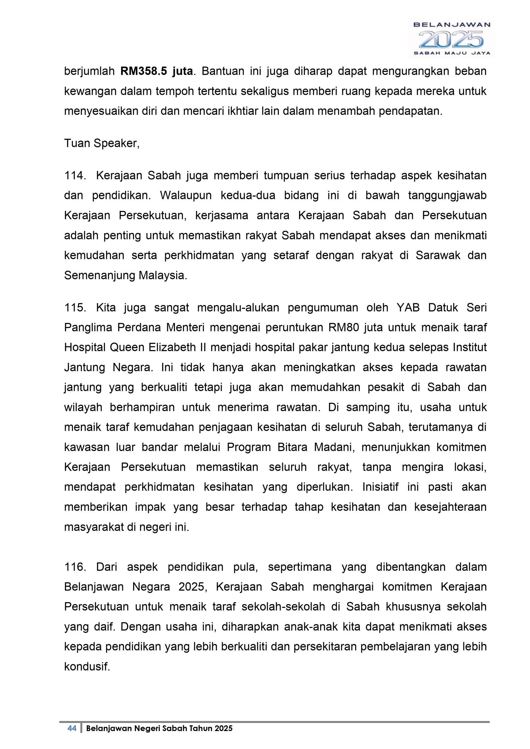 Ucapan Belanjawan Negeri Sabah 2025 (Bahasa Melayu)