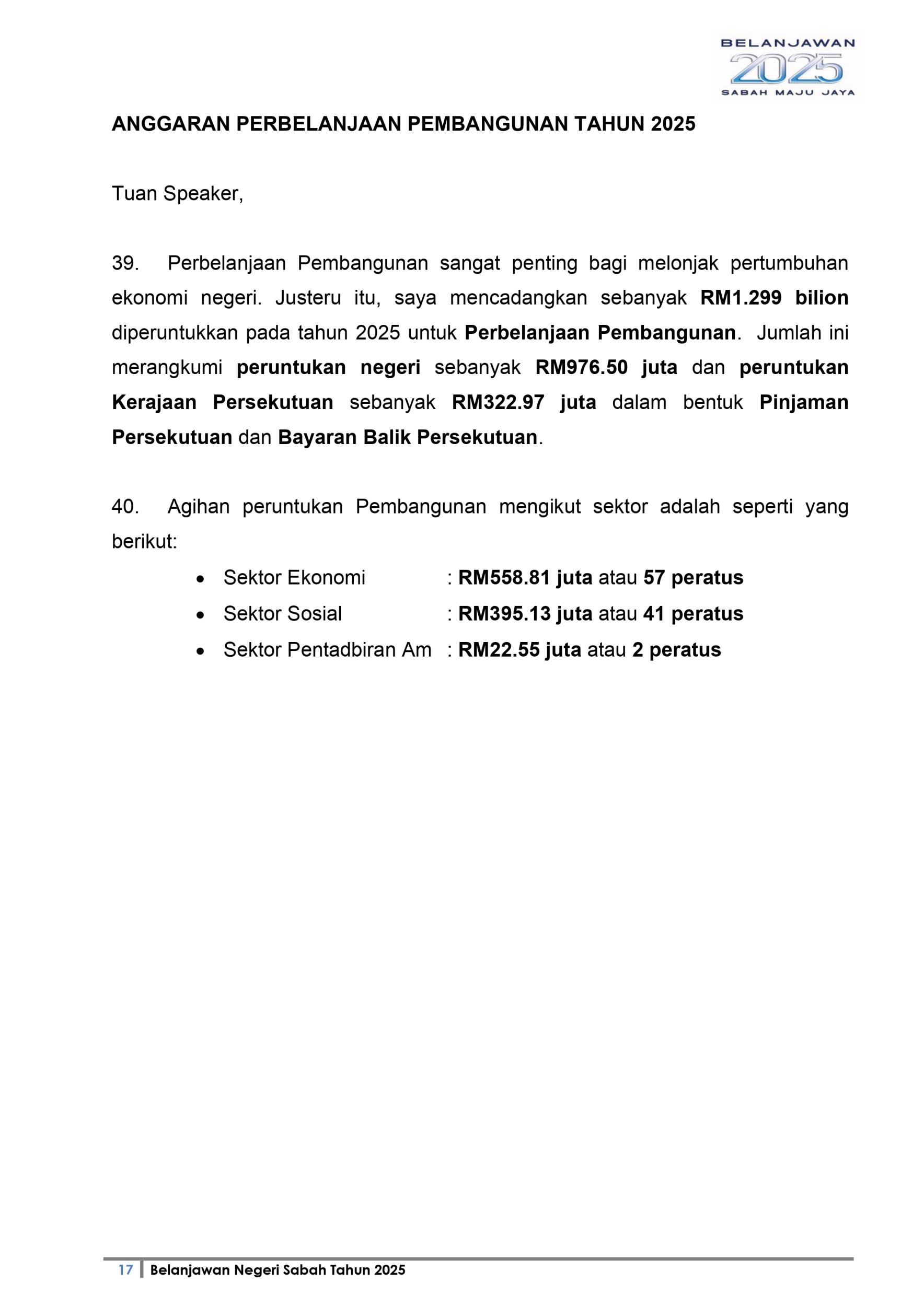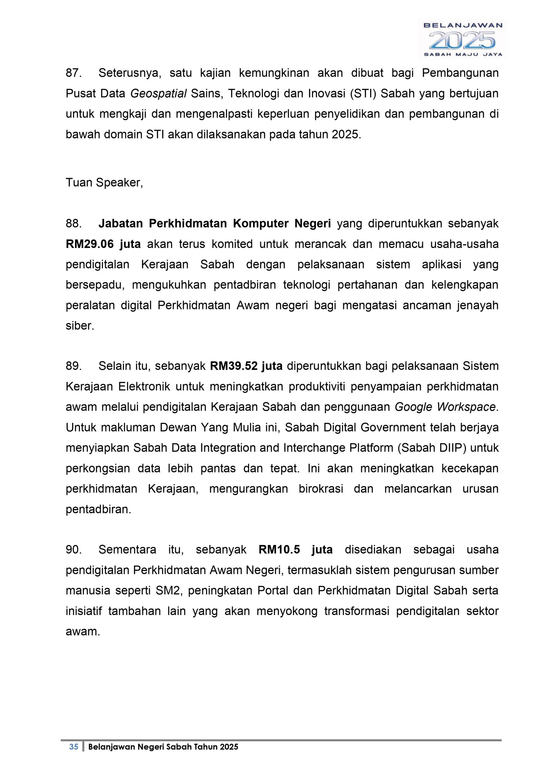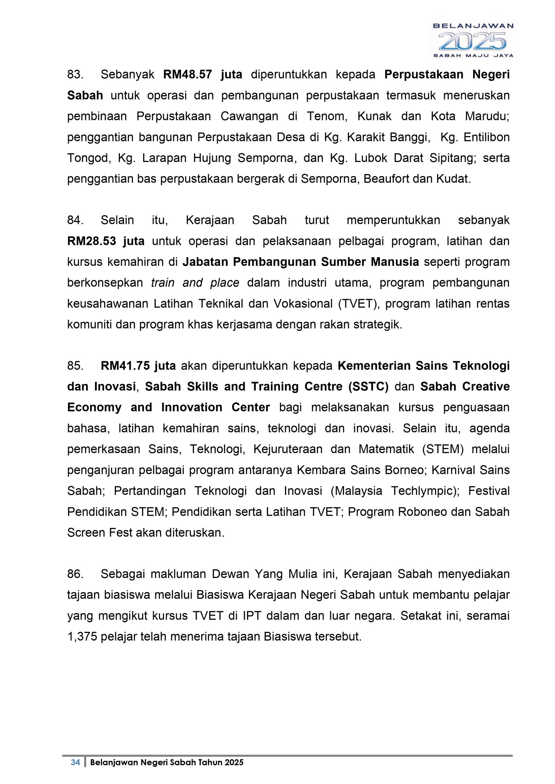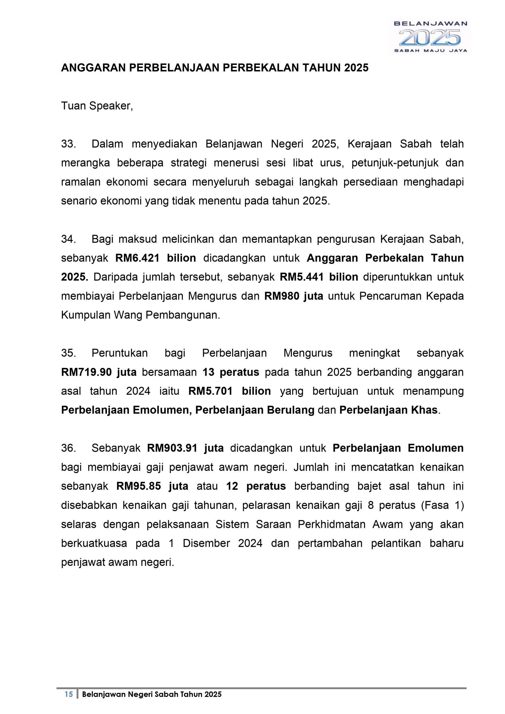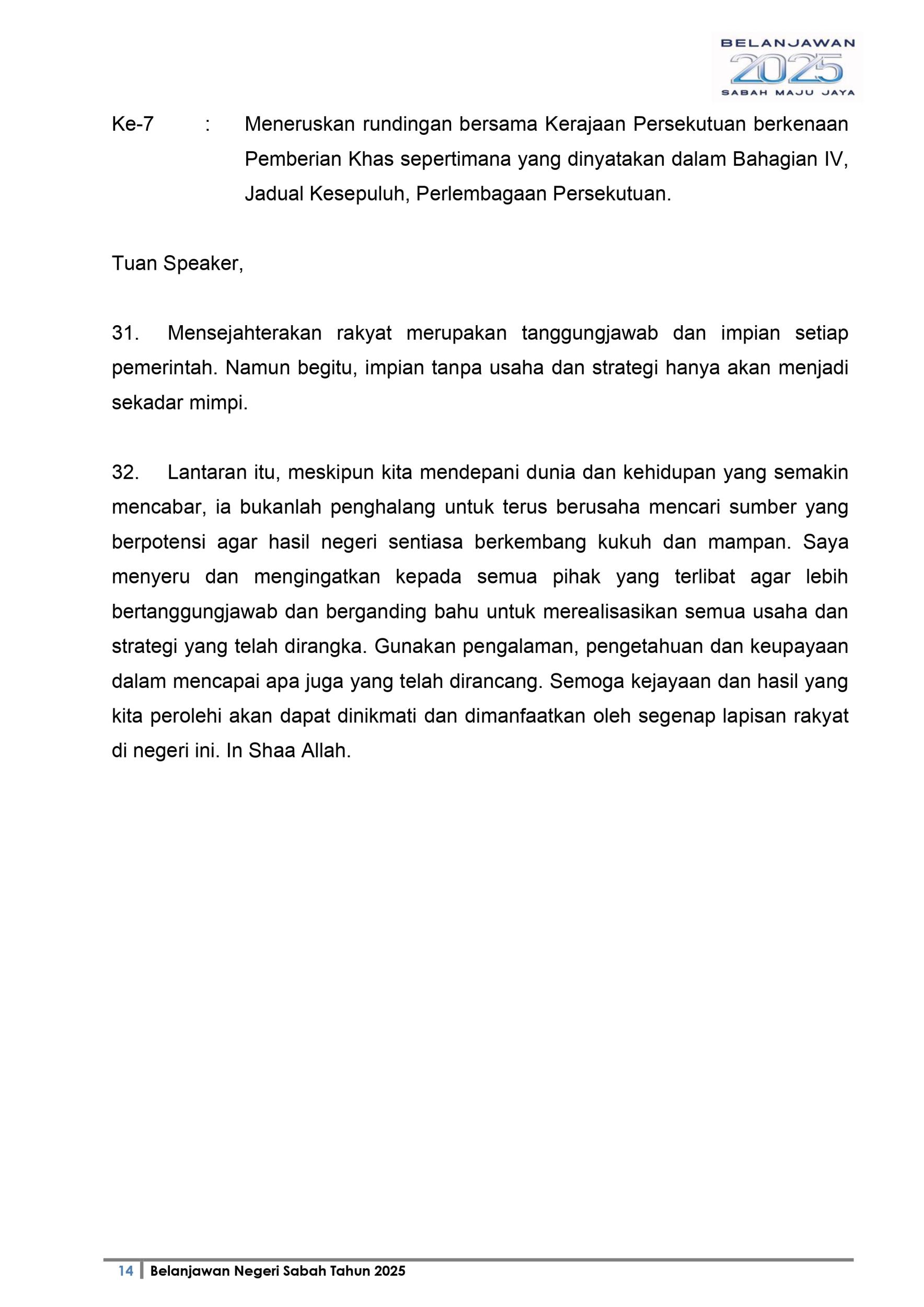 Ucapan Belanjawan Negeri Sabah 2025 (Bahasa Melayu)