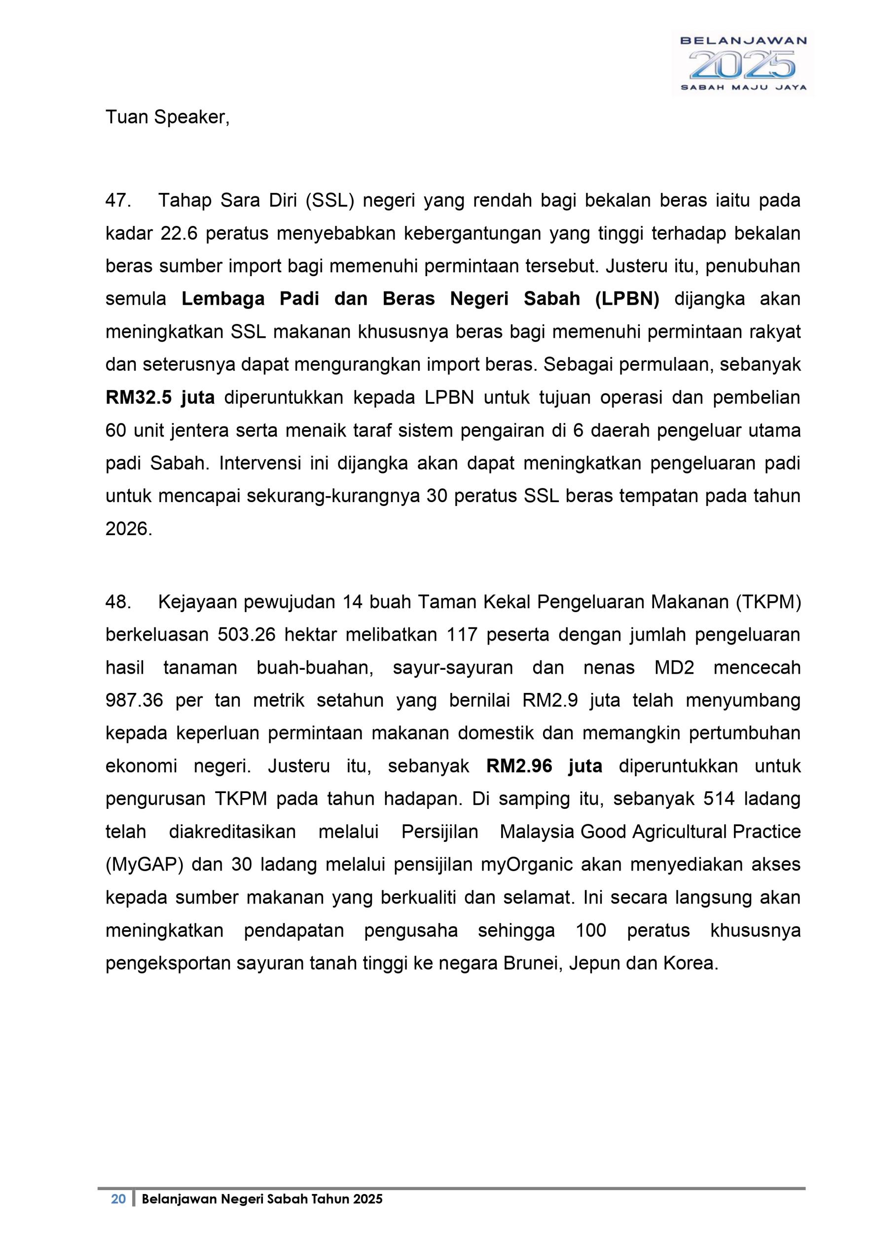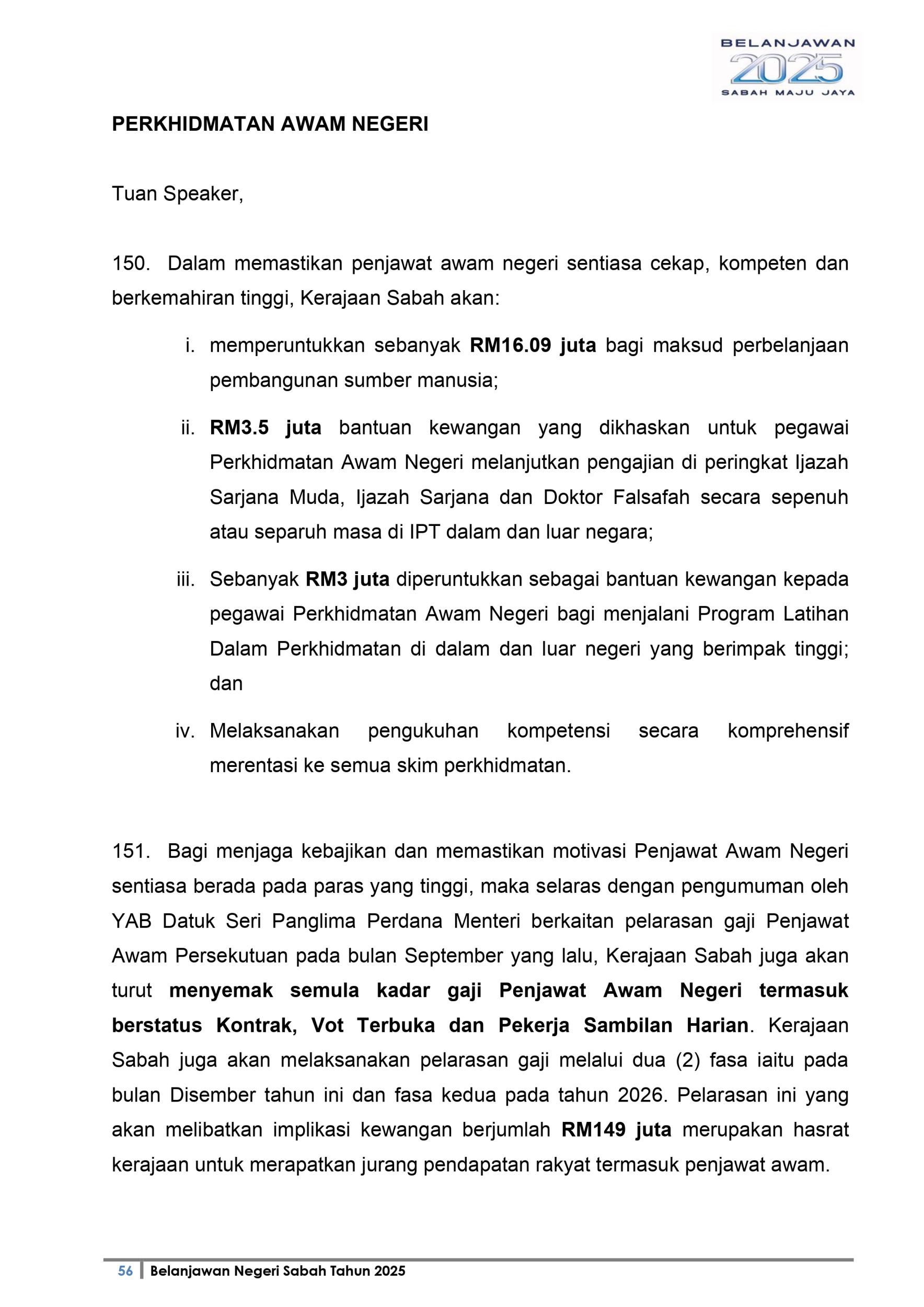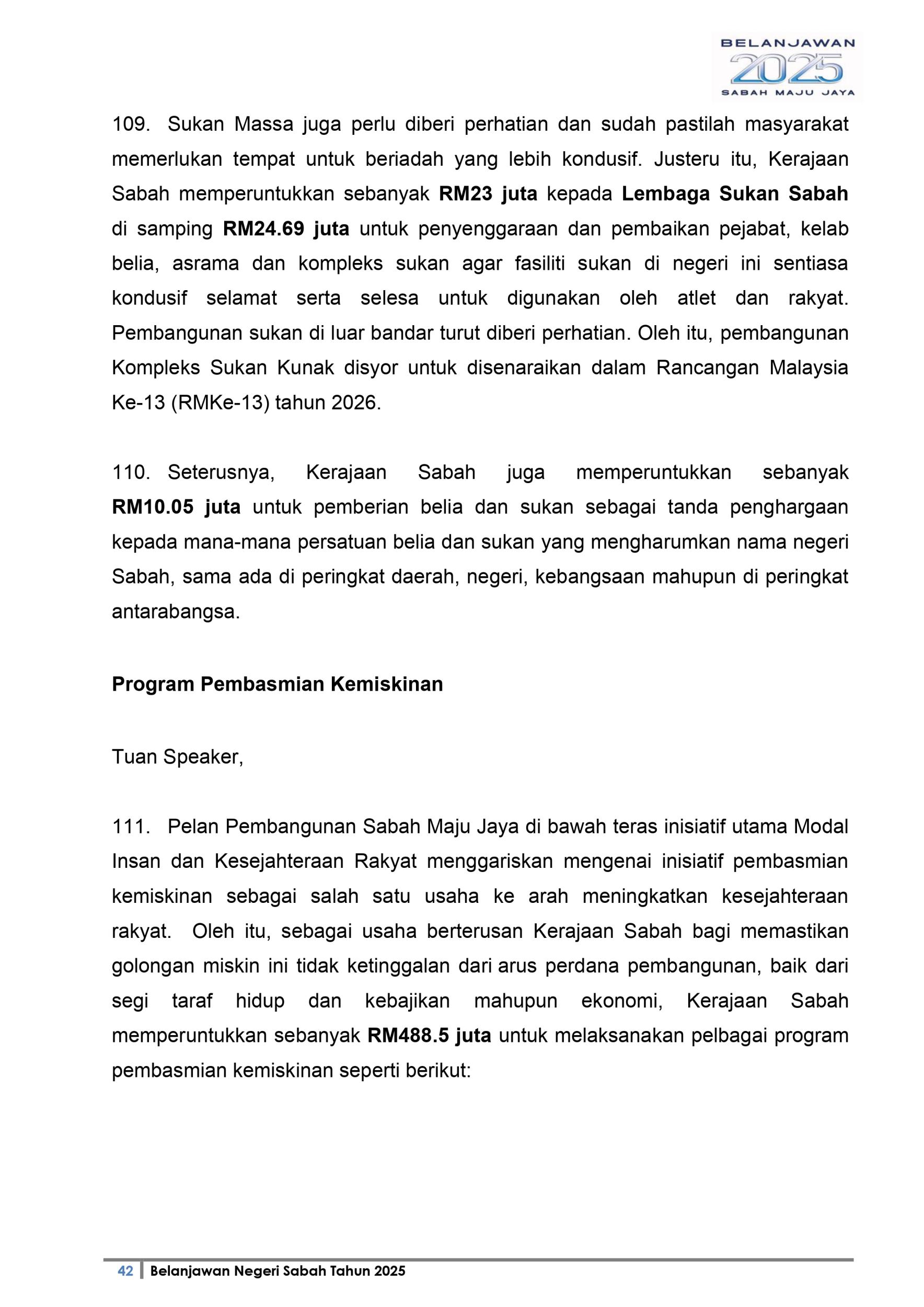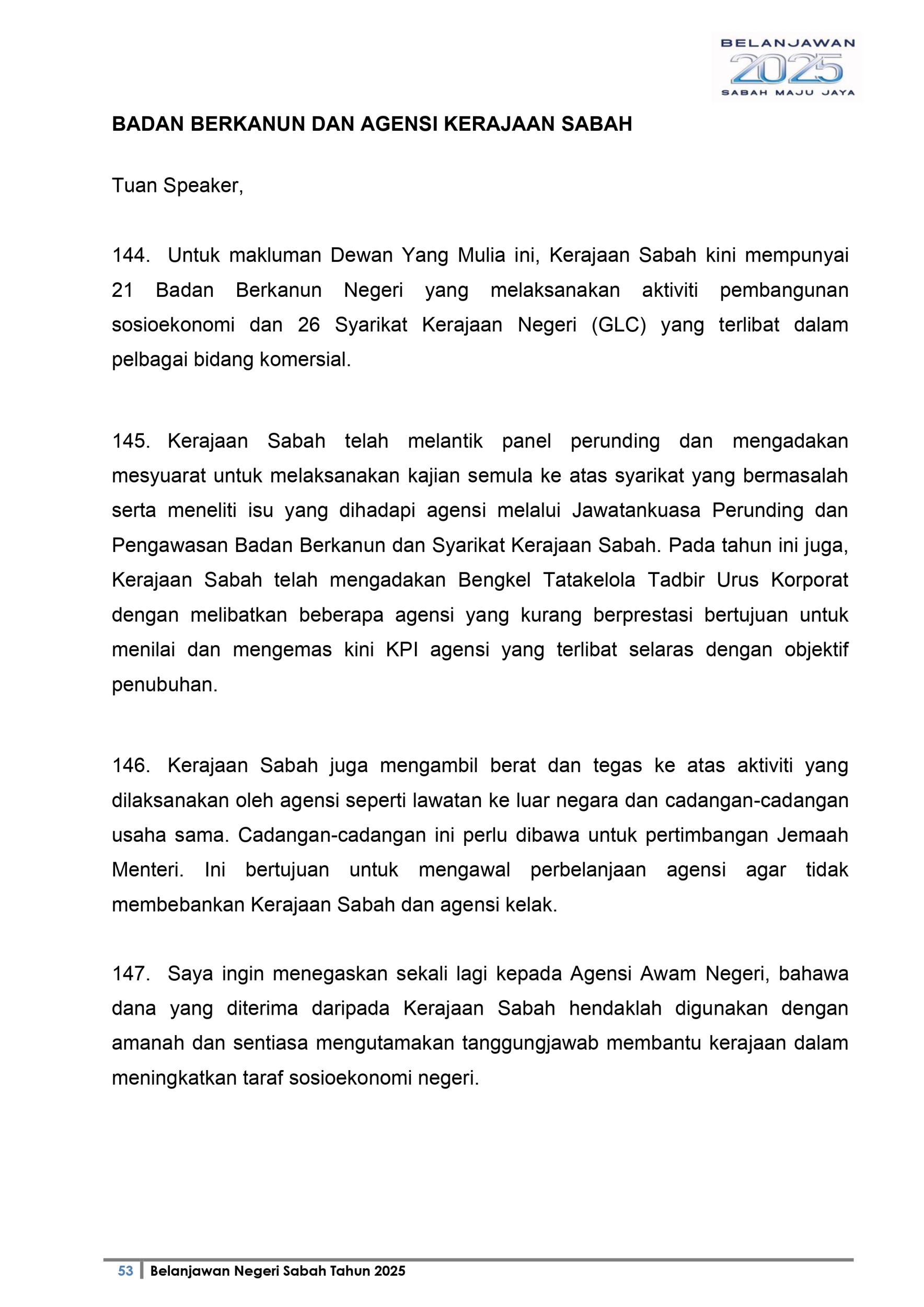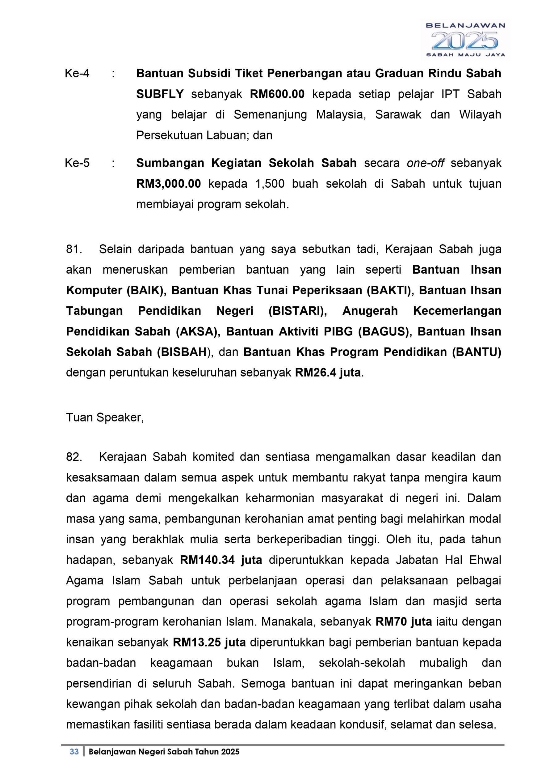 Ucapan Belanjawan Negeri Sabah 2025 (Bahasa Melayu)