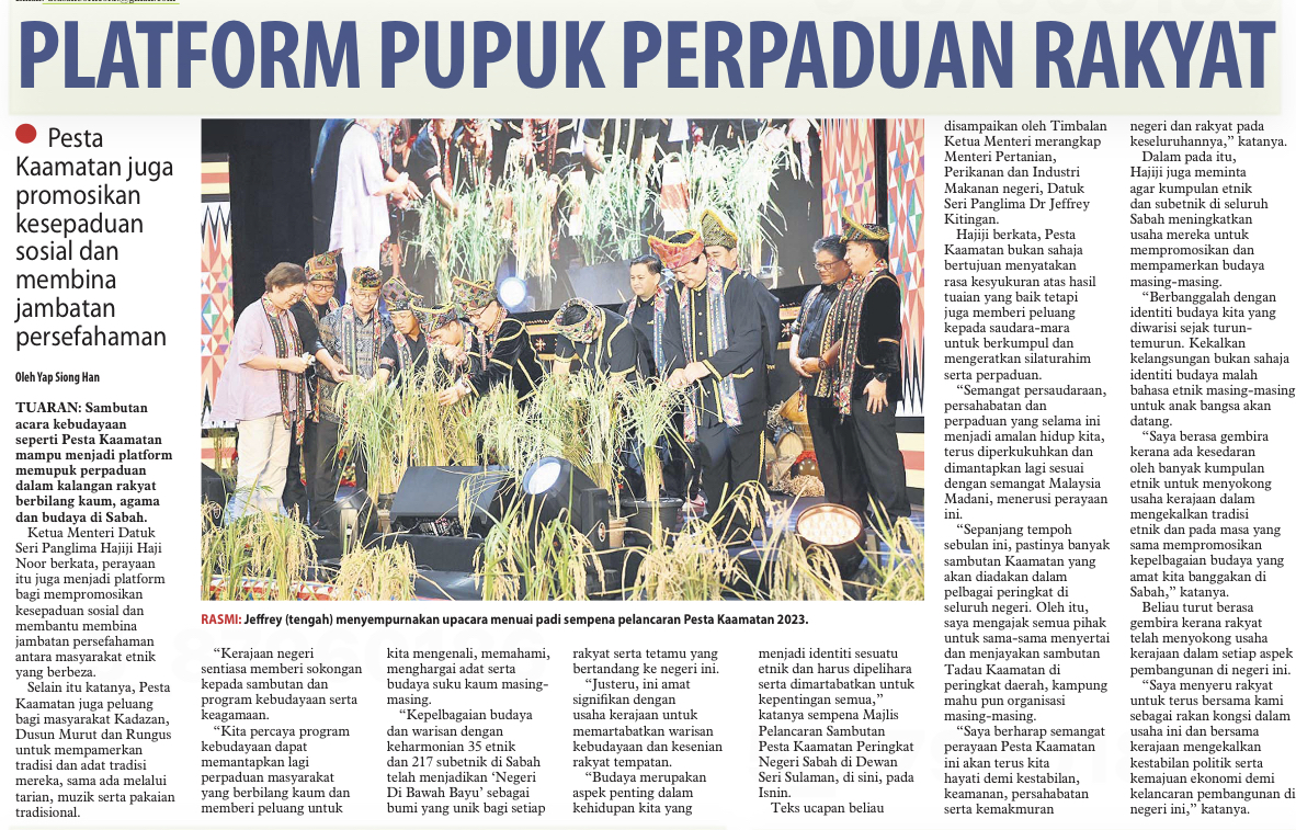 Pesta Kaamatan platform pupuk perpaduan: Hajiji
