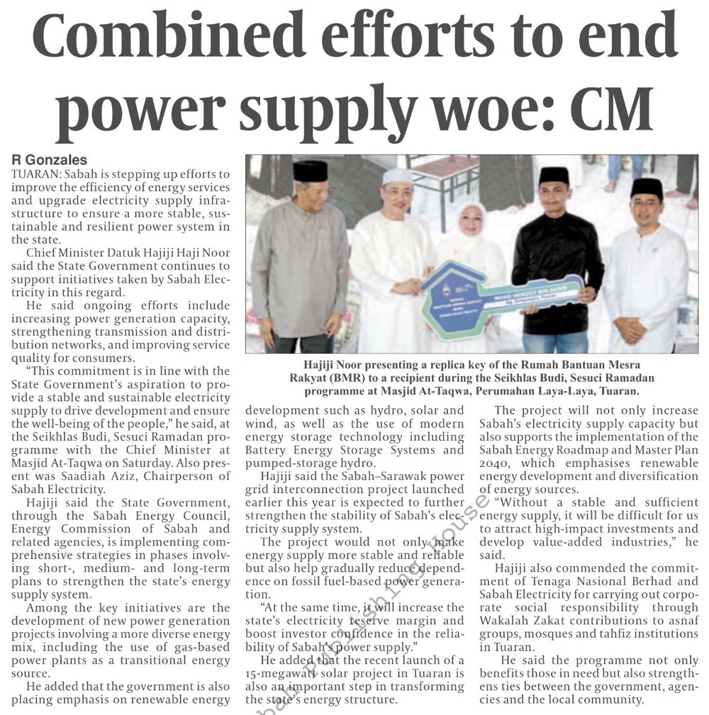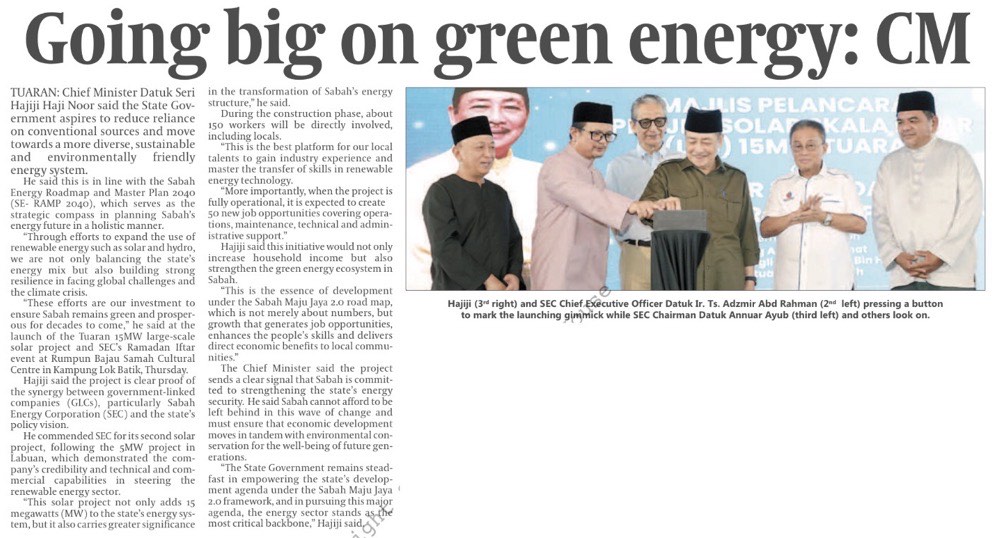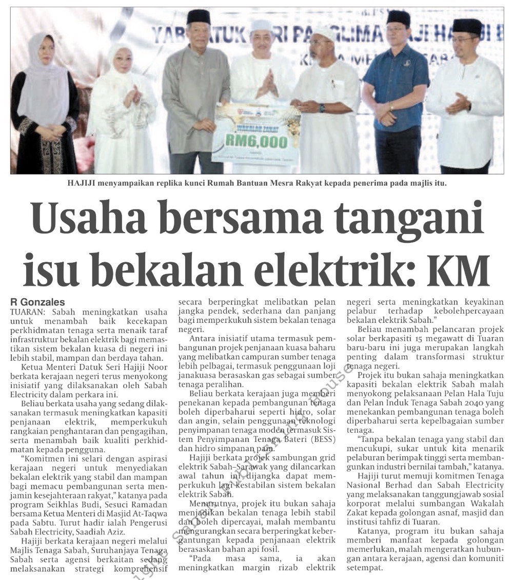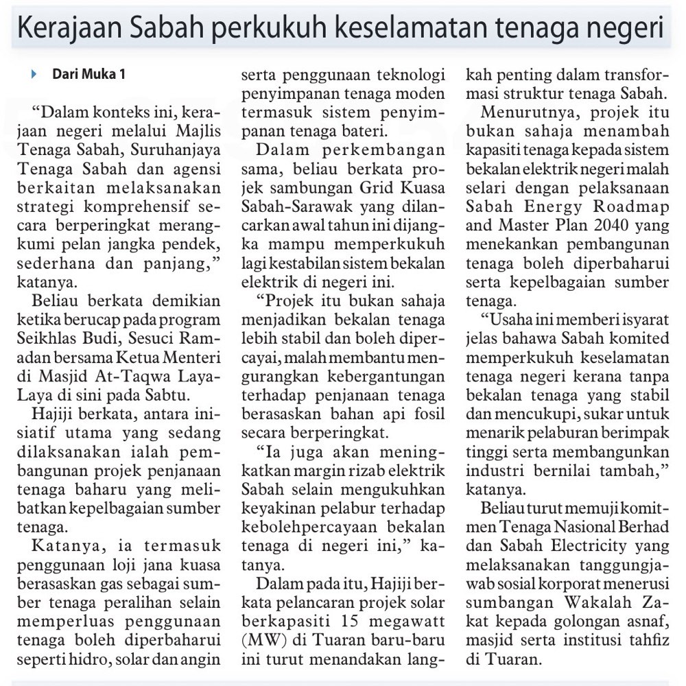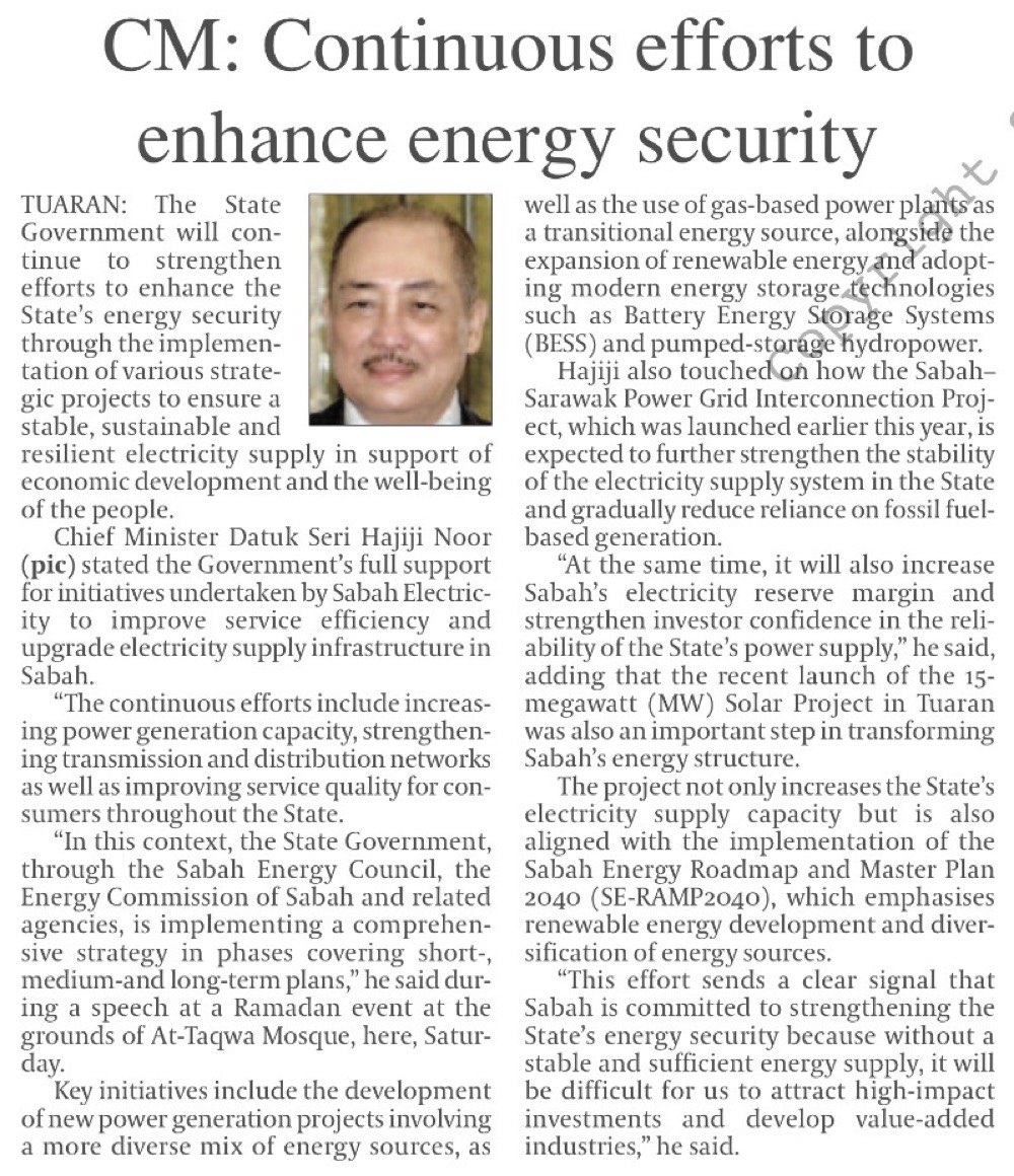 Kerajaan Sabah perkukuh keselamatan tenaga negeri (MS 2)