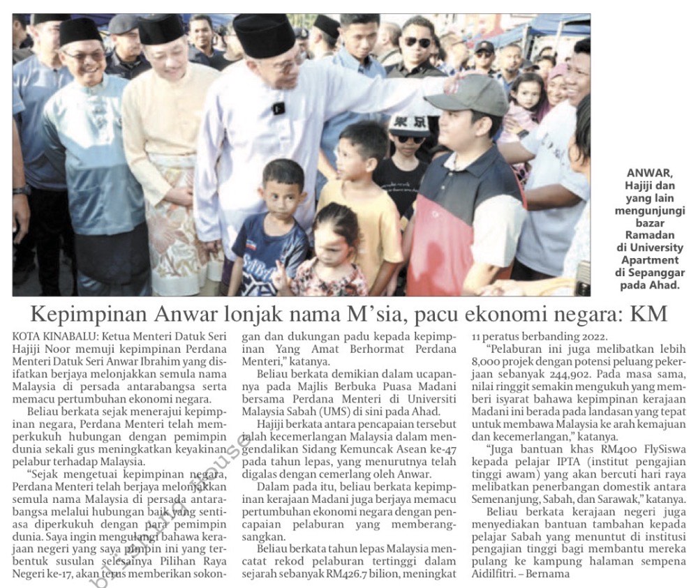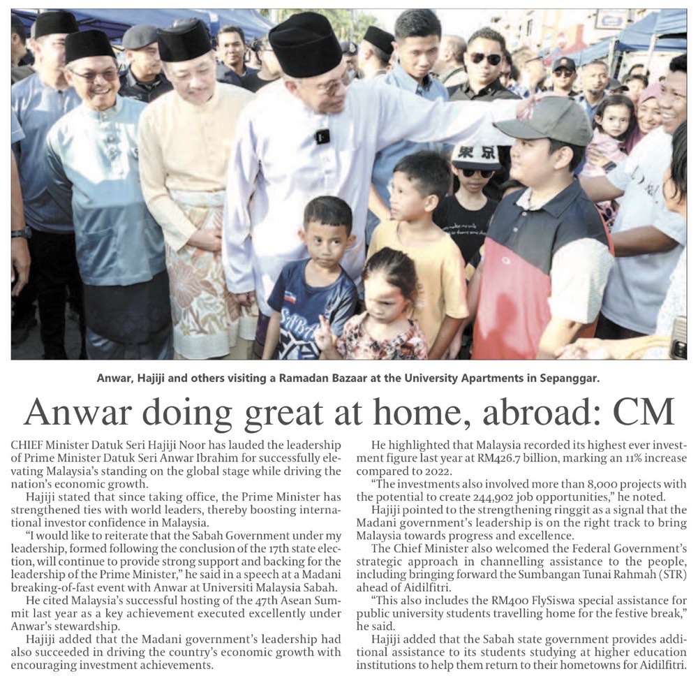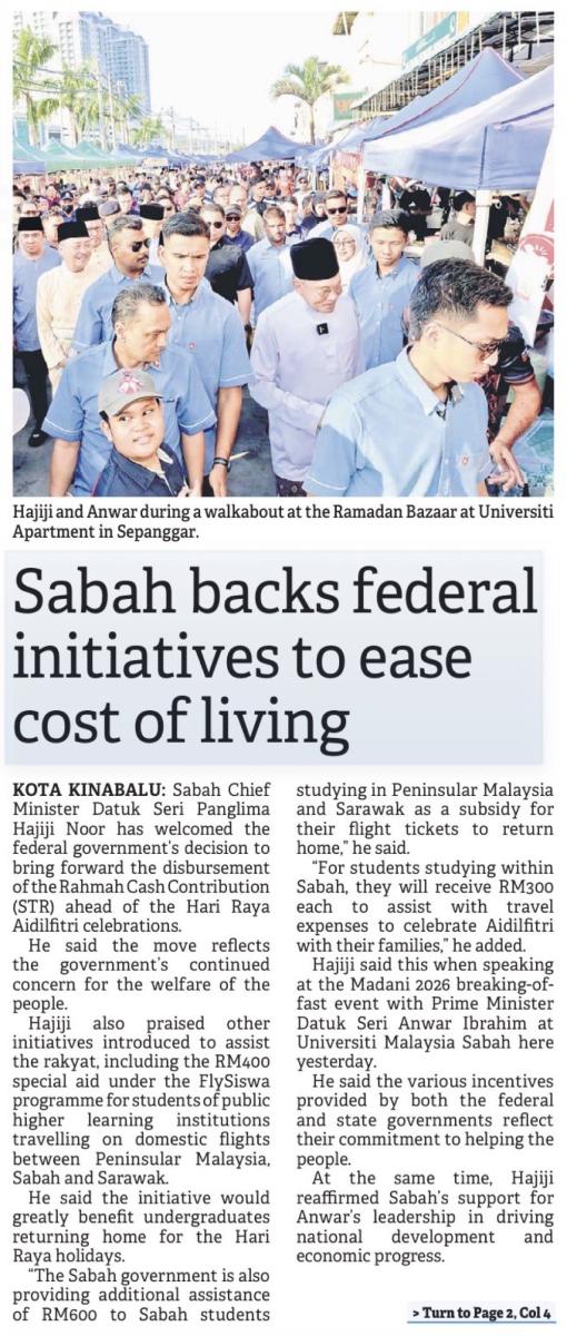 Sabah backs federal initiatives to ease cost of living (Page 1)