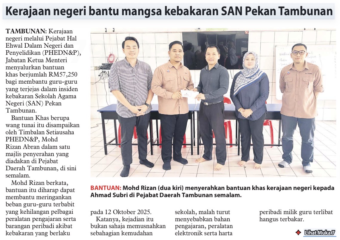 Kerajaan negeri bantu mangsa kebakaran SAN Pekan Tambunan (MS 1)