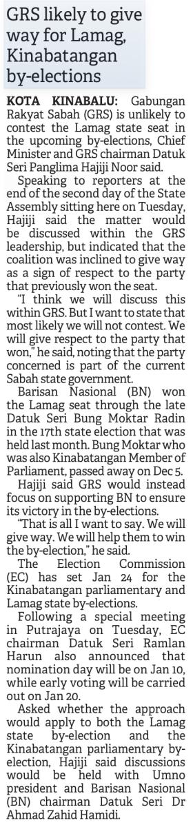 GRS likely to give way for Lamag, Kinabatangan by-elections