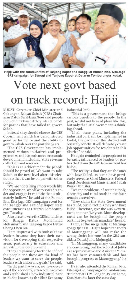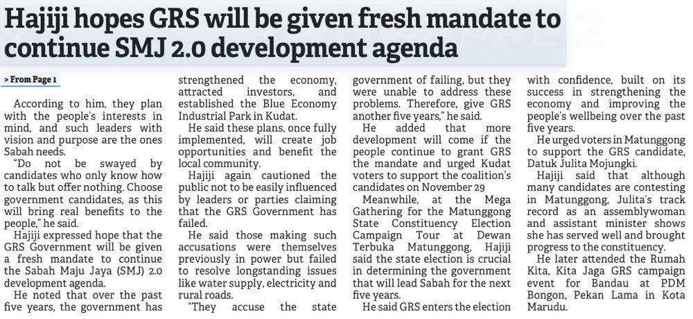 Undi untuk kesinambungan dan kemajuan Sabah: Hajiji