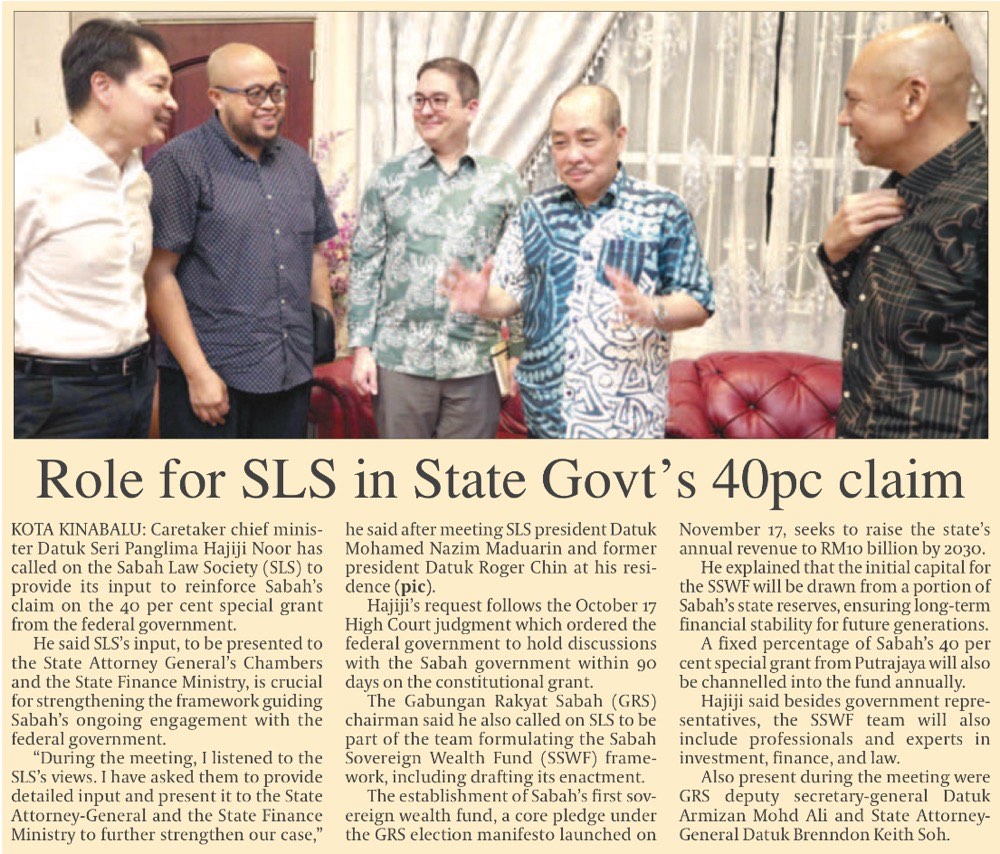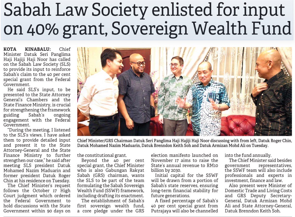 Sabah Law Society enlisted for input on 40% grant, Sovereign Wealth Fund