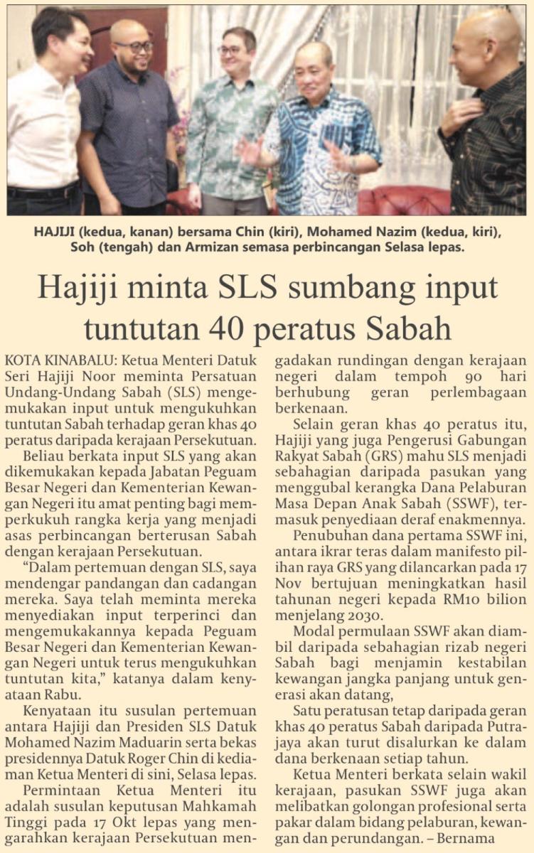 Hajiji minta SLS sumbang input tuntutan 40 peratus Sabah