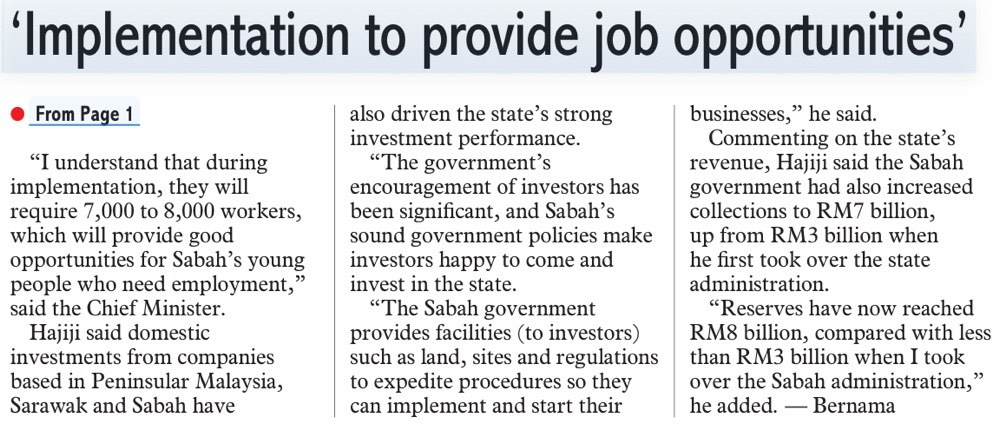 Sabah's economic position, investment performance remain strong over past five years — Hajiji (Page 2)