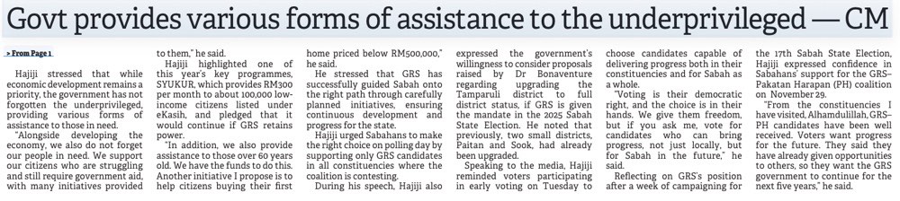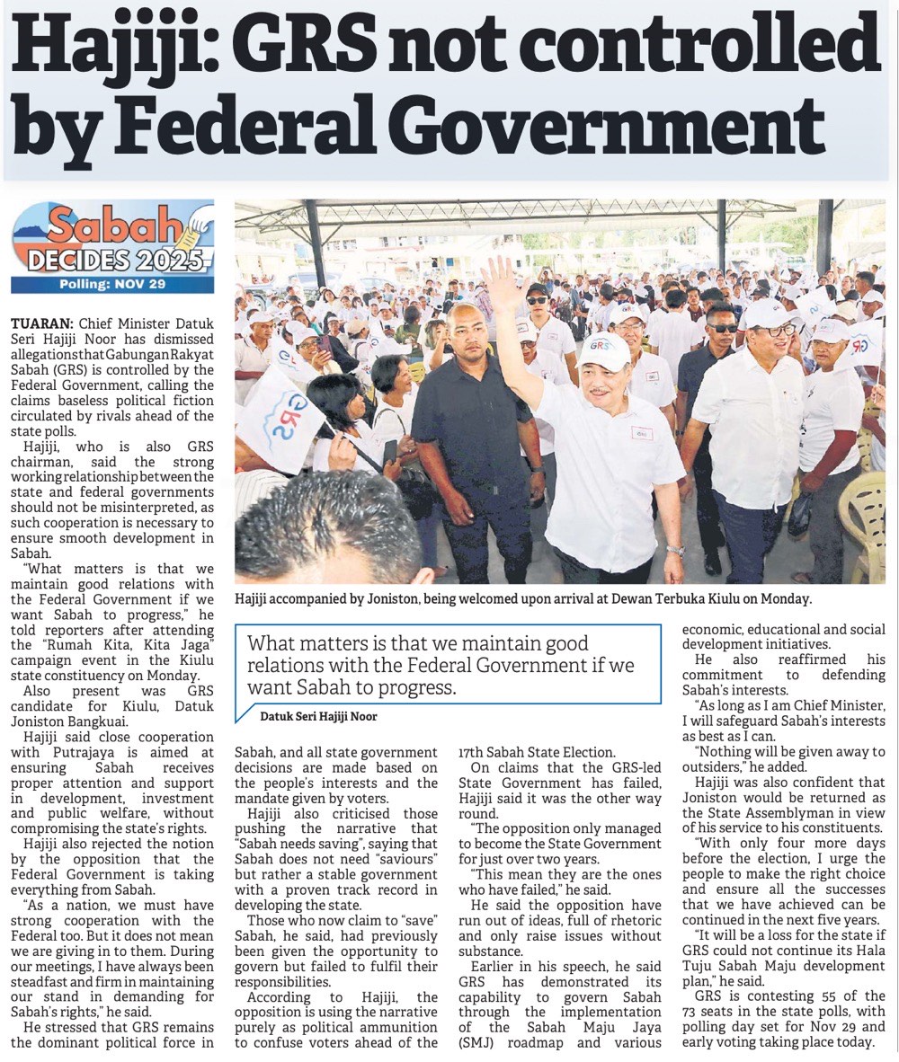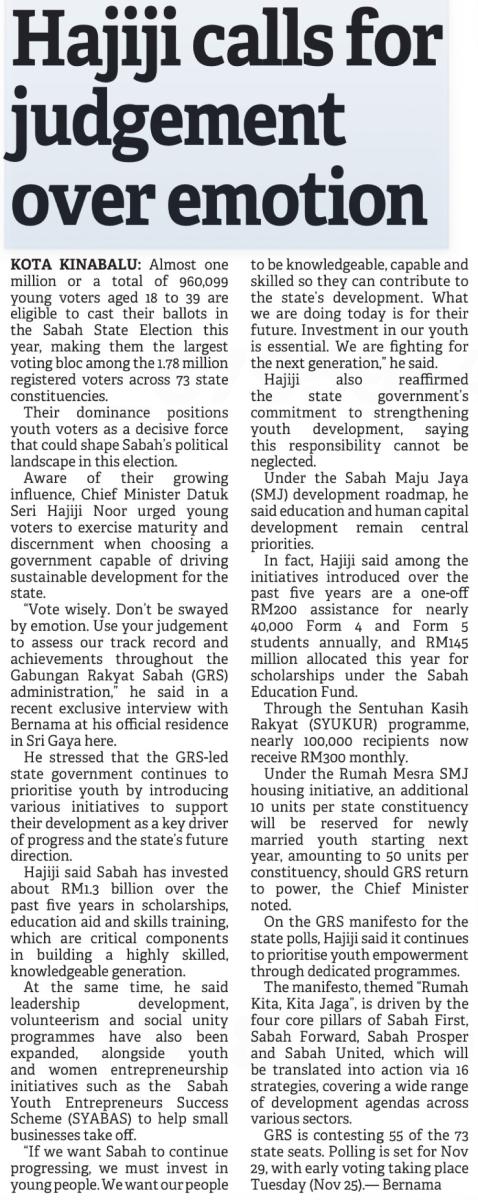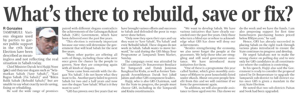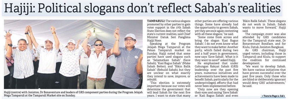 Hajiji: Political slogans don't reflect Sabah's realities (Page 1)