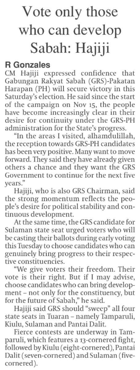 Vote only those who can develop Sabah: Hajiji