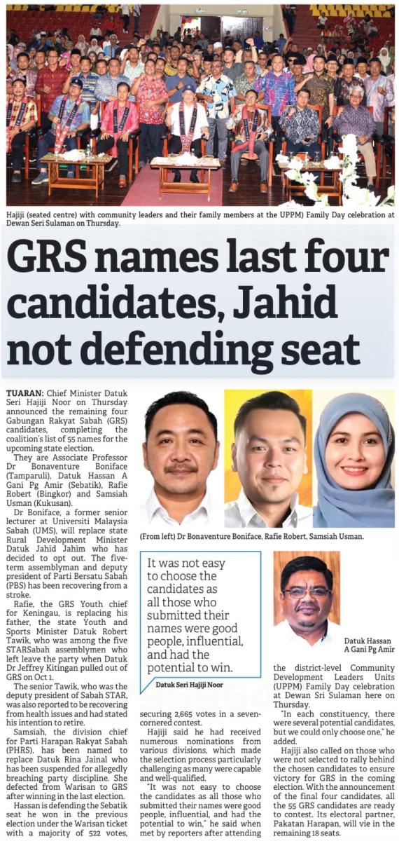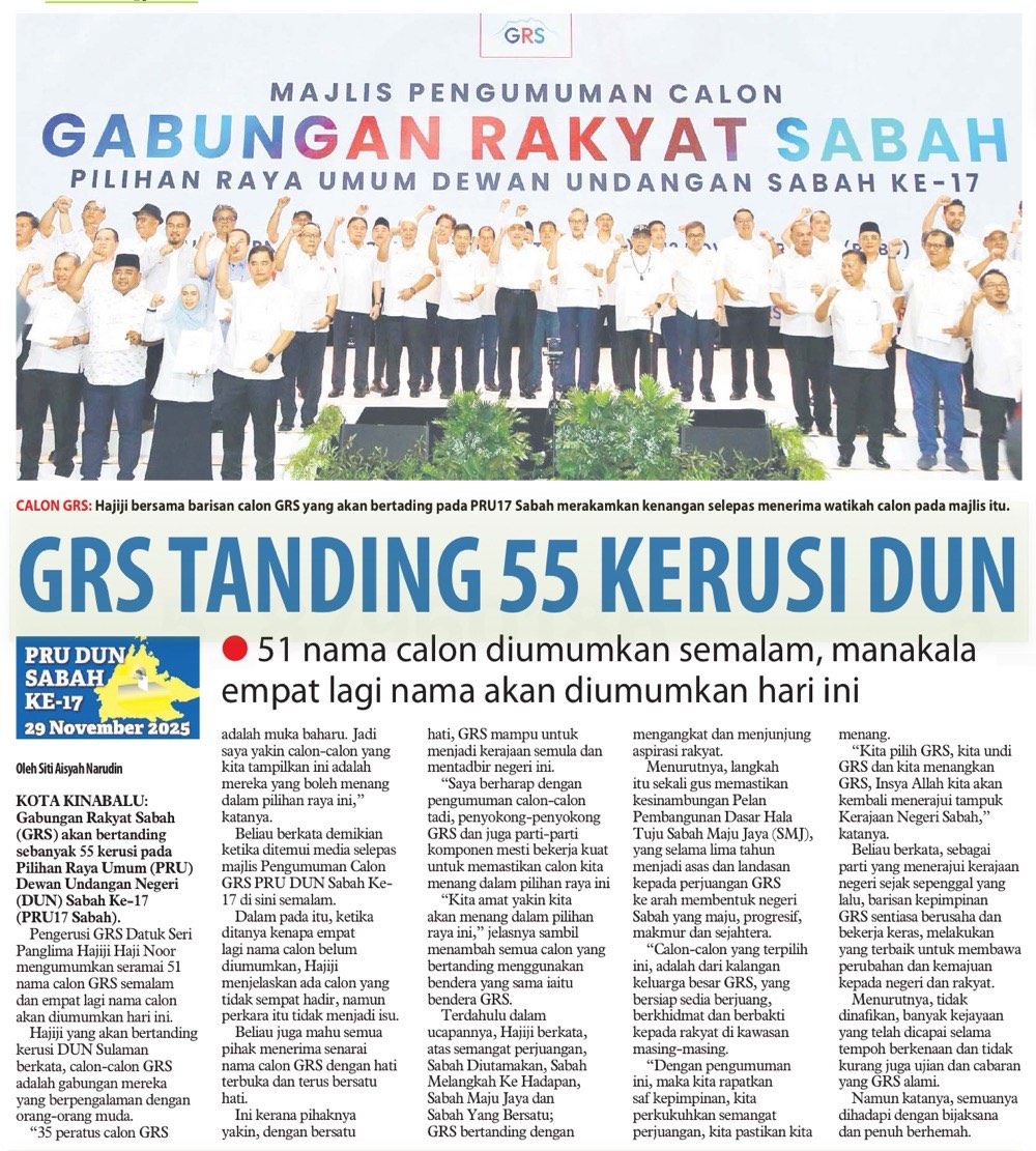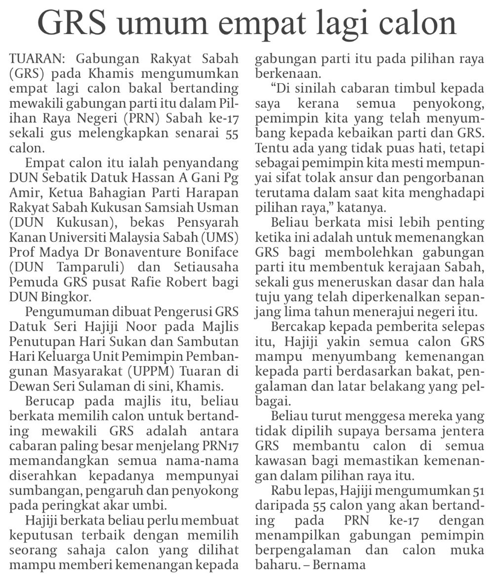Ahli Gagasan Rakyat, GRS tanding Bebas akan dipecat