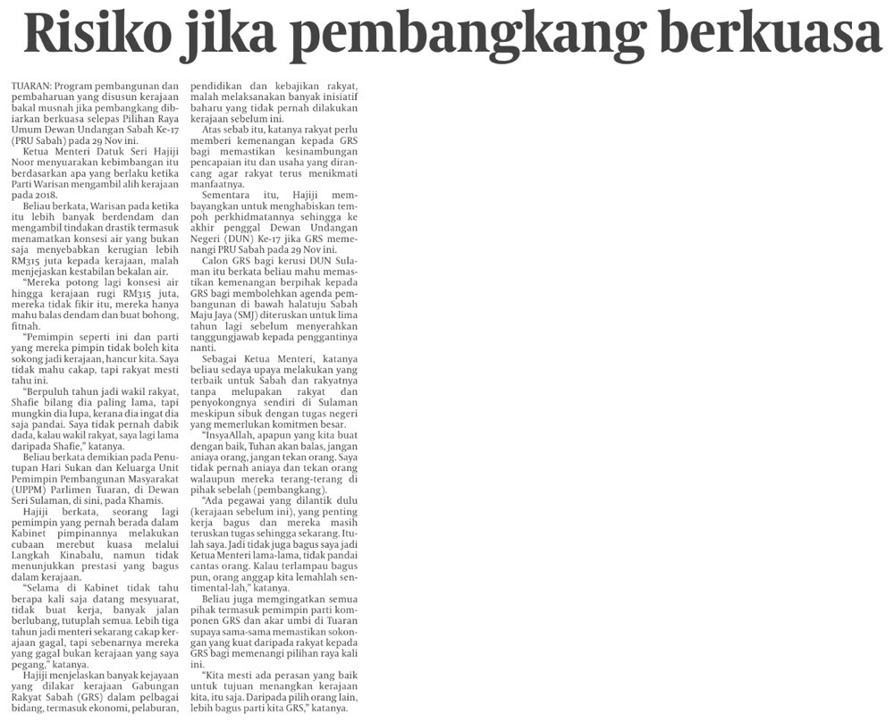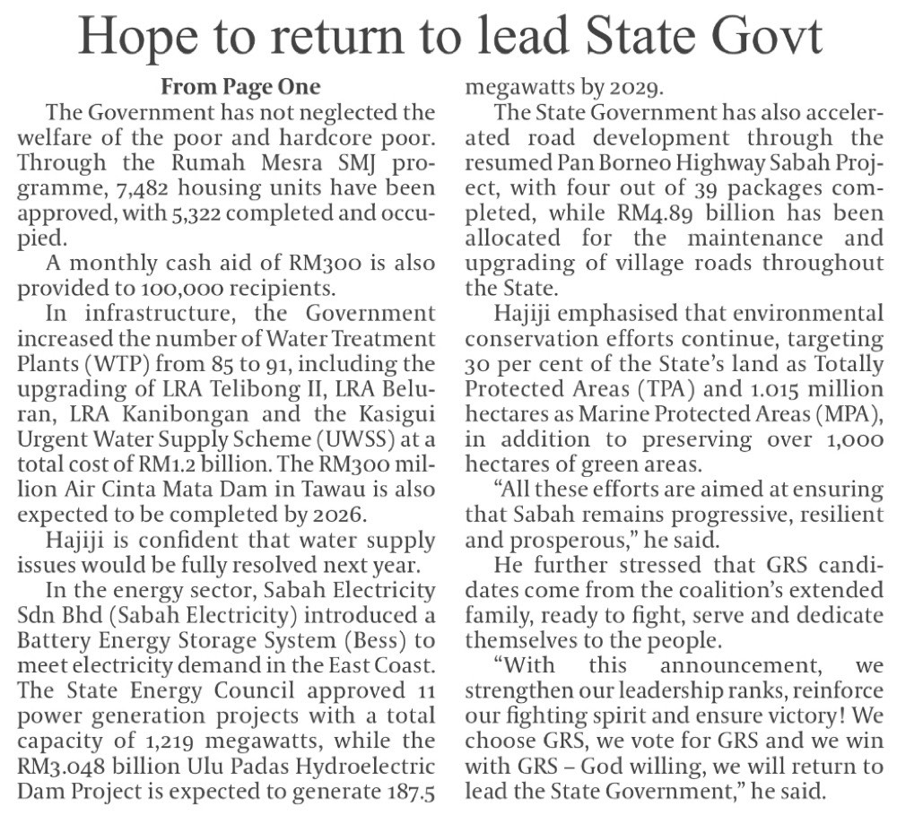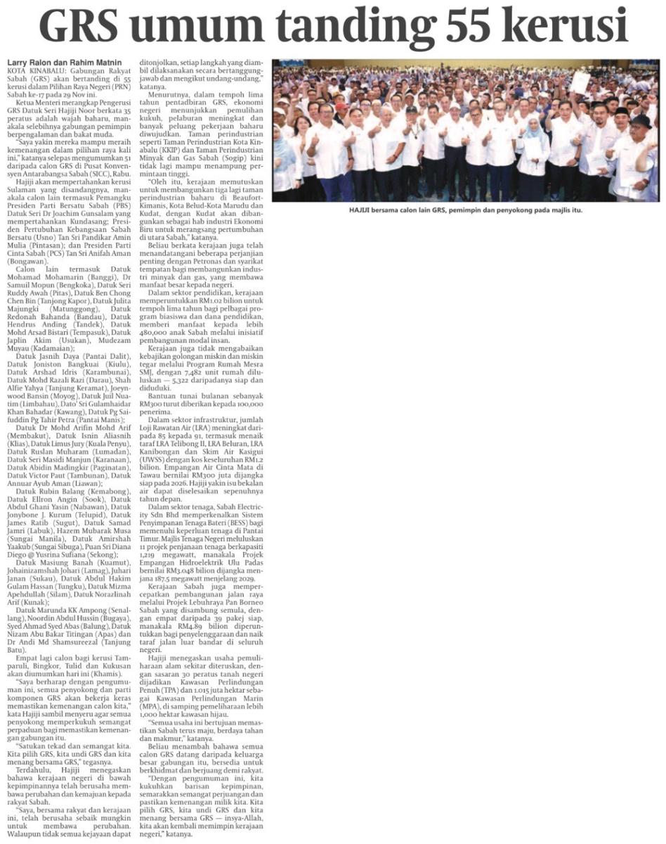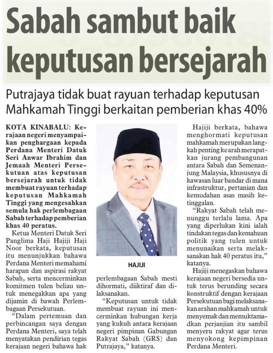 KM: Sabah catat KDNK tertinggi di bawah GRS