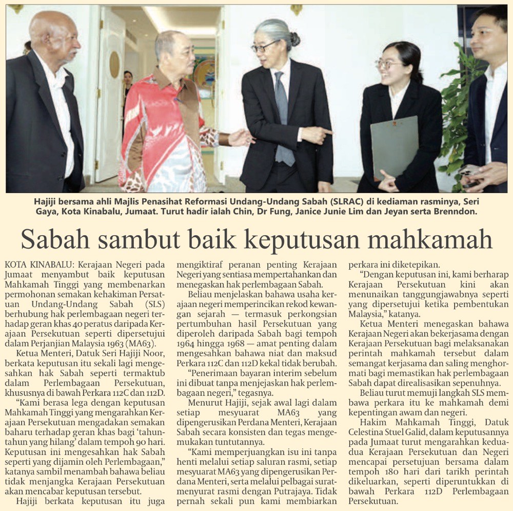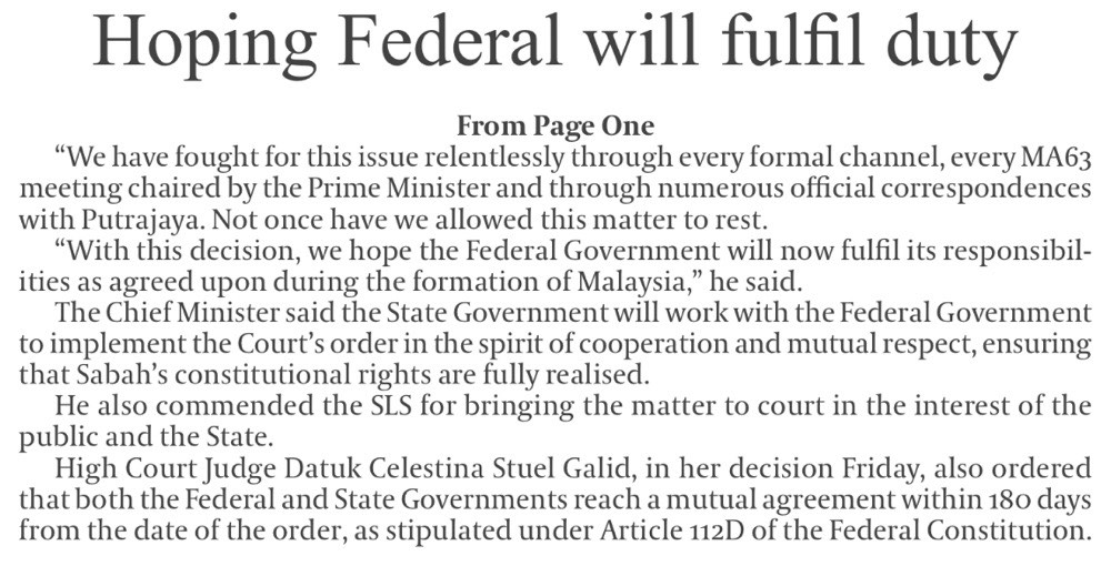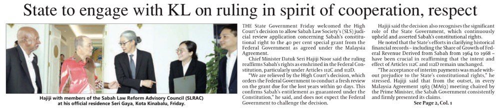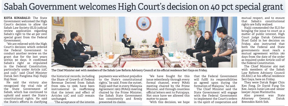 Sabah Government welcomes High Court's decision on 40 pct special grant